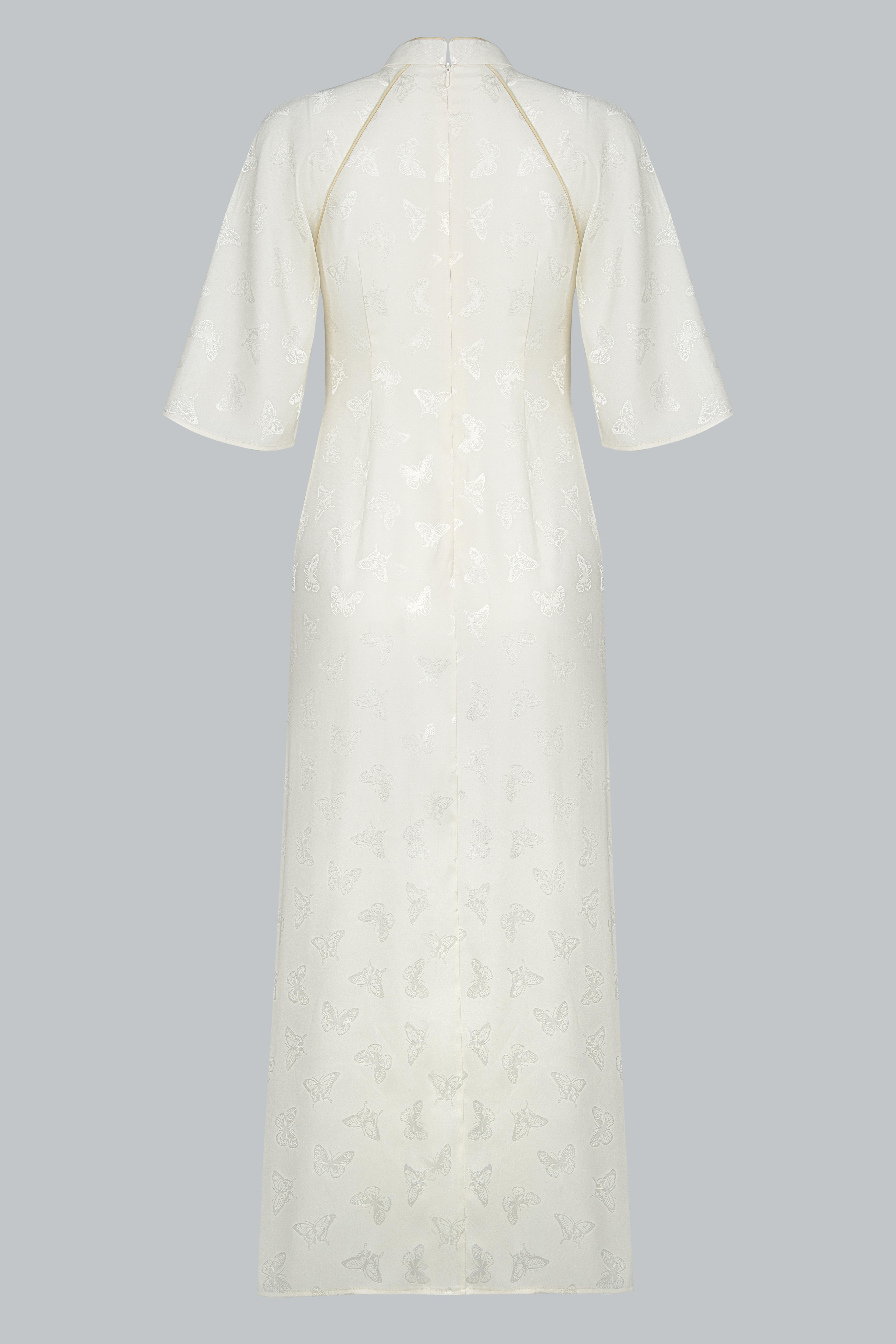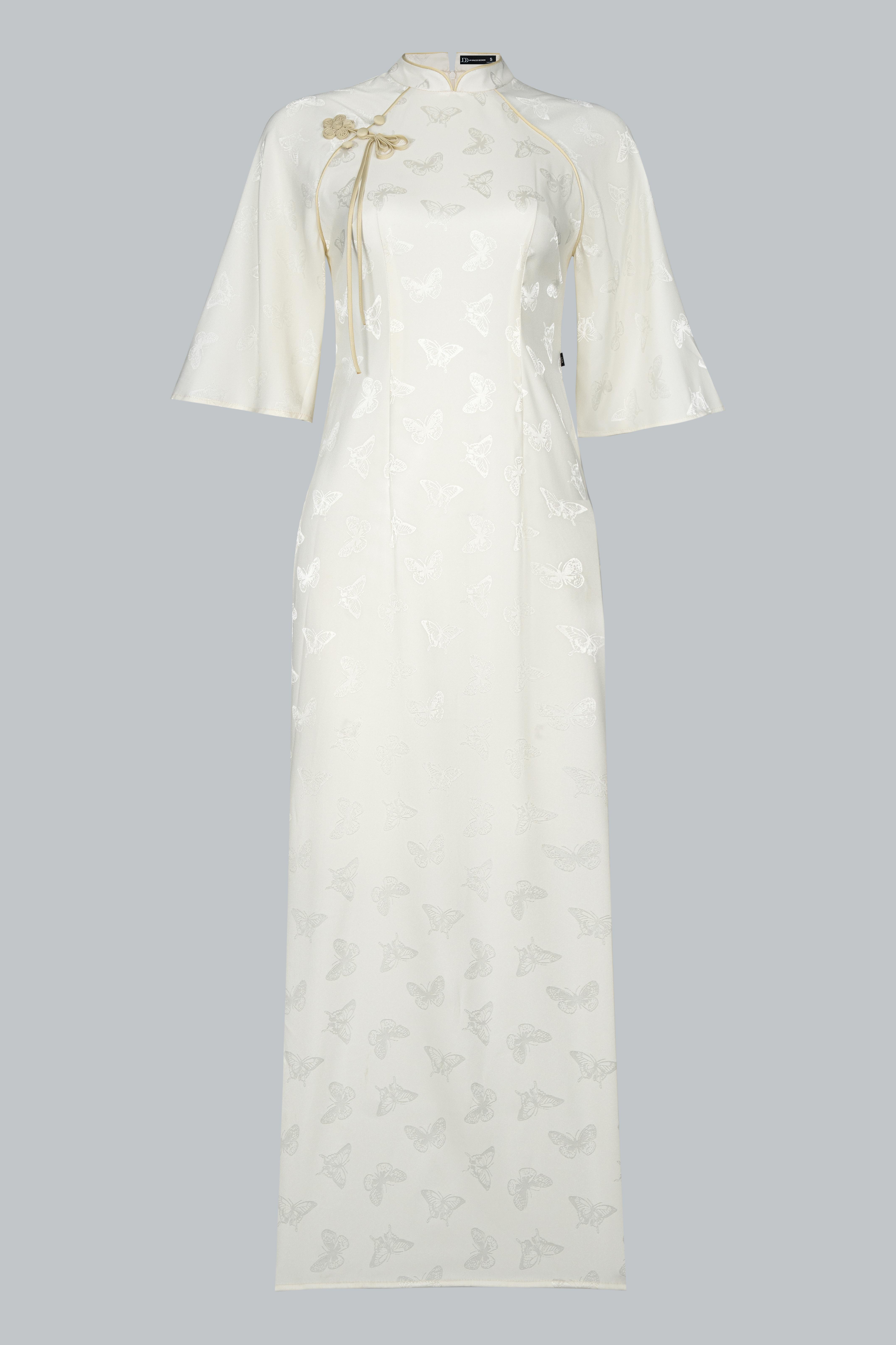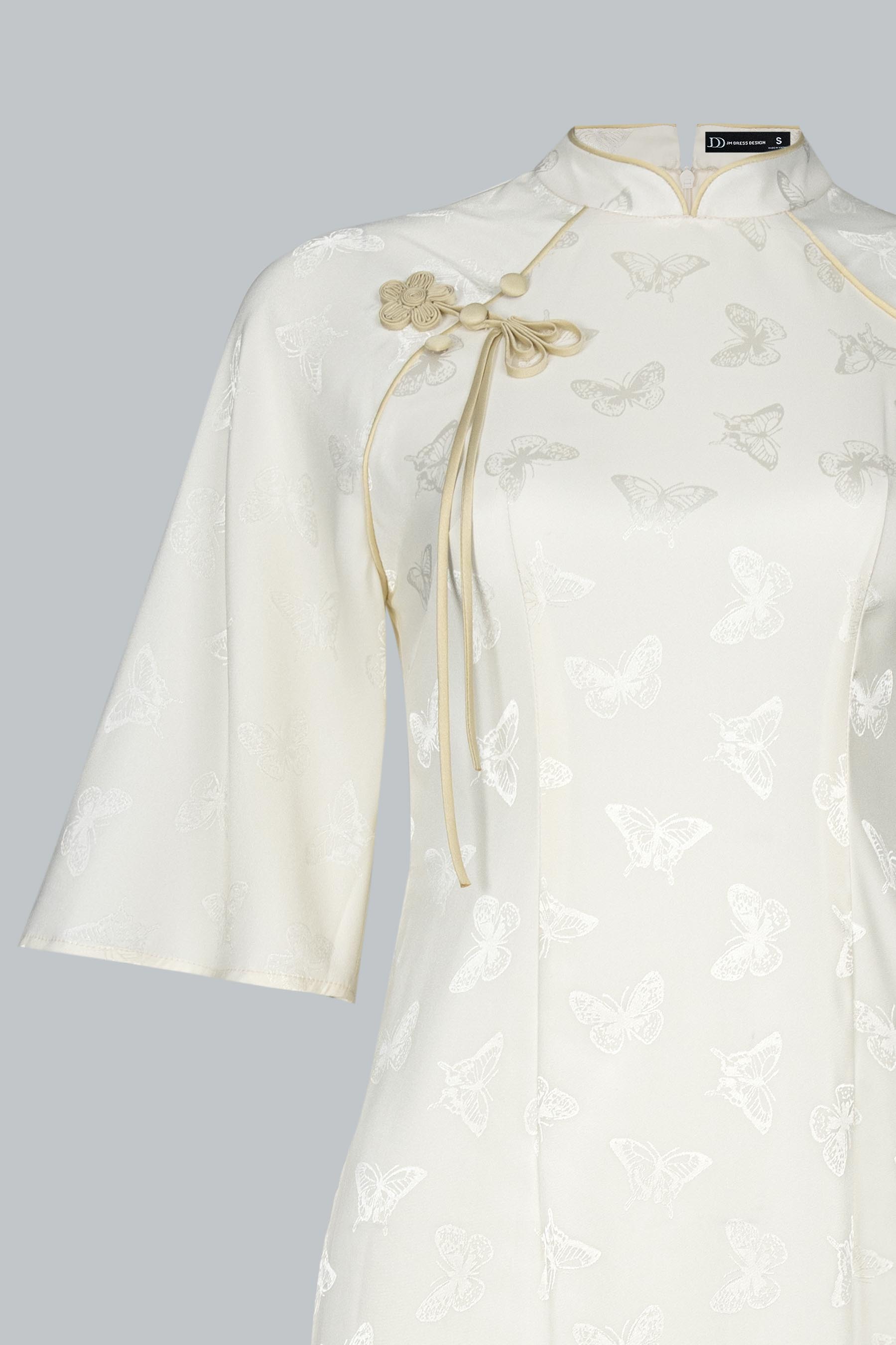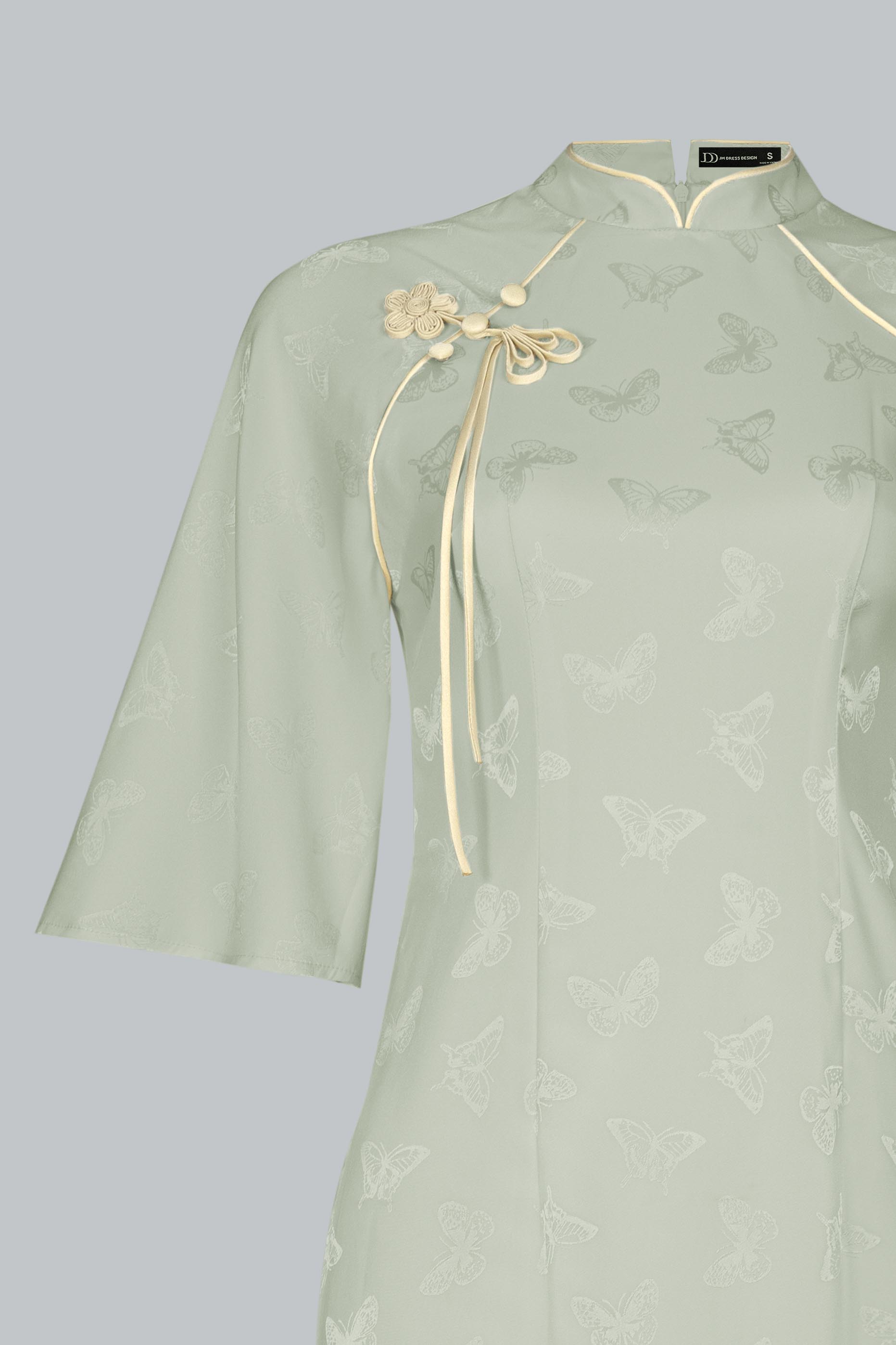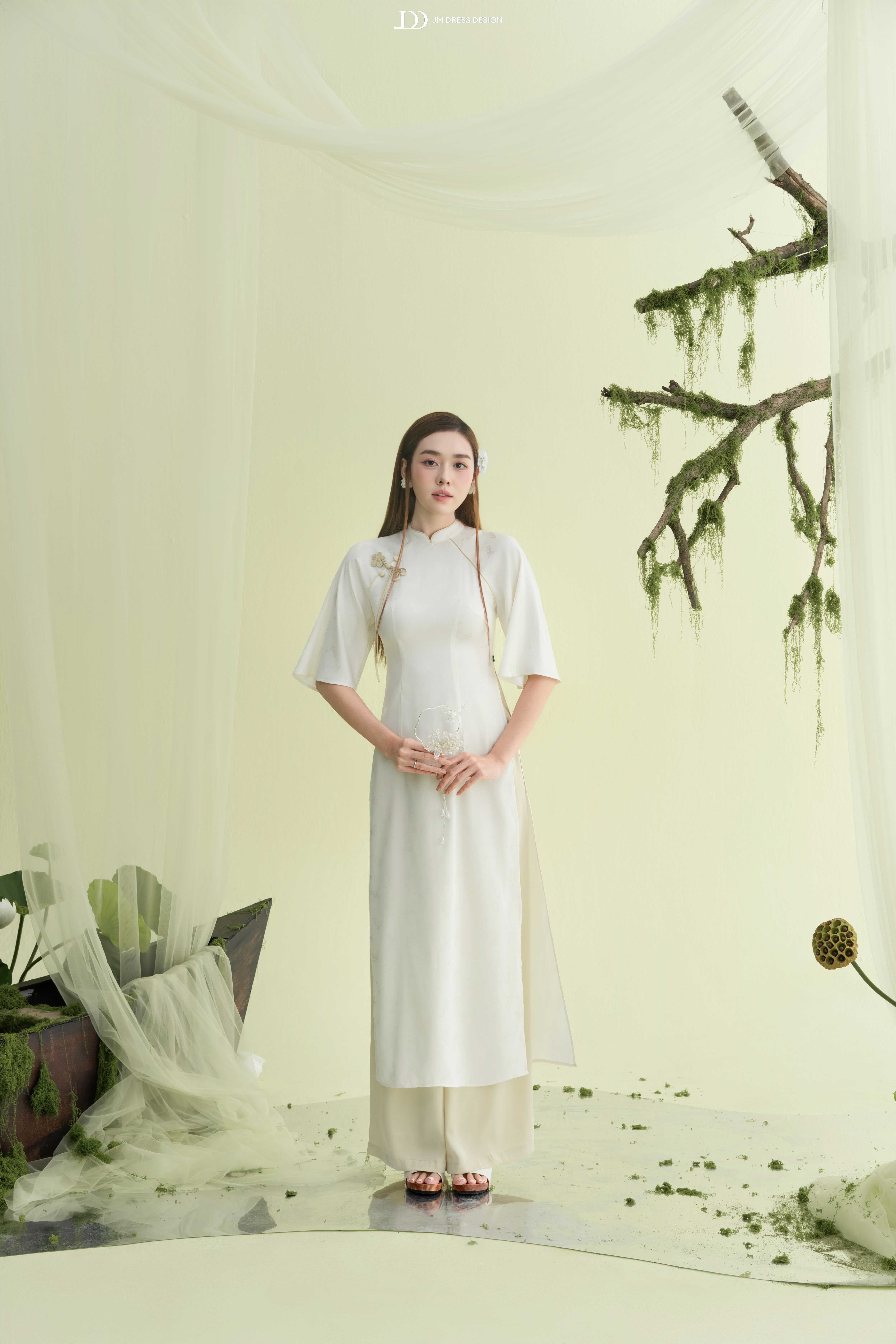 Từng đường cắt, nếp may đều được xử lý tinh xảo, nhằm tôn lên vẻ yên ả, chỉn chu và chuẩn mực – như một bản giao hòa giữa sự giản đơn và tinh tế.