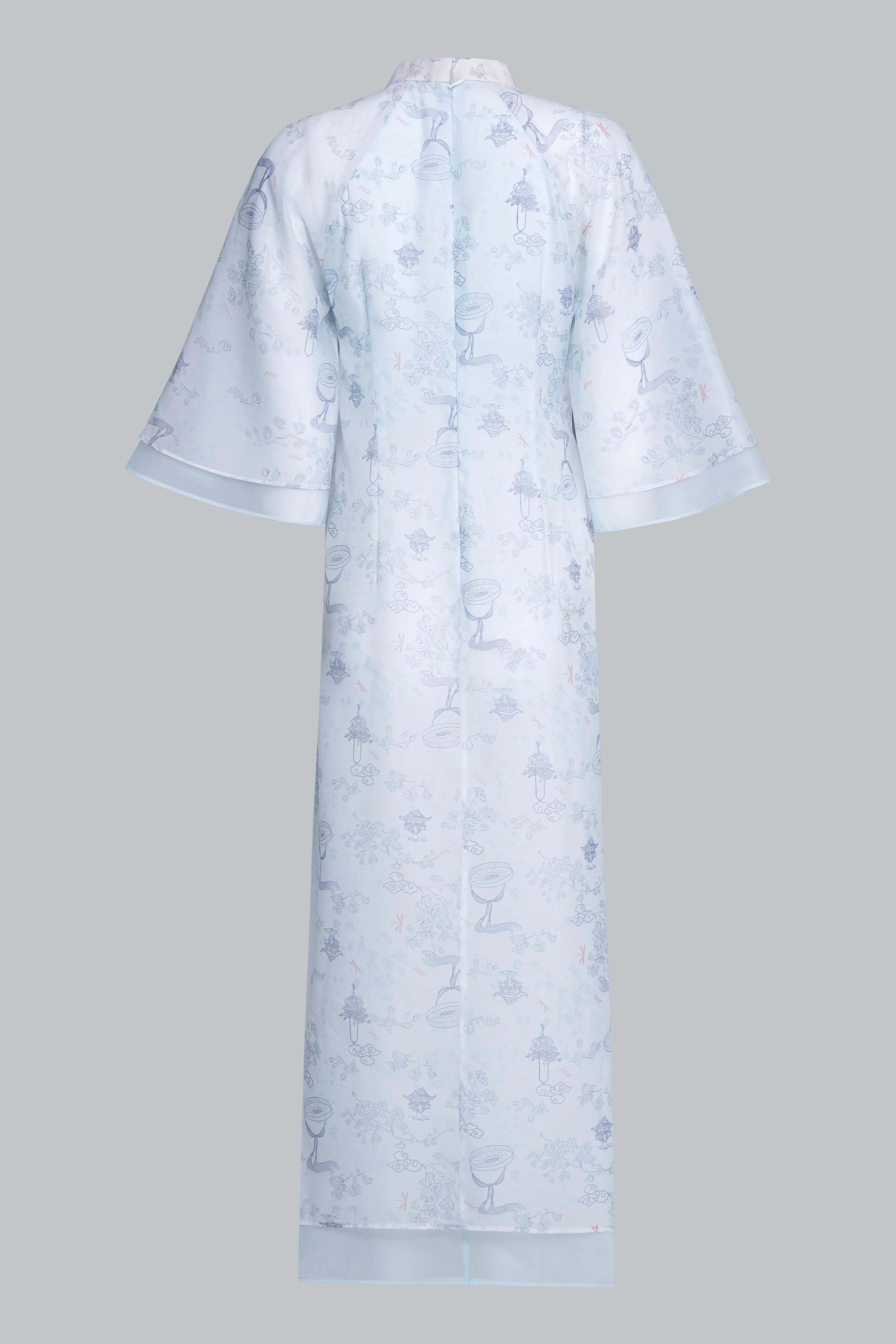 “Thanh Vũ” giữ trọn tinh thần truyền thống trong phom suông nhẹ, tà dài gần chạm mắt cá, giúp tôn dáng tự nhiên và mang đến cảm giác thướt tha khi di chuyển.