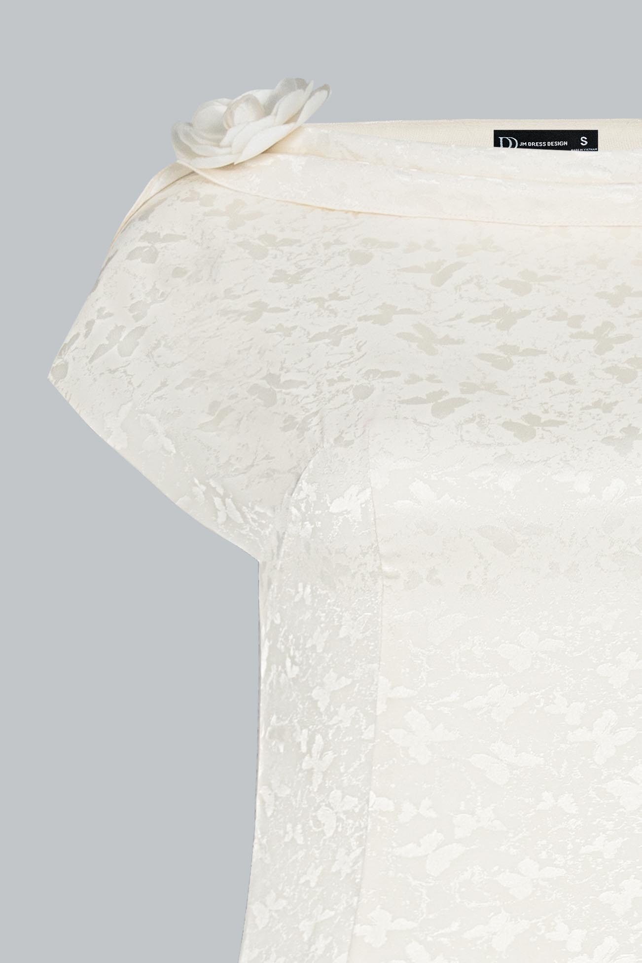 Chi tiết hoa đính nhỏ nơi cổ áo mang lại điểm sáng tinh tế, giữ cho tổng thể luôn nhẹ nhàng, thanh sạch mà vẫn có điểm nhấn riêng biệt.