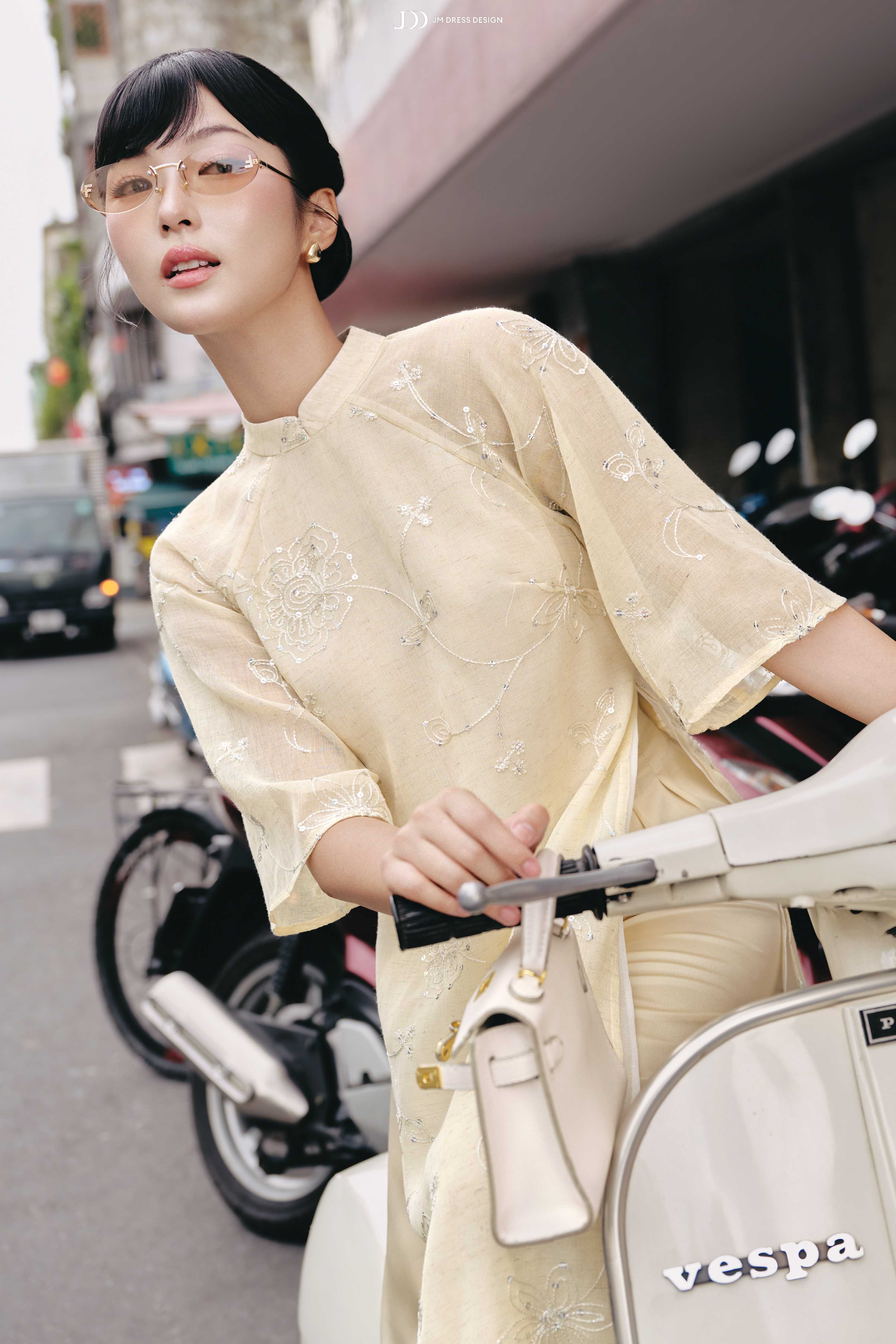 “Thanh Mai” phù hợp cho những buổi lễ đầu xuân, chụp ảnh kỷ niệm hoặc dạo phố trong nắng nhẹ, khi nàng muốn lưu lại nét trong veo, tươi trẻ nhất của chính mình.