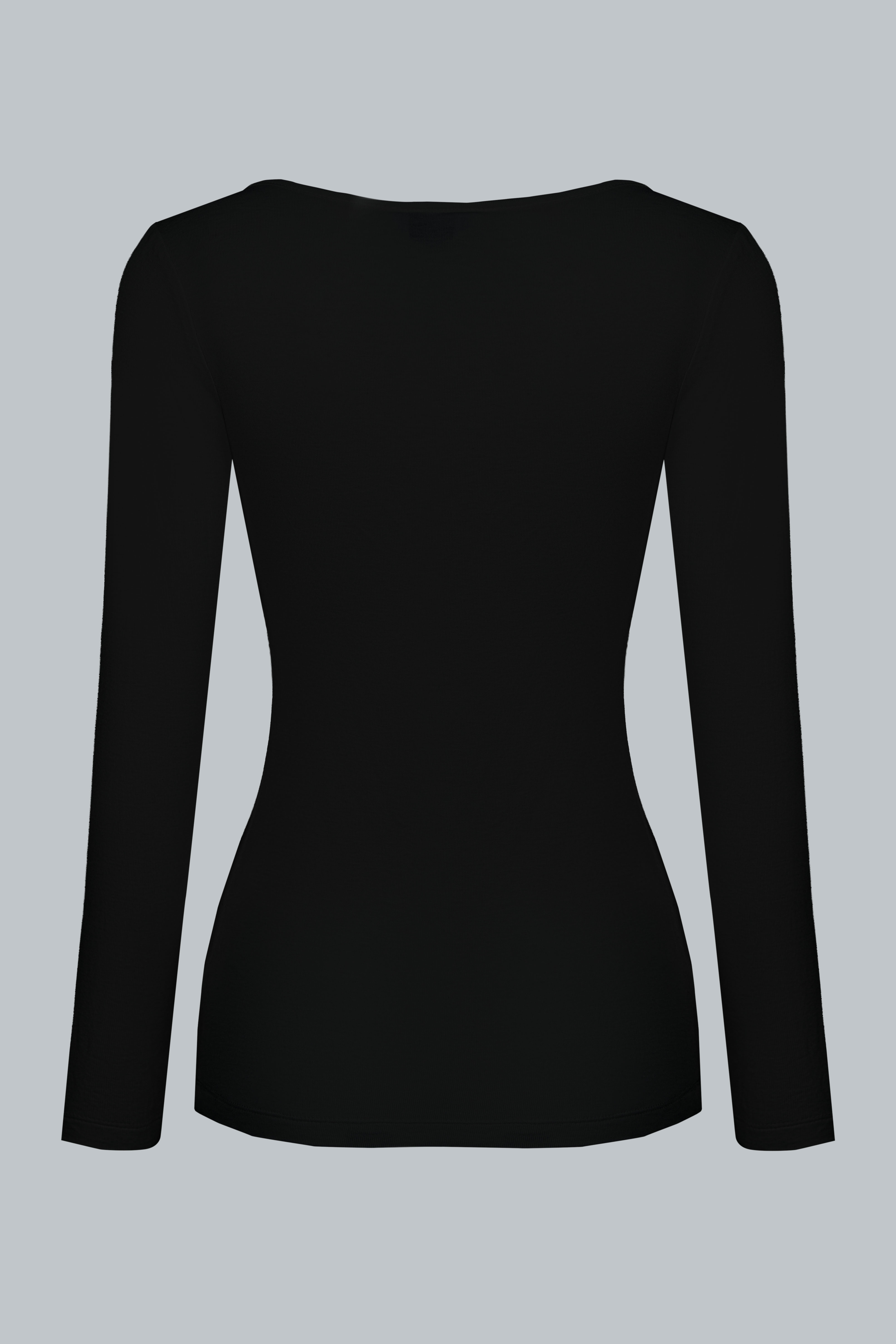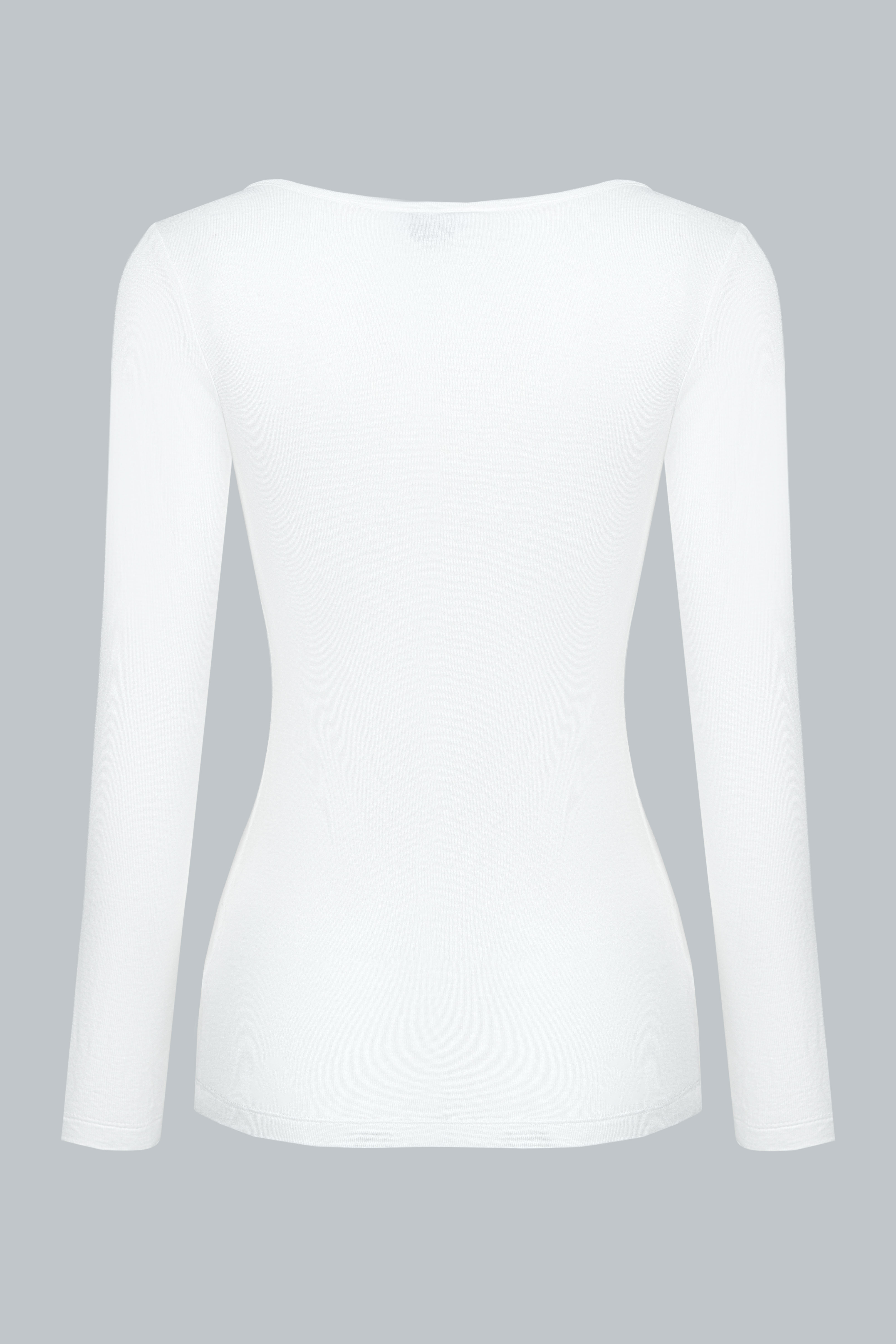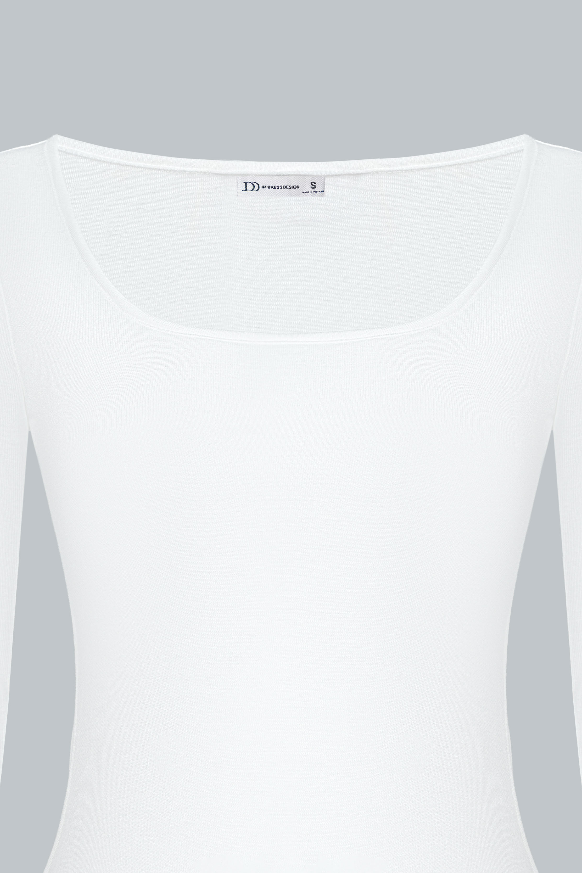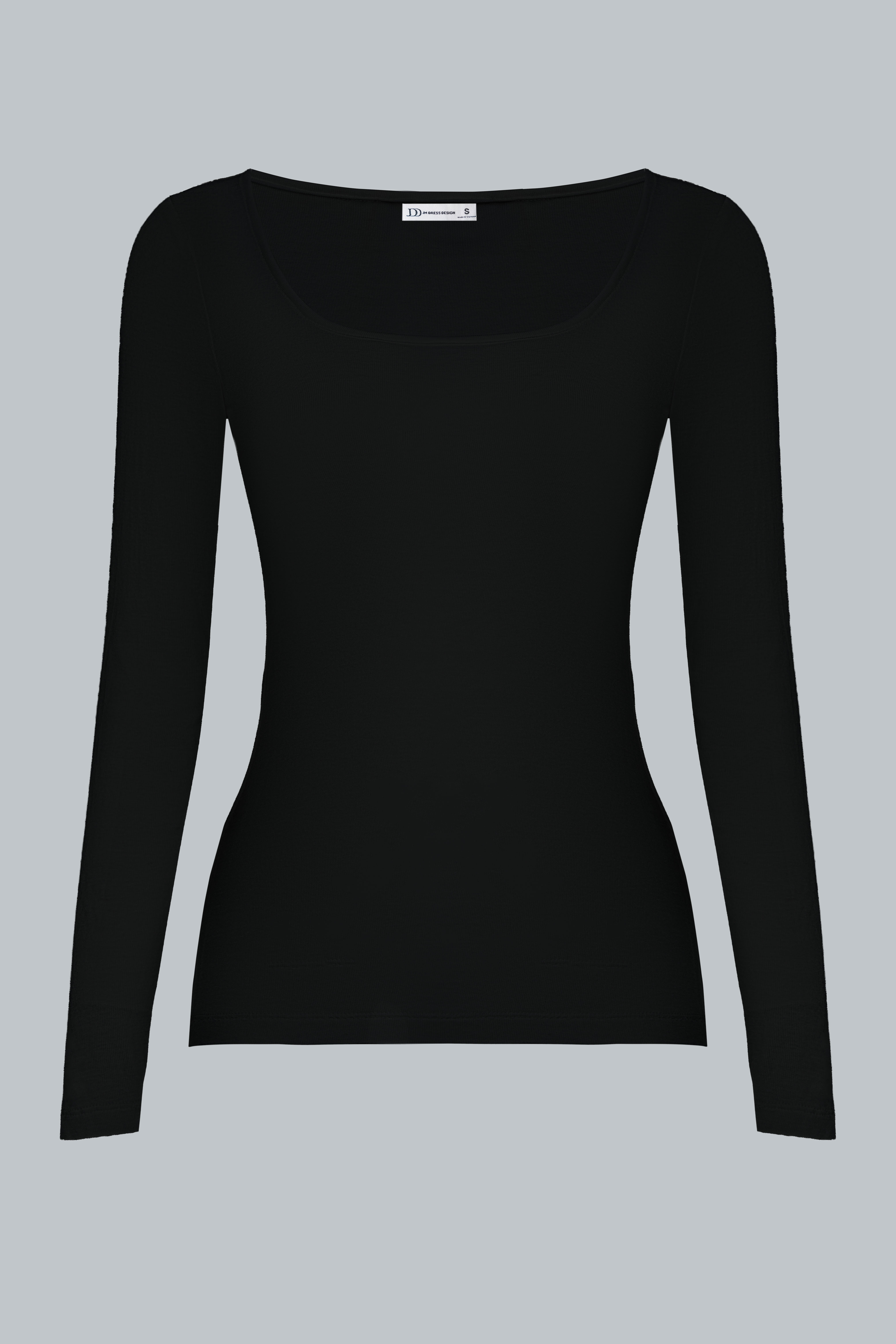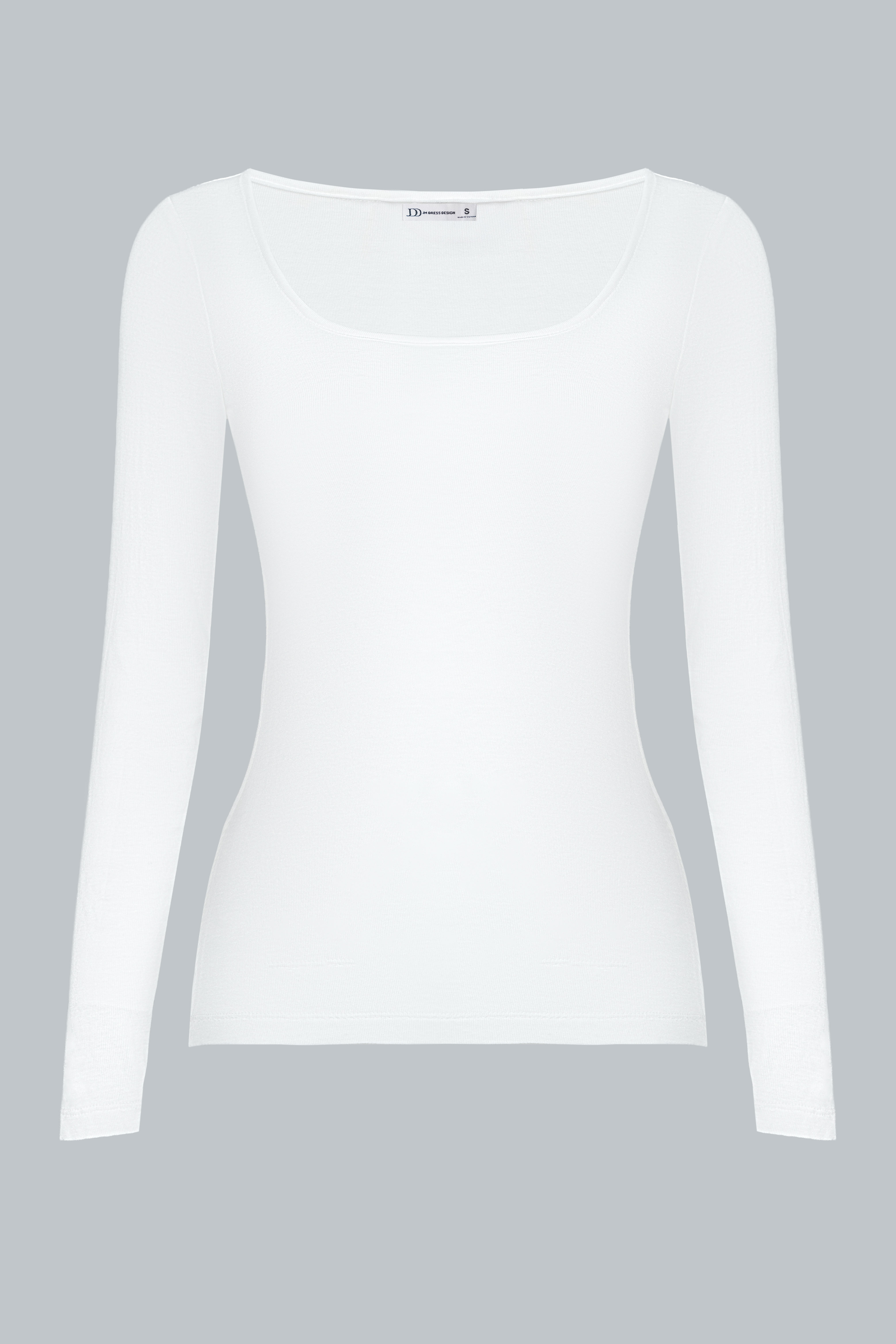 Chiếc áo được cắt may theo phom ôm vừa, cổ tròn, tay dài, giúp tôn dáng và tạo cảm giác thanh thoát.