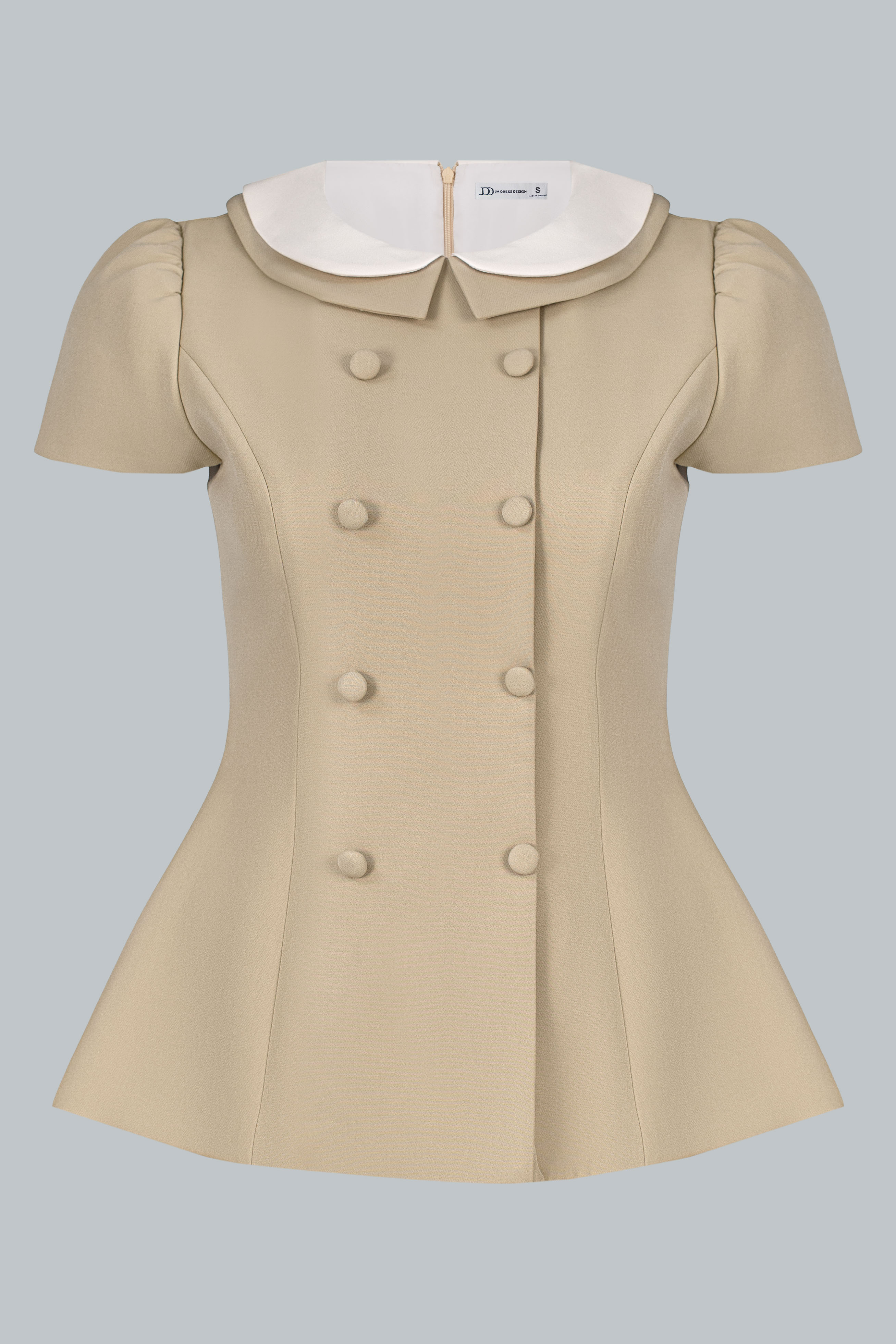 Tay ngắn phồng nhẹ kết thúc gọn gàng, tạo cảm giác trẻ trung, phù hợp cả khi phối theo phong cách công sở lẫn tiểu thư hiện đại.