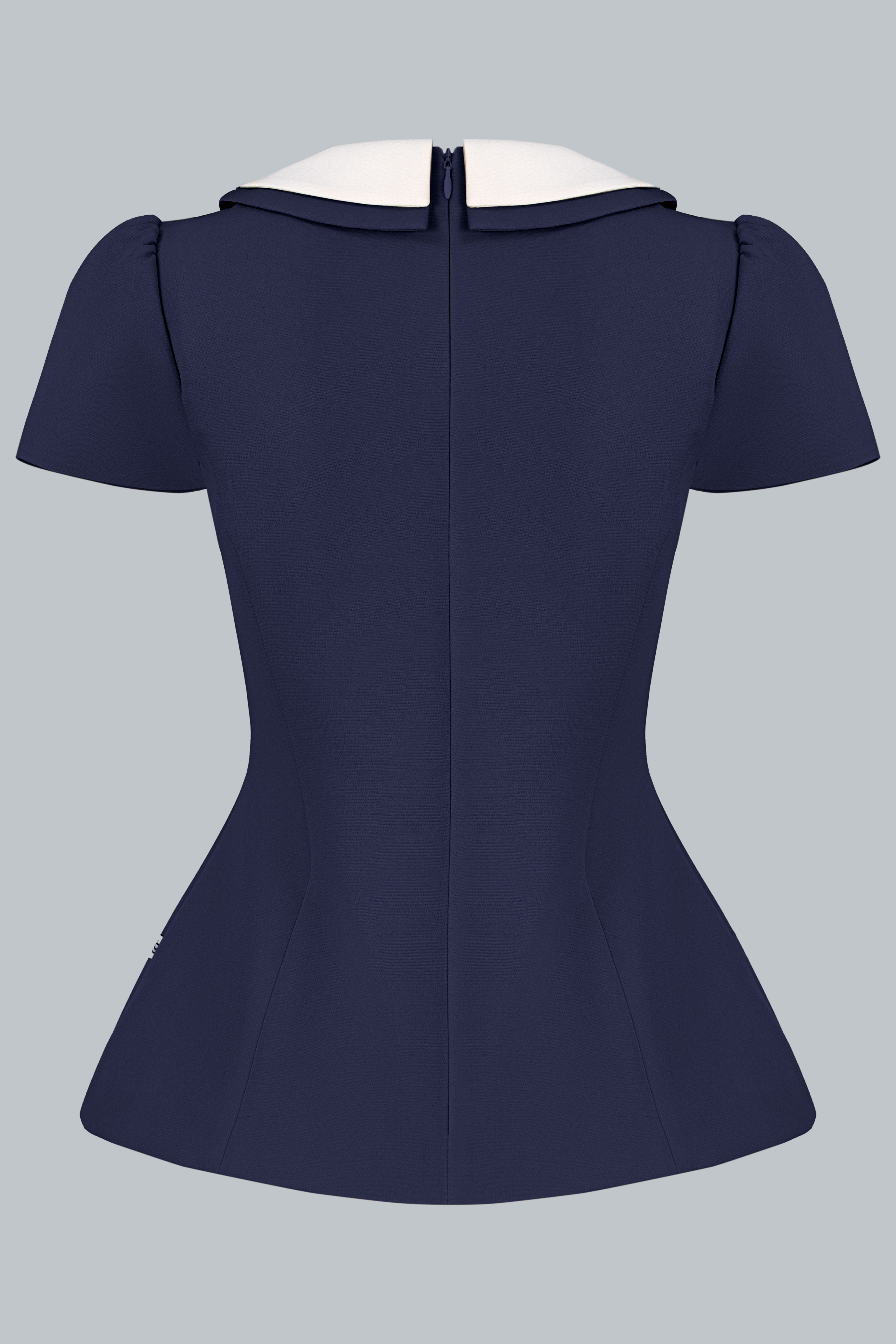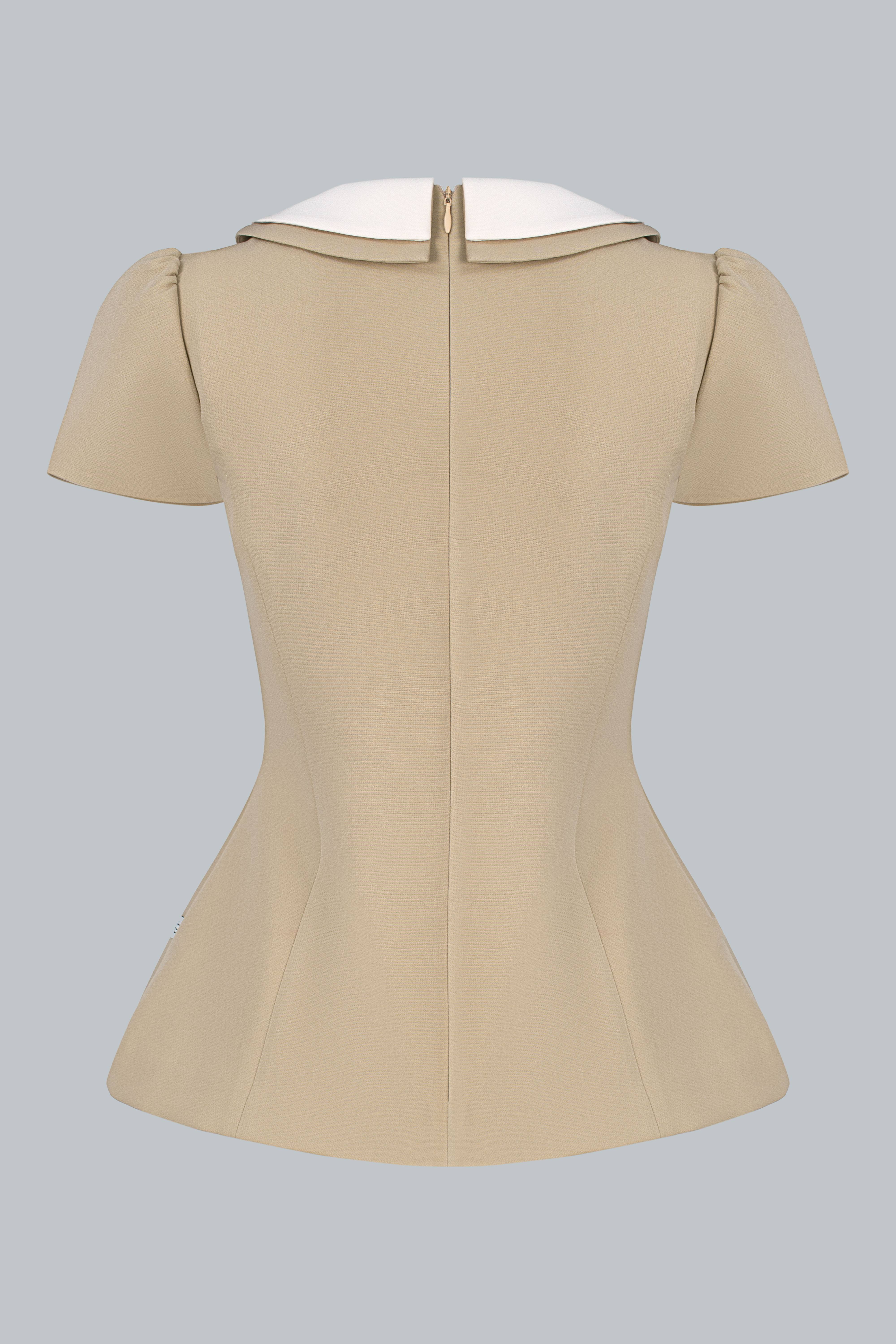 Chiếc áo mang theo cảm giác nữ tính vừa phải – từ cổ bo tròn gọn gàng đến dáng peplum nhẹ tạo đường cong kín đáo. Mọi chi tiết đều được tiết chế vừa đủ, để tổng thể trở nên thanh lịch mà không cần quá nhiều điểm nhấn.