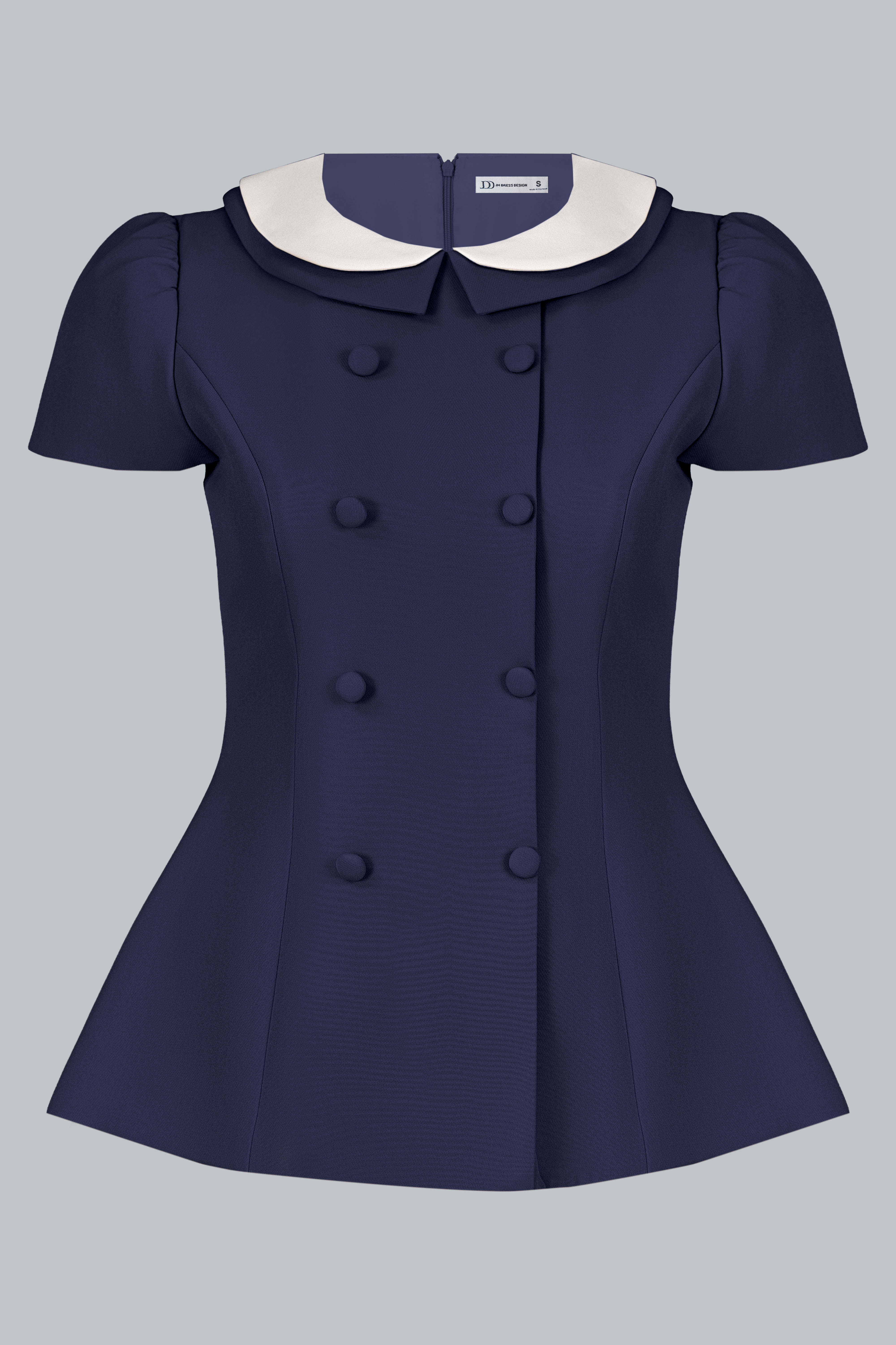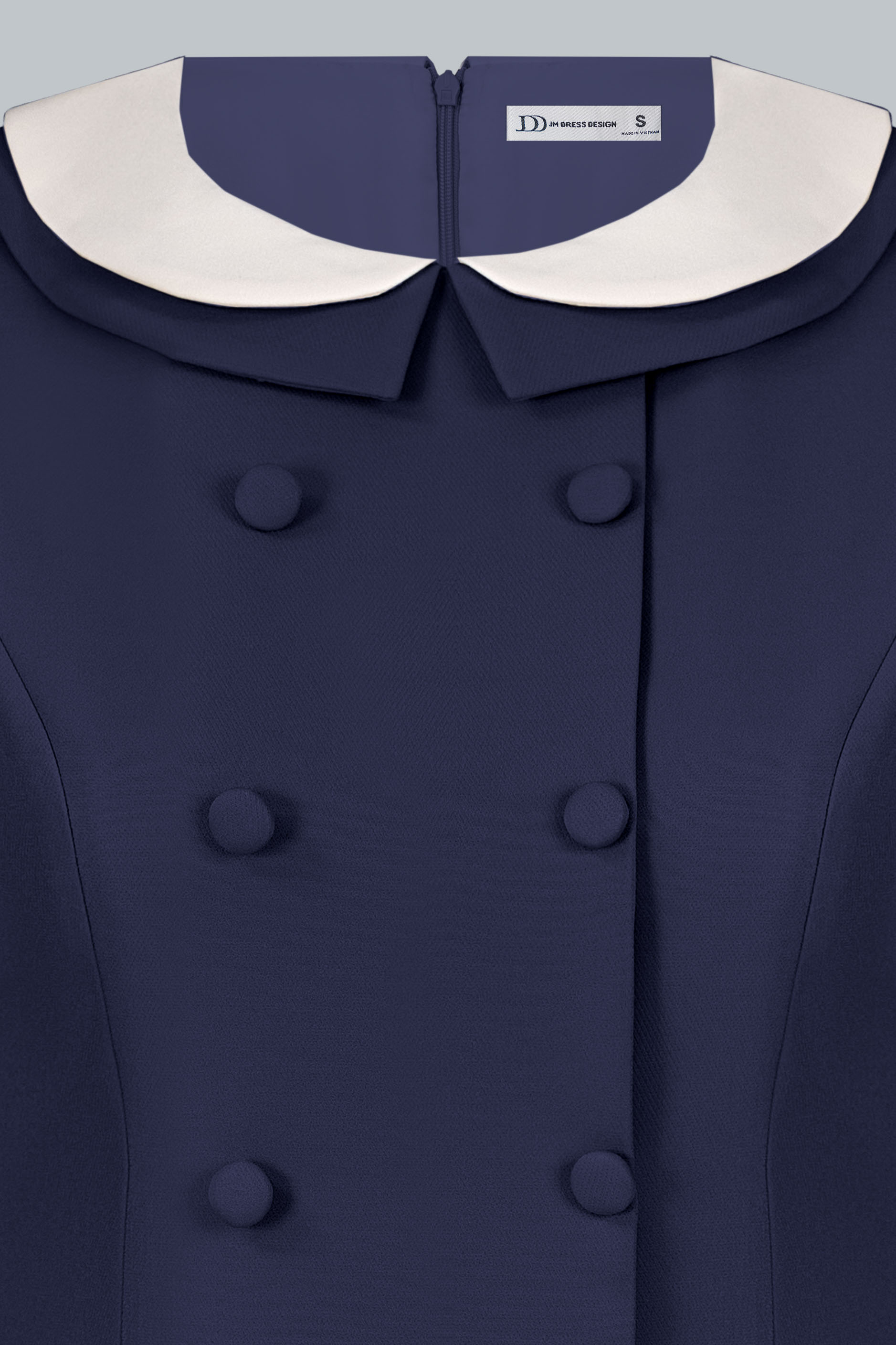 Cổ tròn bo trắng mang cảm giác sáng mặt và có chiều sâu nhẹ của phong cách cổ điển Pháp.