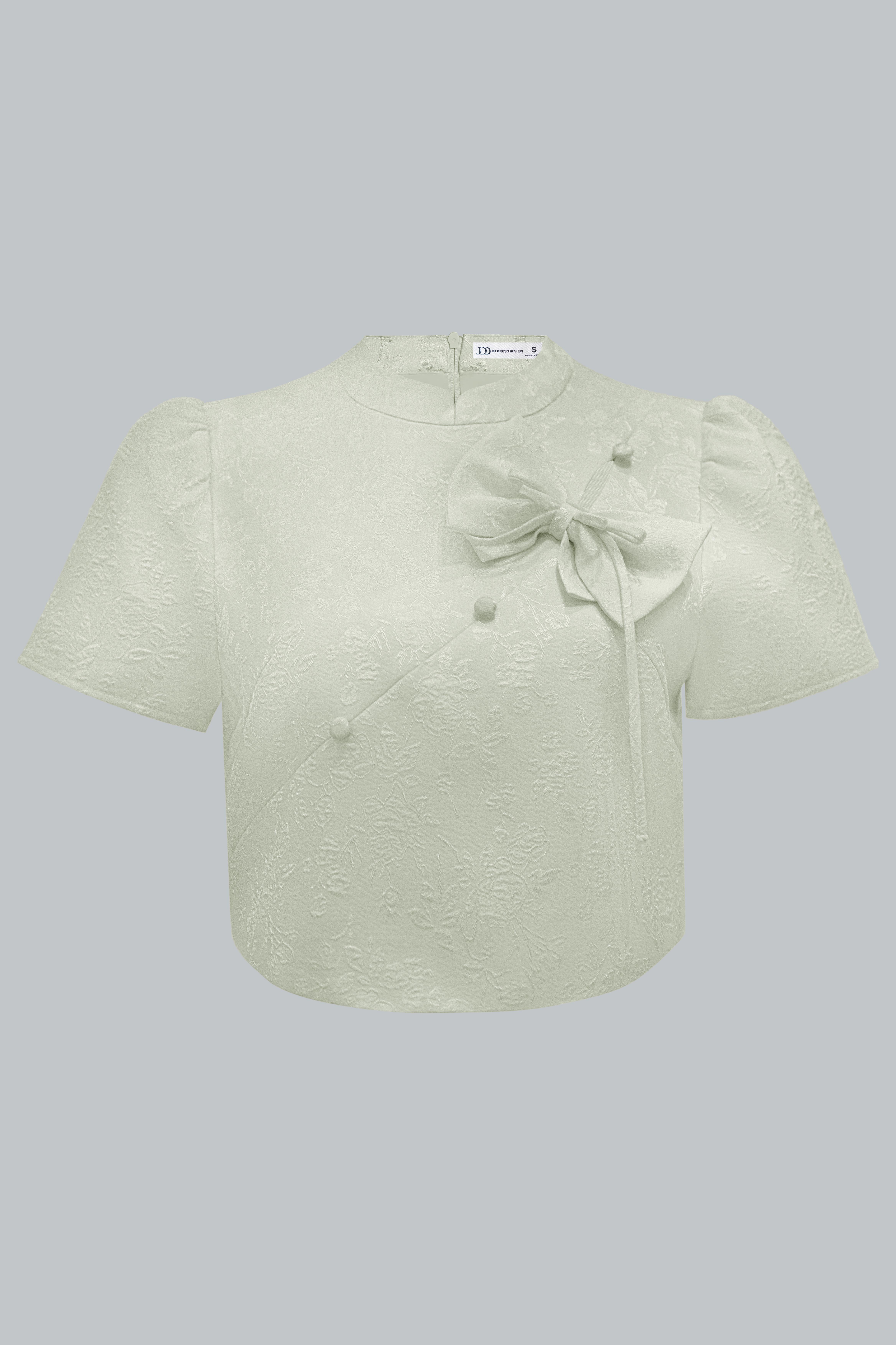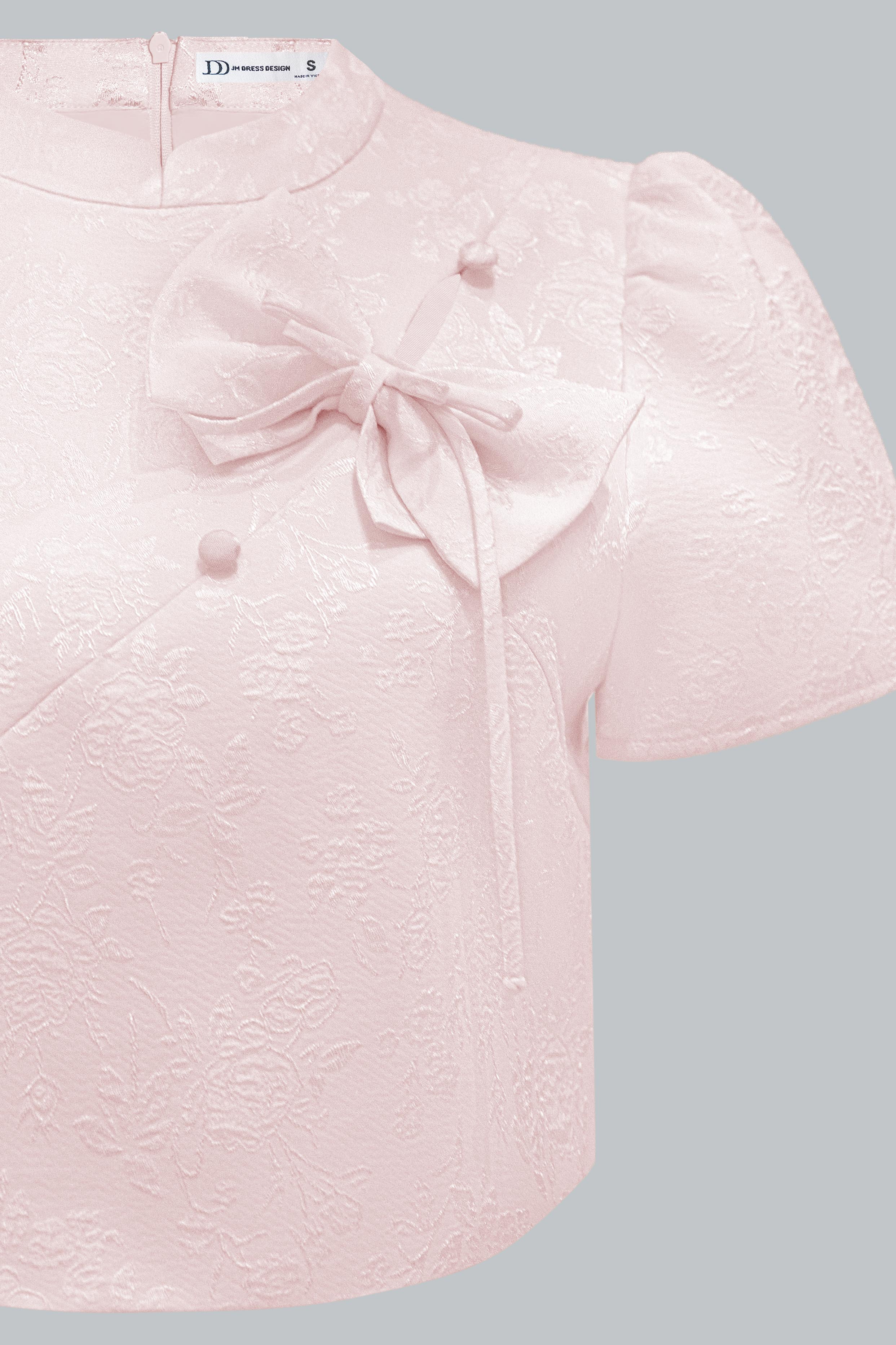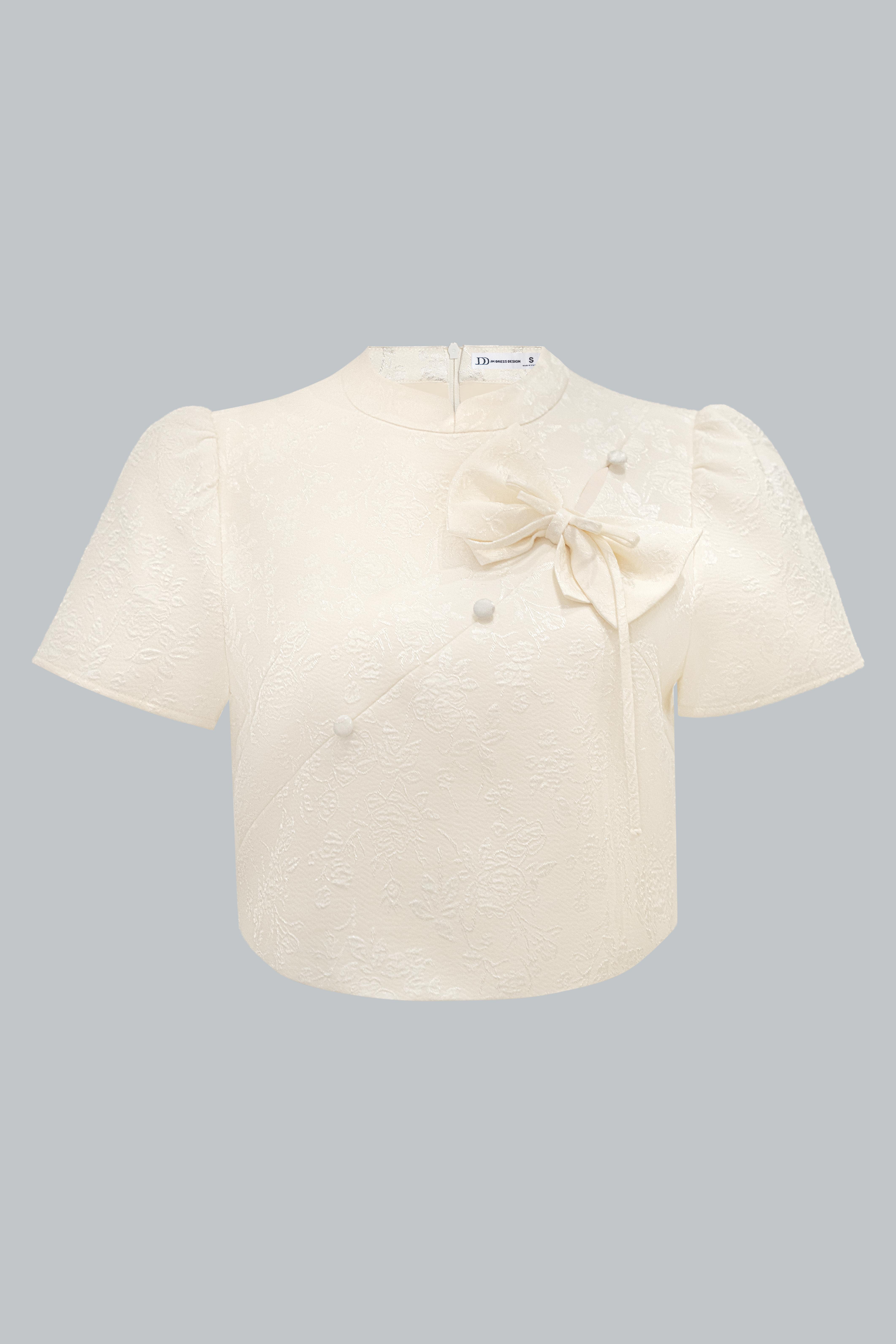 Áo kiểu cổ tàu dáng ngắn phối nơ