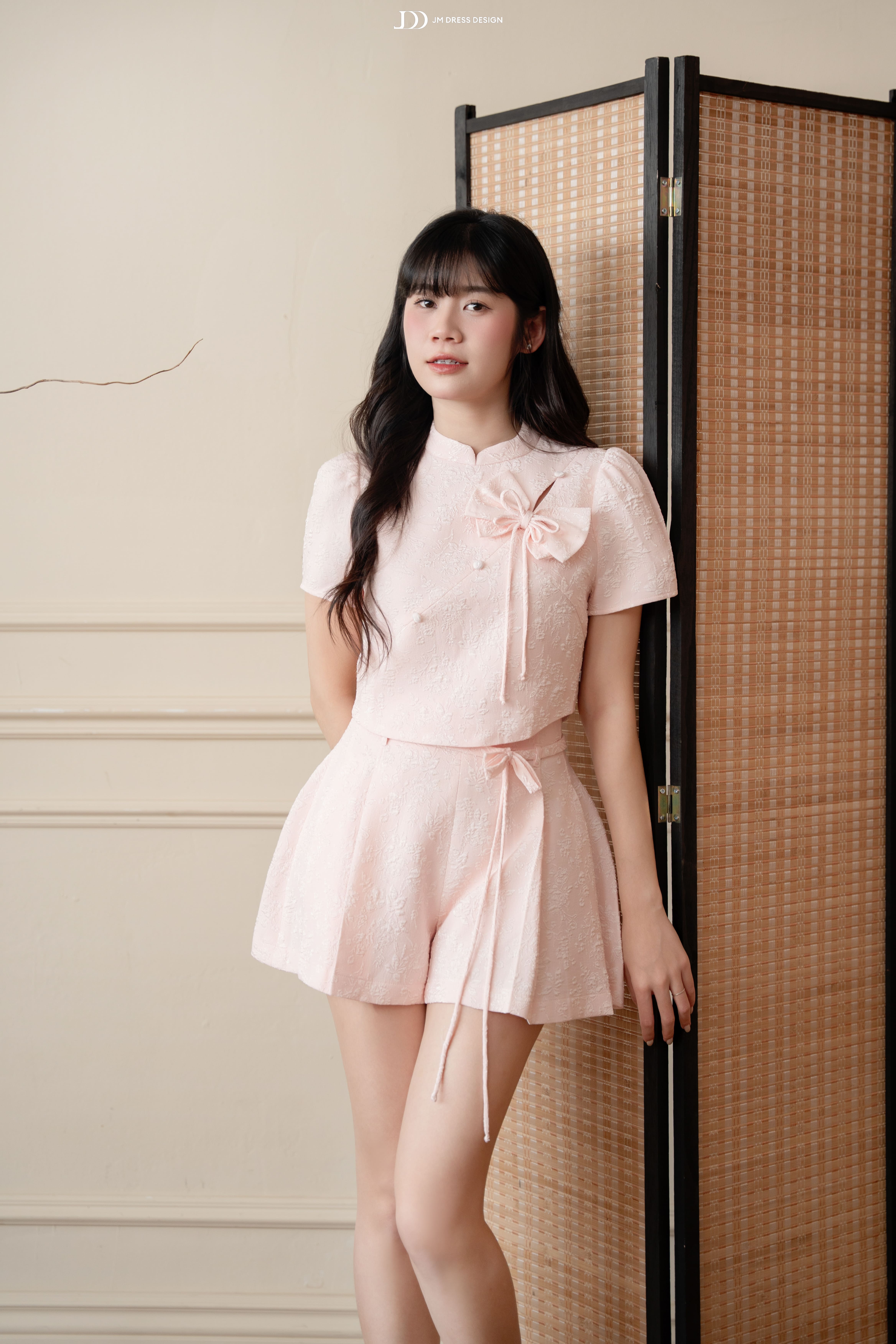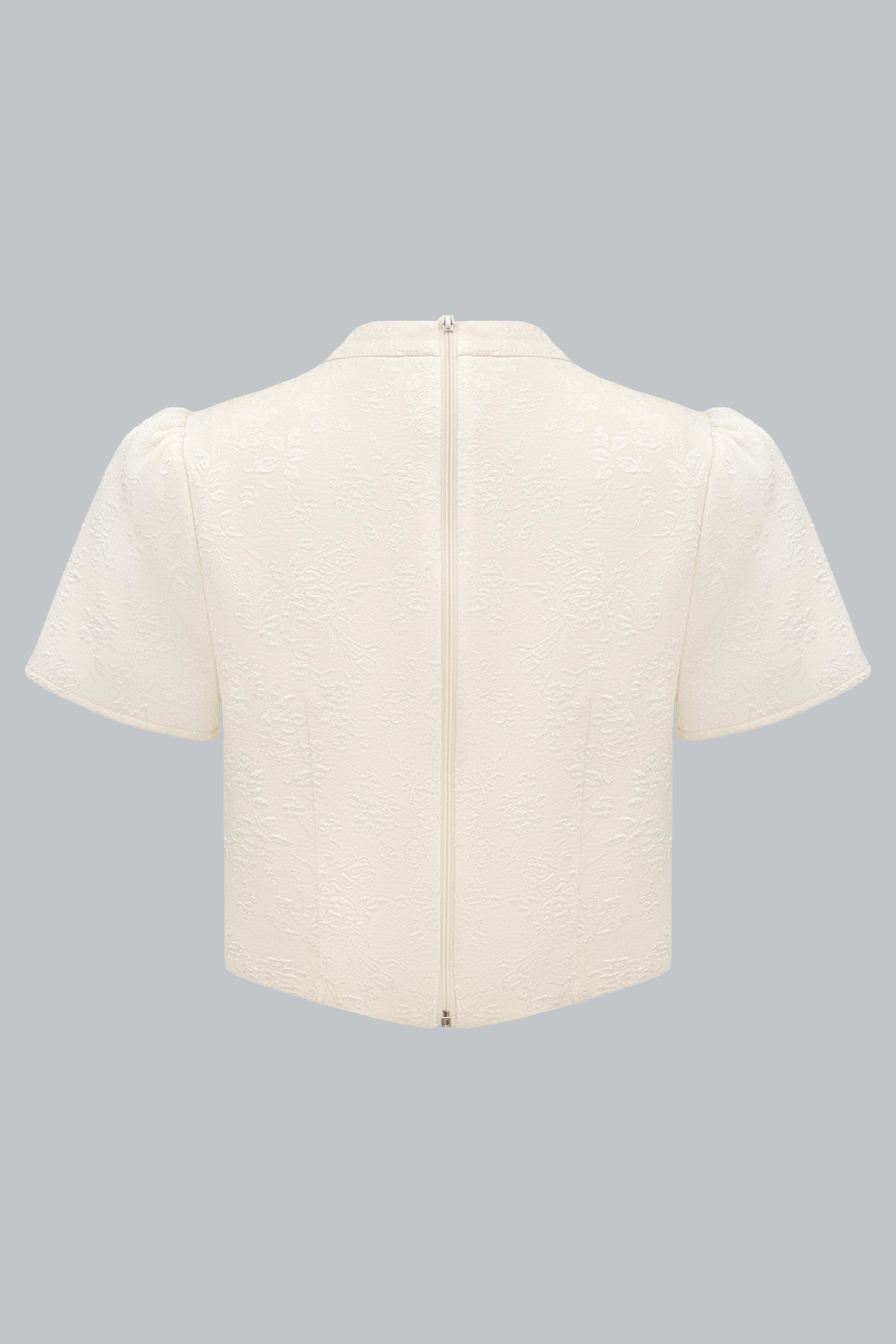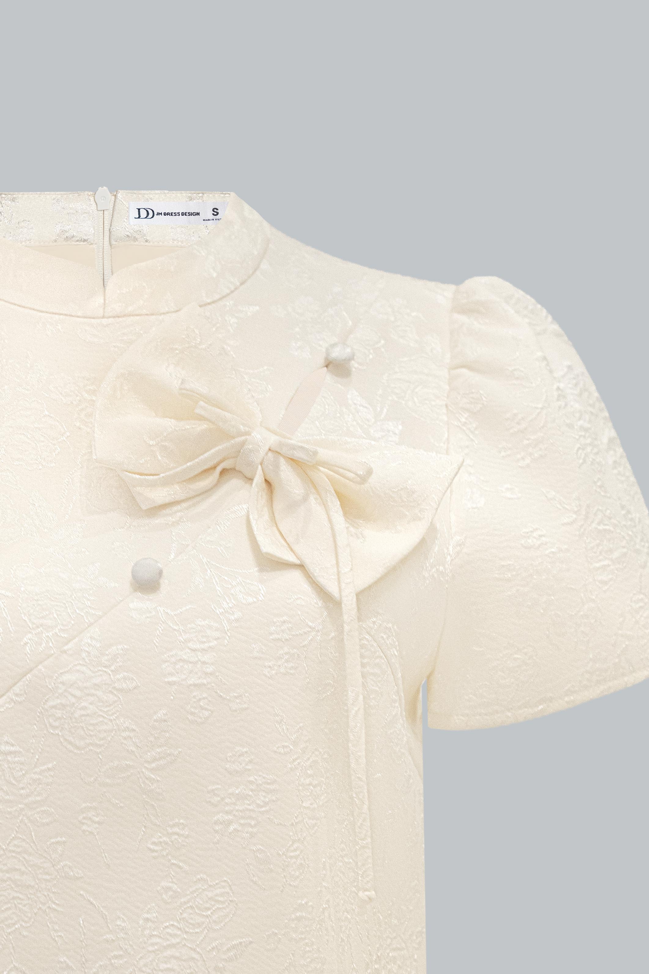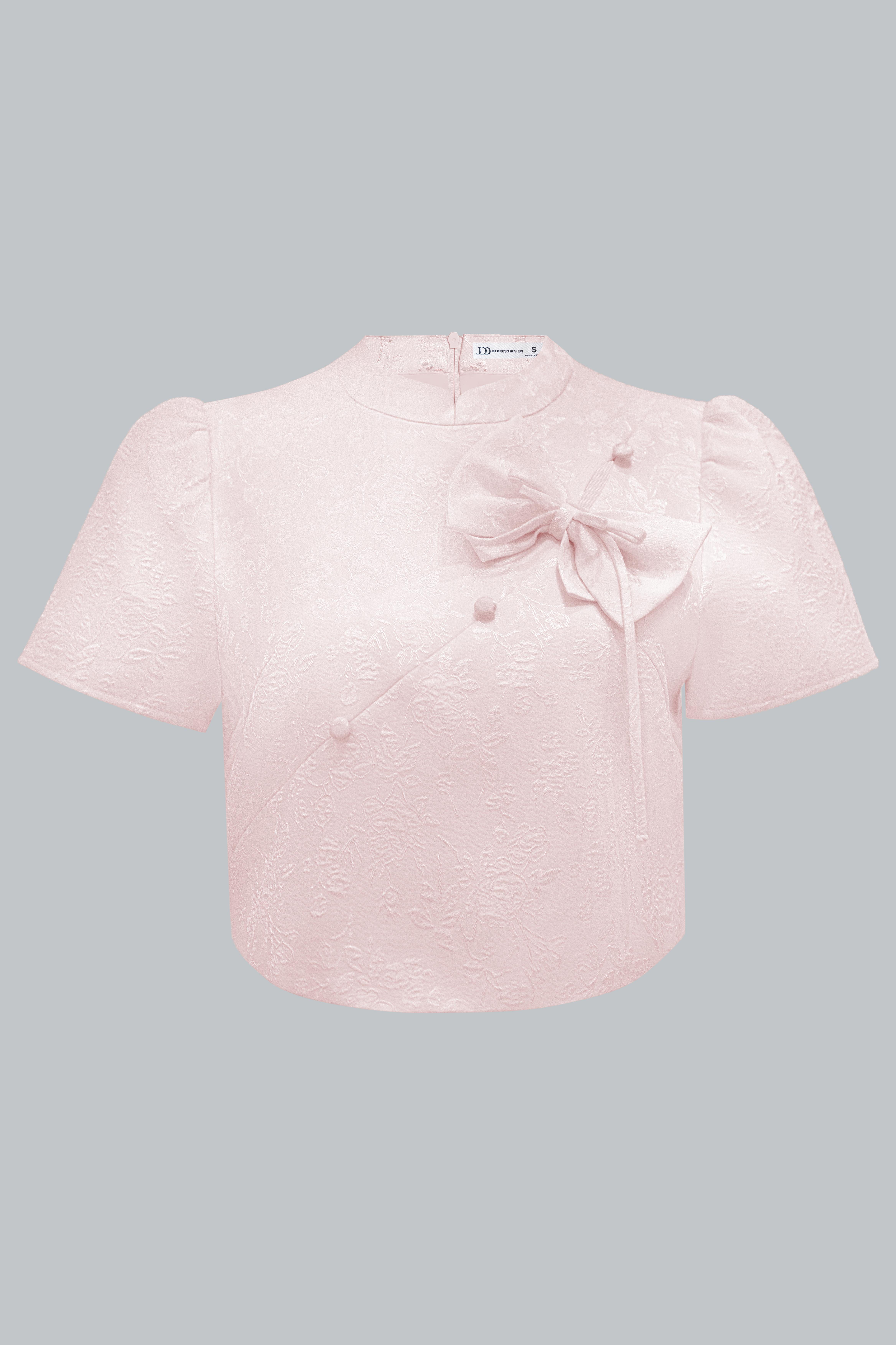 Áo kiểu cổ tàu dáng ngắn phối nơ