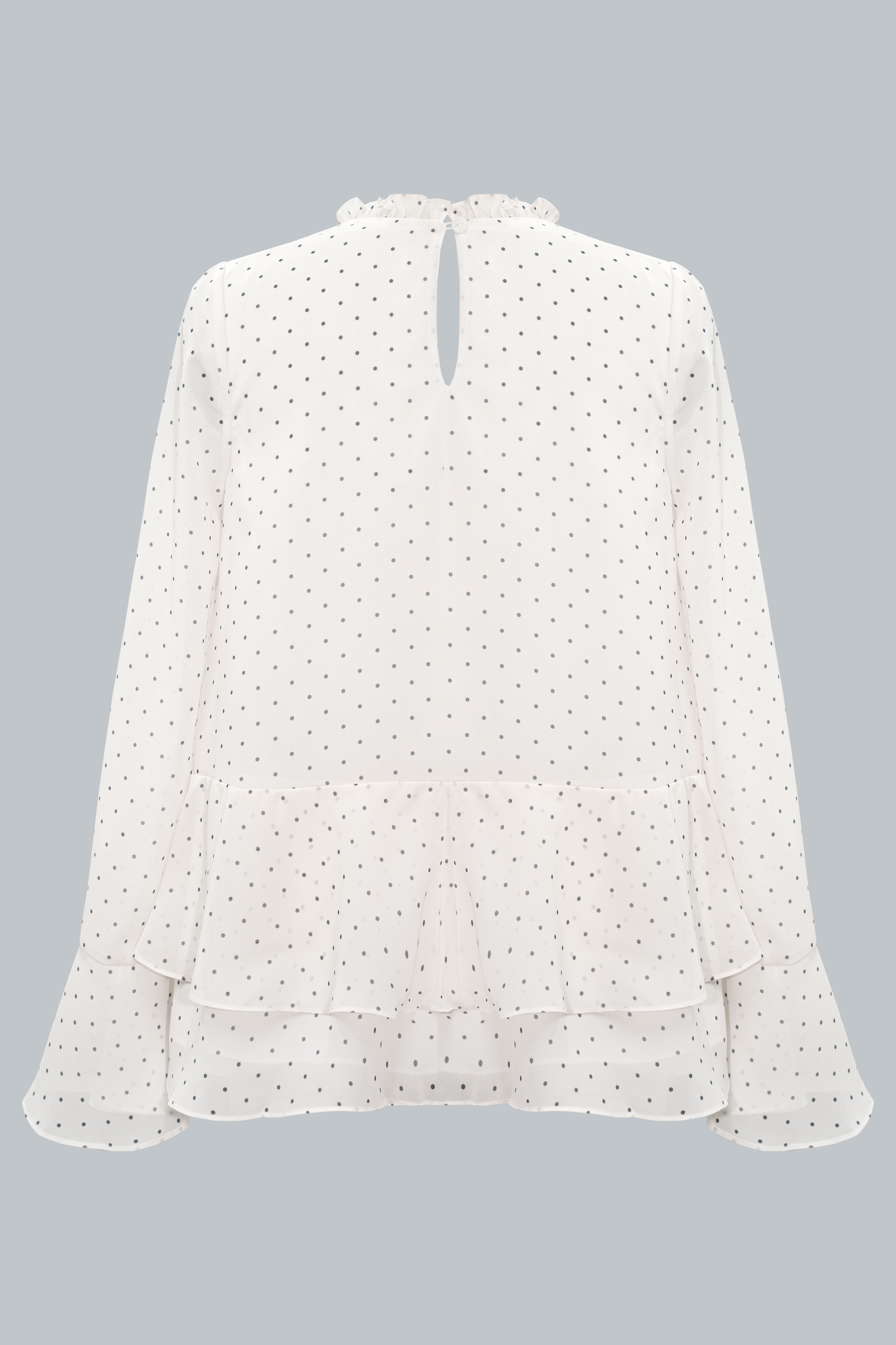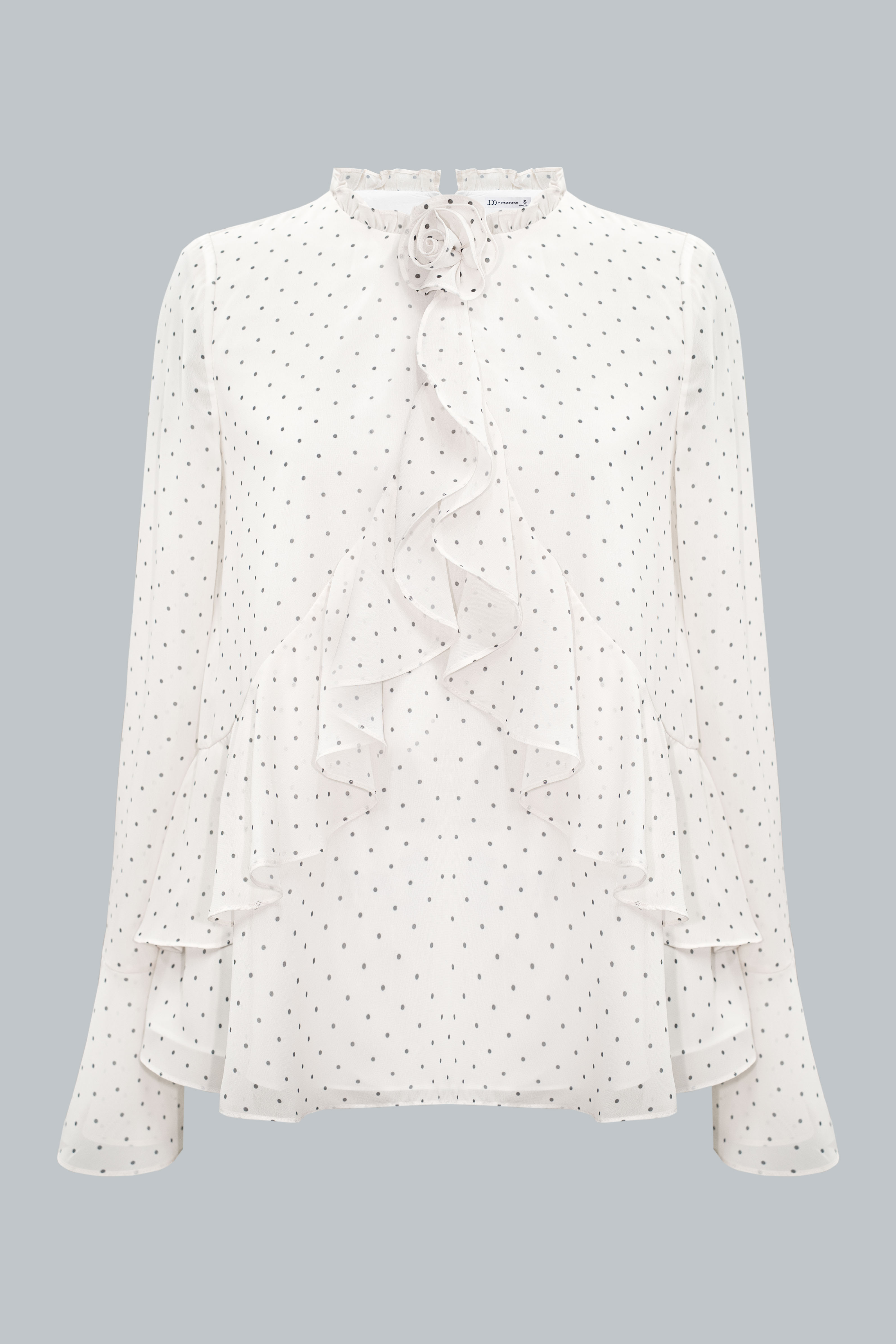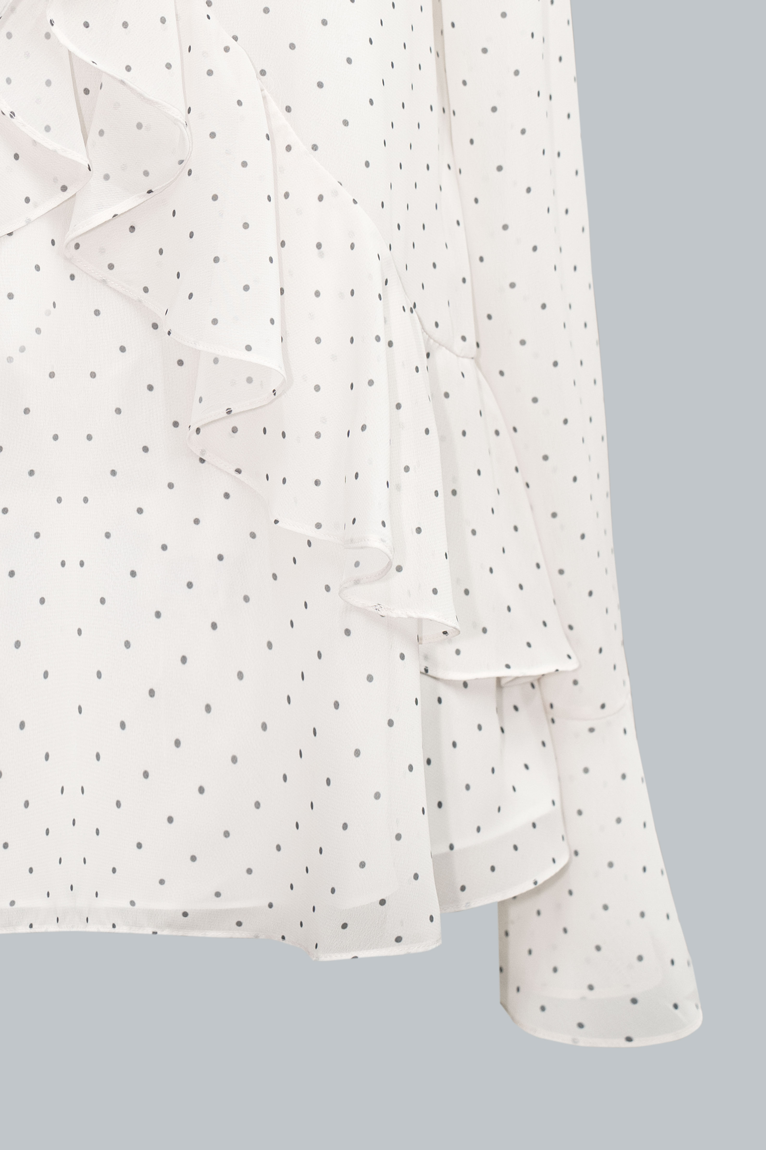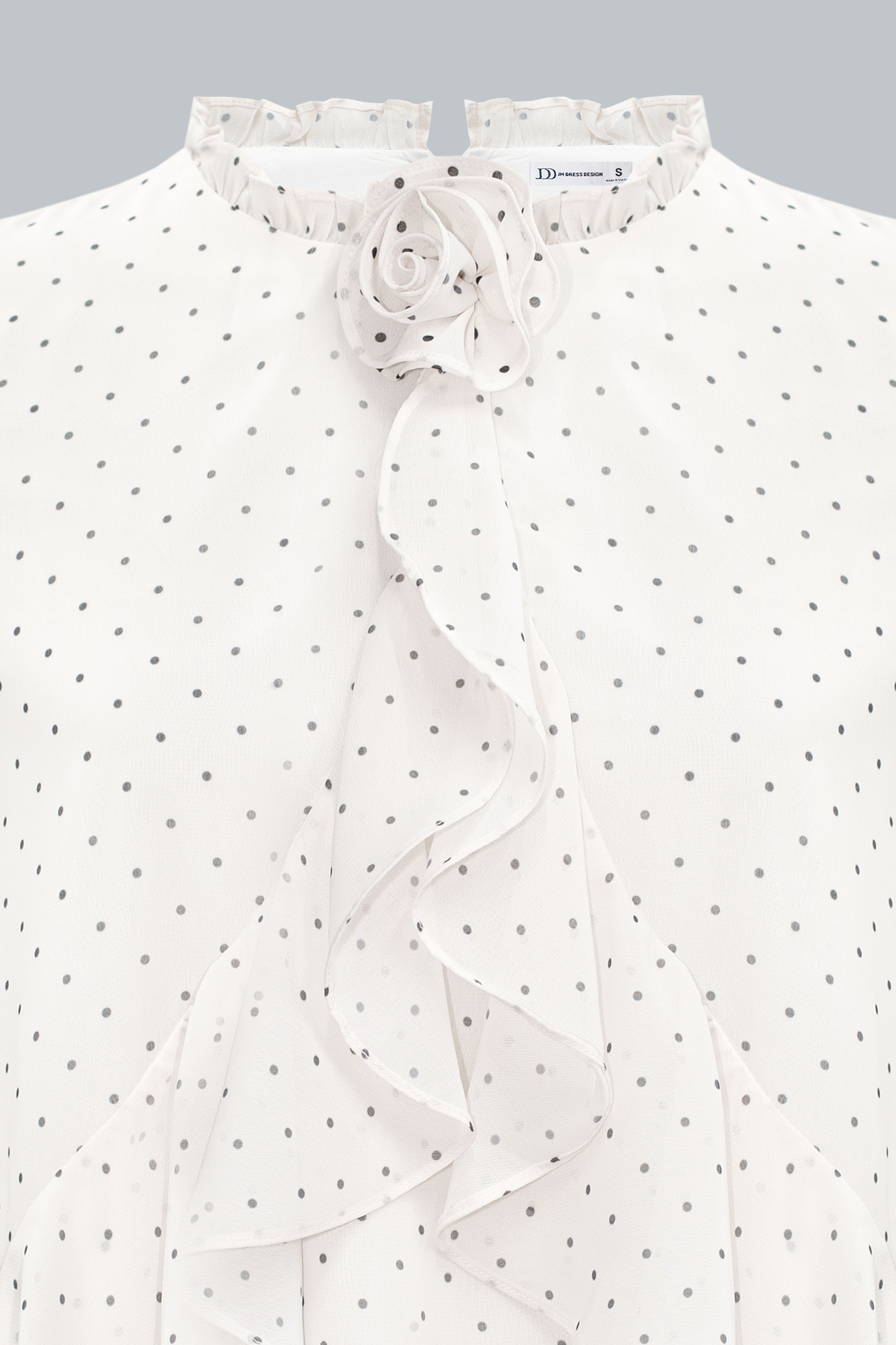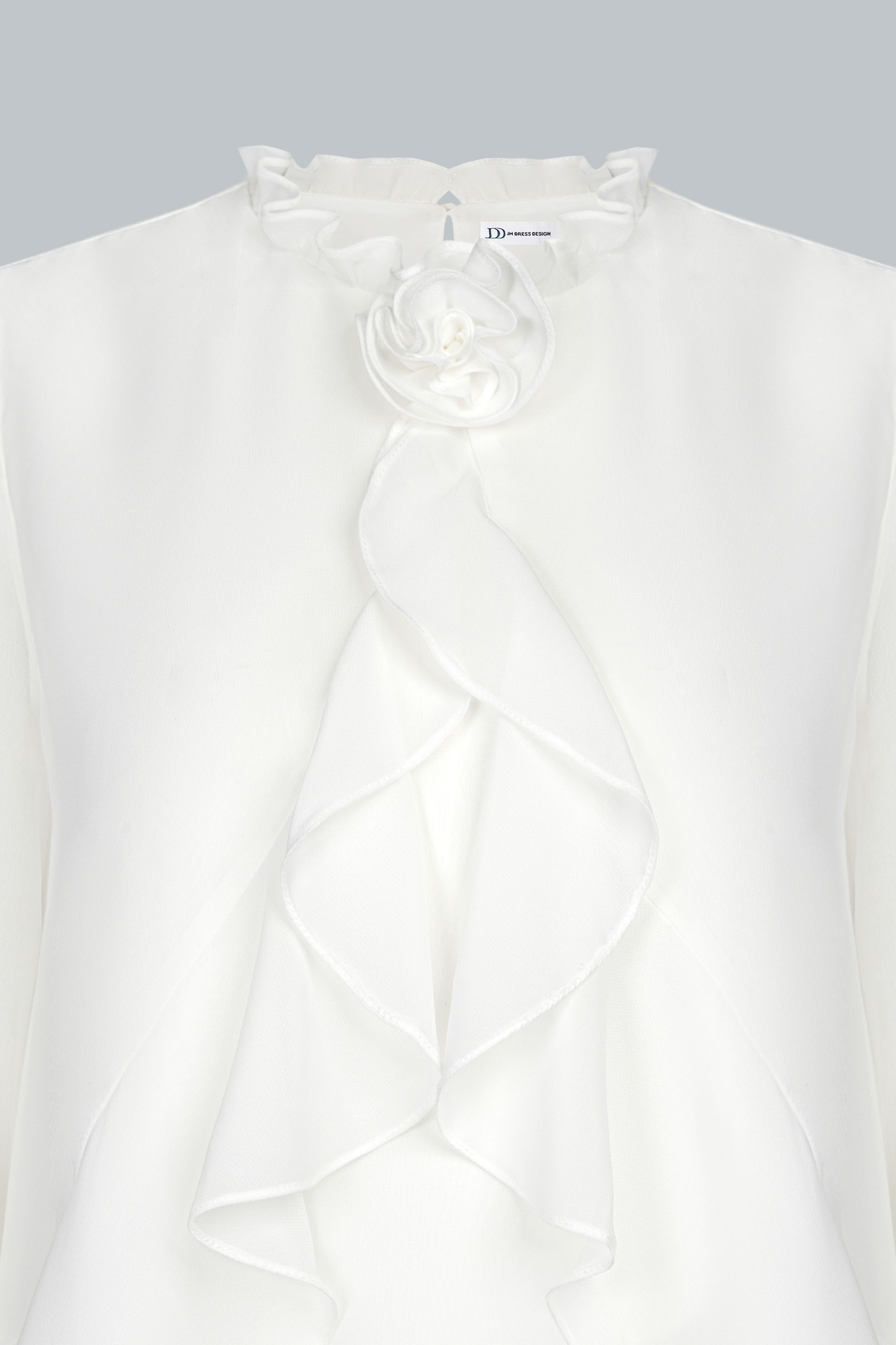 Tựa như một đám mây trắng mềm mại, mẫu áo này là hiện thân của vẻ đẹp nữ tính, lãng mạn và trong trẻo. Từng chi tiết bèo nhún, hoa vải 3D đều được chăm chút tỉ mỉ, tạo nên một tổng thể bay bổng, giúp người mặc toát lên nét duyên dáng, dịu dàng, trẻ trung nhưng vẫn rất trang trọng và thanh lịch.