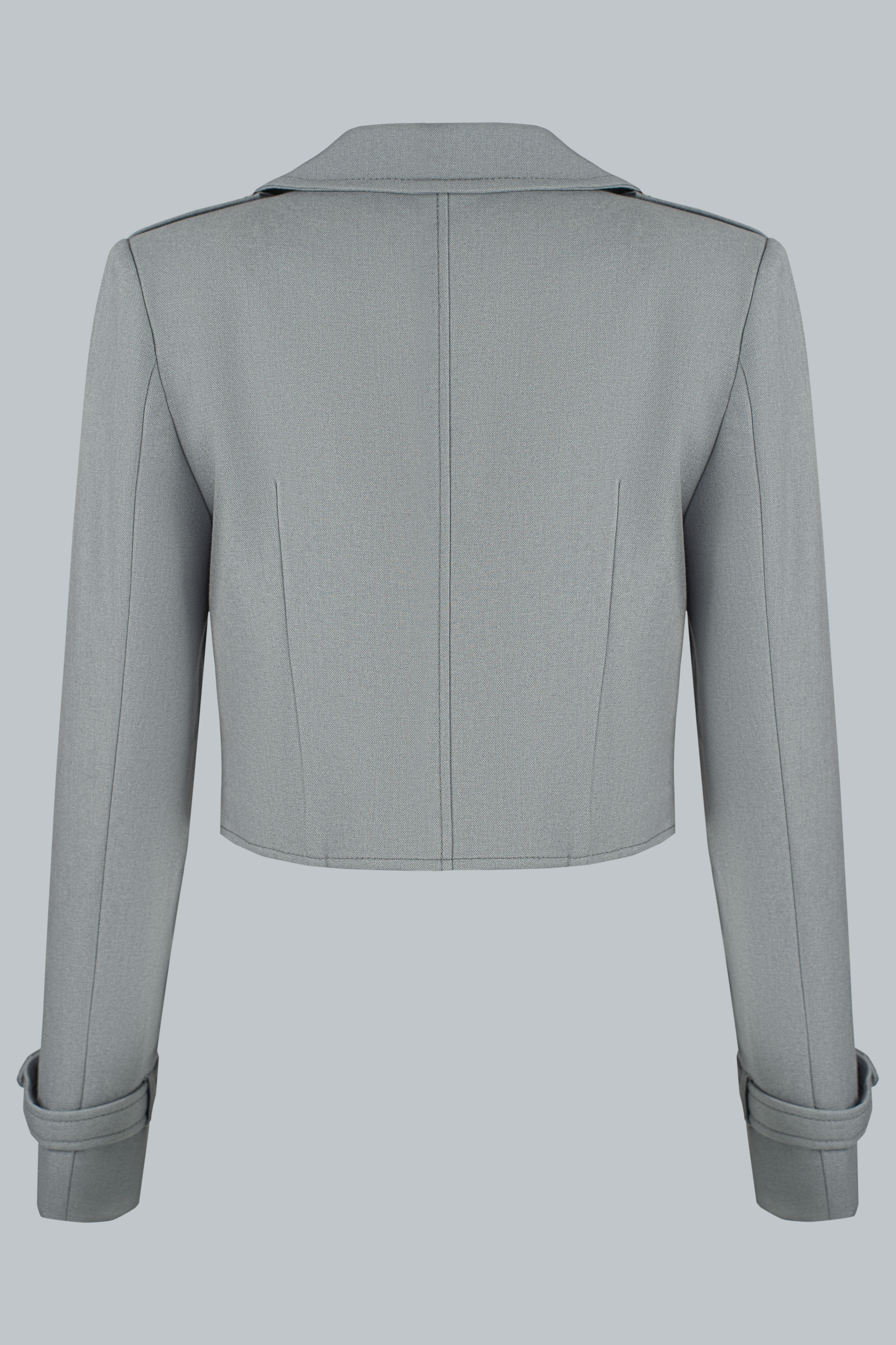 Chiếc trench coat được cắt may theo phom dáng ngắn trên hông, cổ bẻ truyền thống, kết hợp thắt đai bản nhỏ giúp định hình vòng eo tự nhiên.