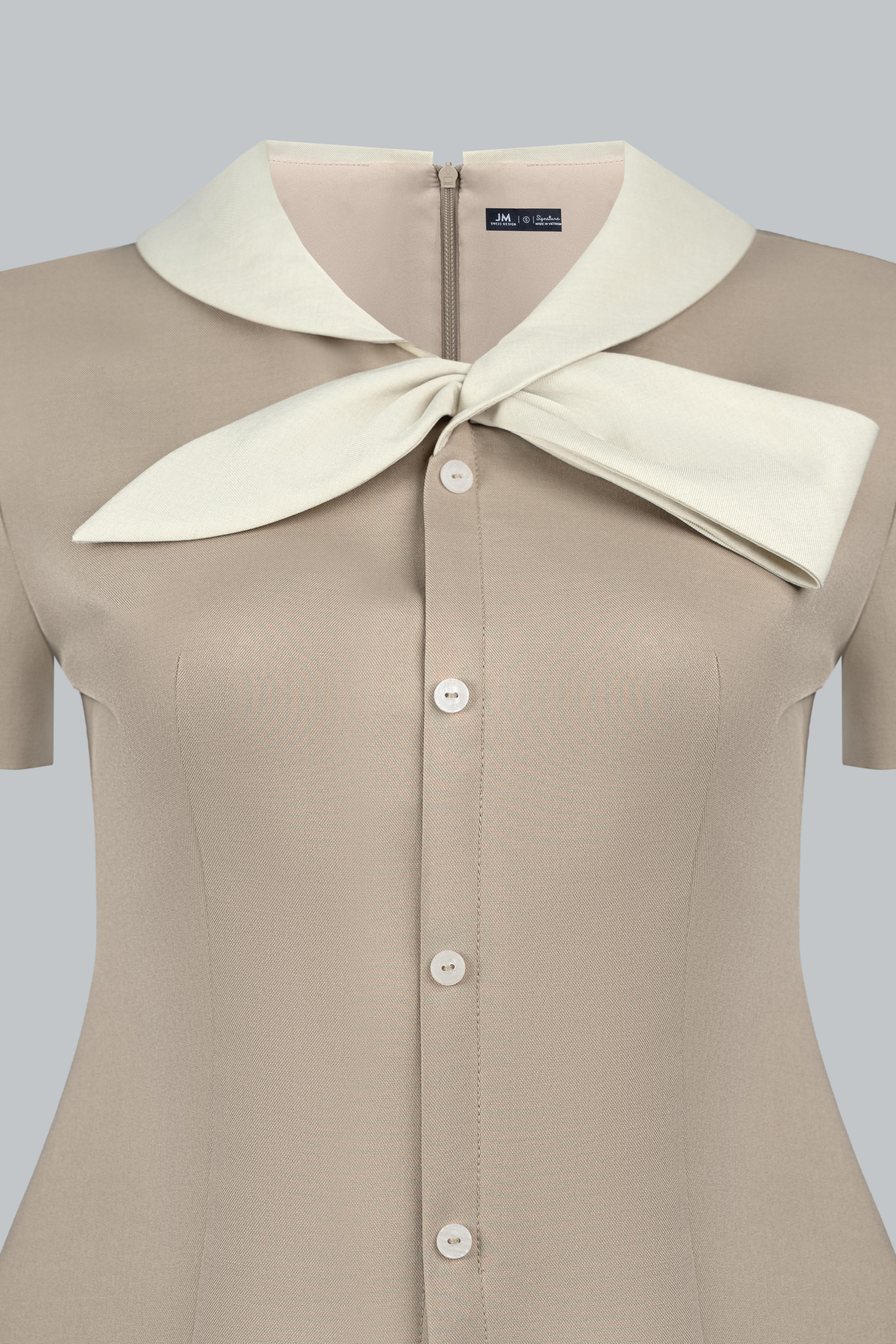 - Không vò xoắn mạnh để giữ phom cổ sen và chi tiết nơ.