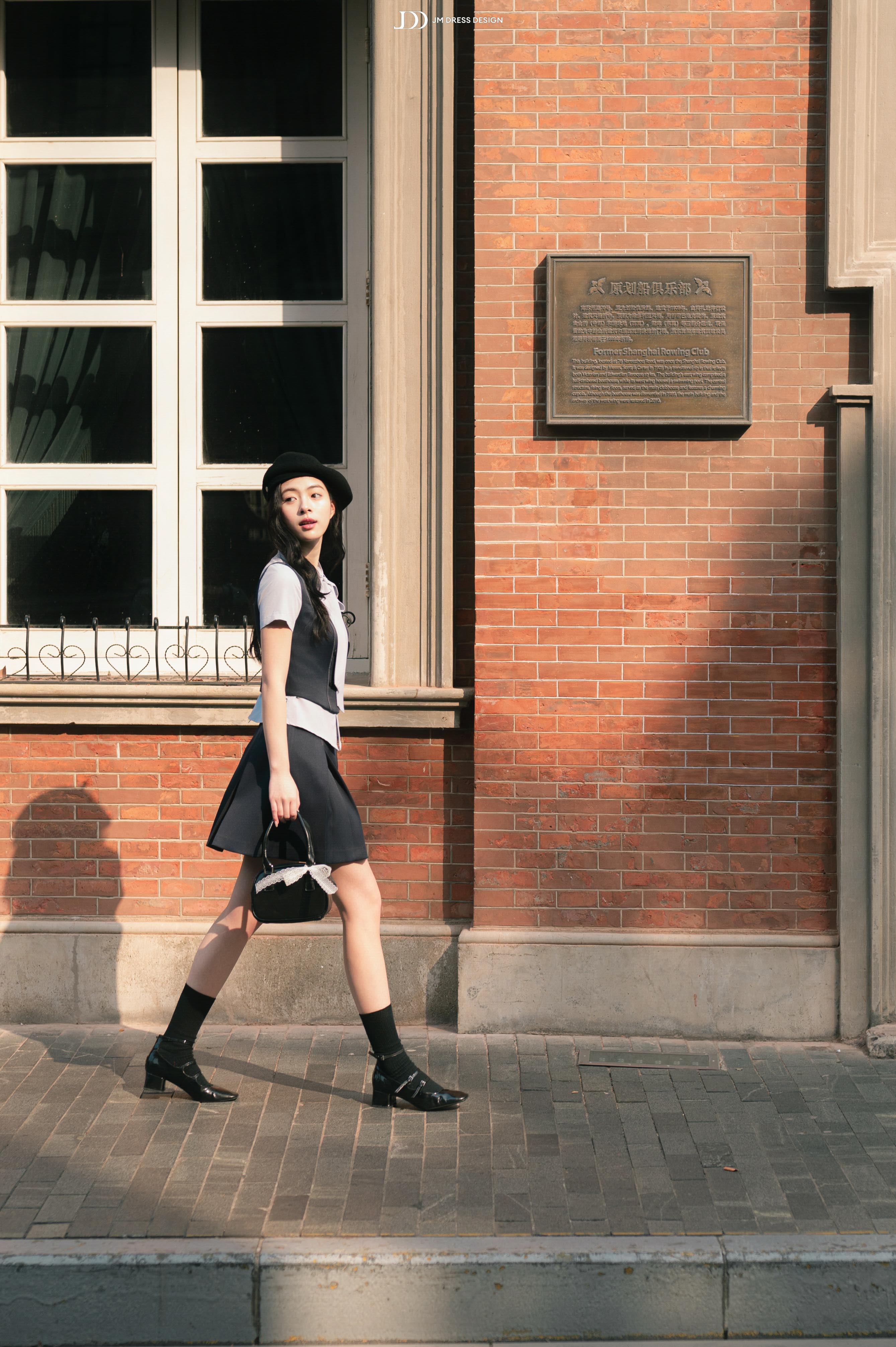 Sự giao thoa khẽ khàng giữa nét cổ điển học viện và hơi thở hiện đại của thành phố. Những con phố nhỏ rợp bóng ngô đồng, nơi ánh nắng sớm xuyên qua tán lá tạo thành những vệt sáng trên mặt đường yên tĩnh. Thiết kế 2T11 là tuyên ngôn về cách nàng JM chọn sống: thanh lịch trong công việc nhưng vẫn đầy tự do trong nhịp sống đô thị.