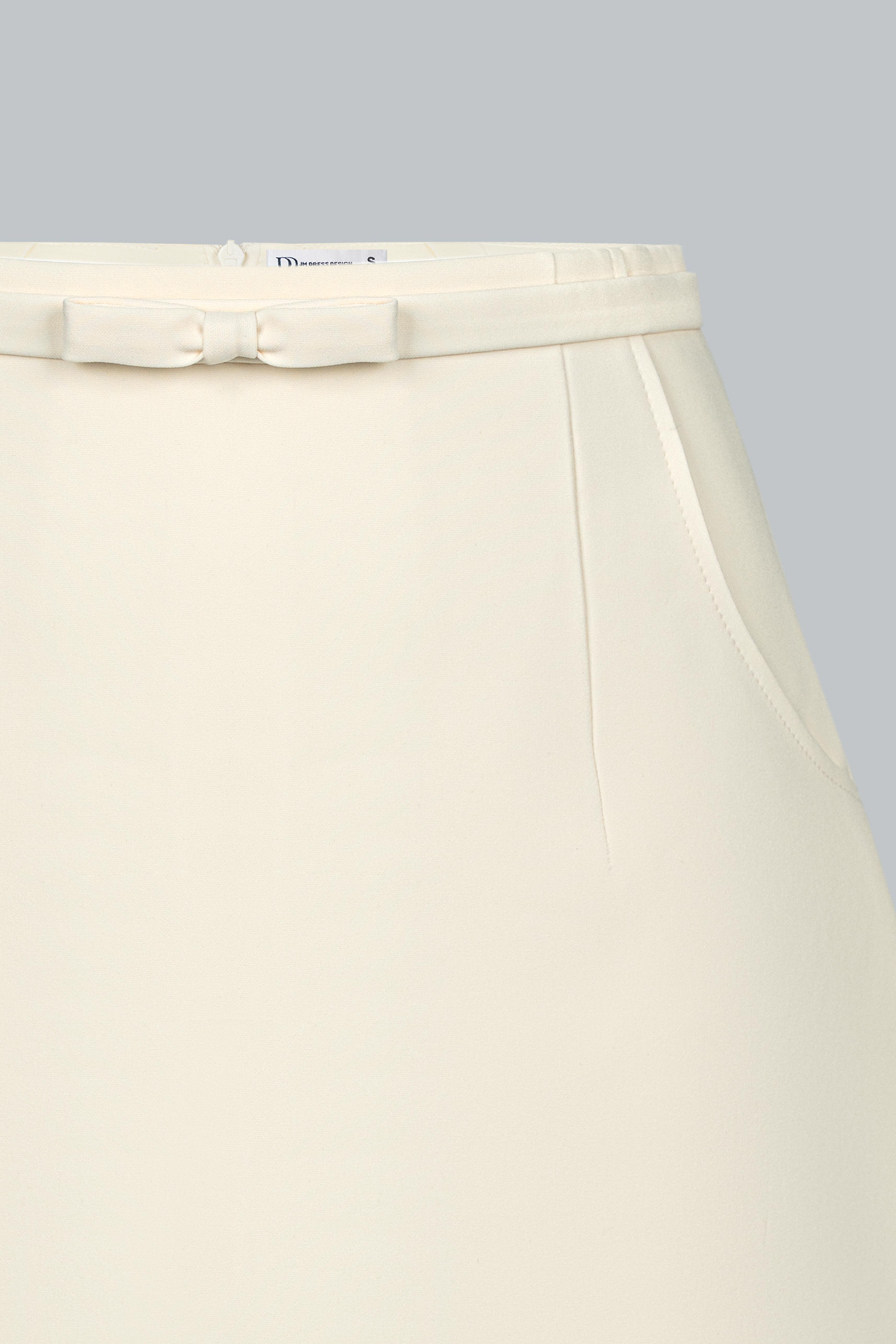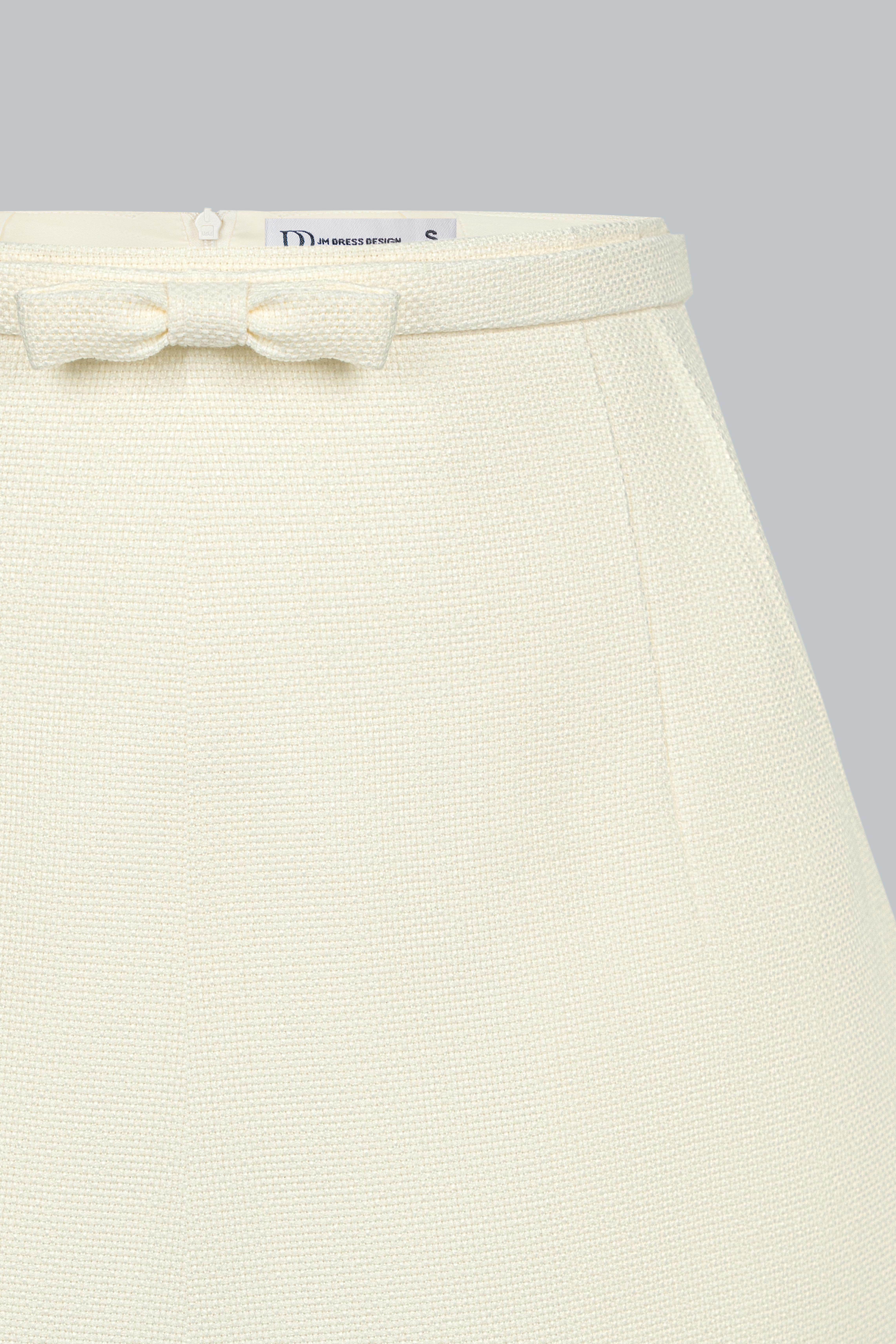 Vải poly weft stripe pha spandex – đứng phom, không nhăn, co giãn nhẹ và giữ được độ phẳng mượt suốt ngày dài. Bề mặt vải có độ lì, không bóng, mang lại cảm giác cao cấp mà không phô trương. Màu sắc tiệp với áo cùng set – tông trắng kem hoặc hồng be nhẹ – đều thuộc bảng màu trung tính thanh lịch của mùa.
