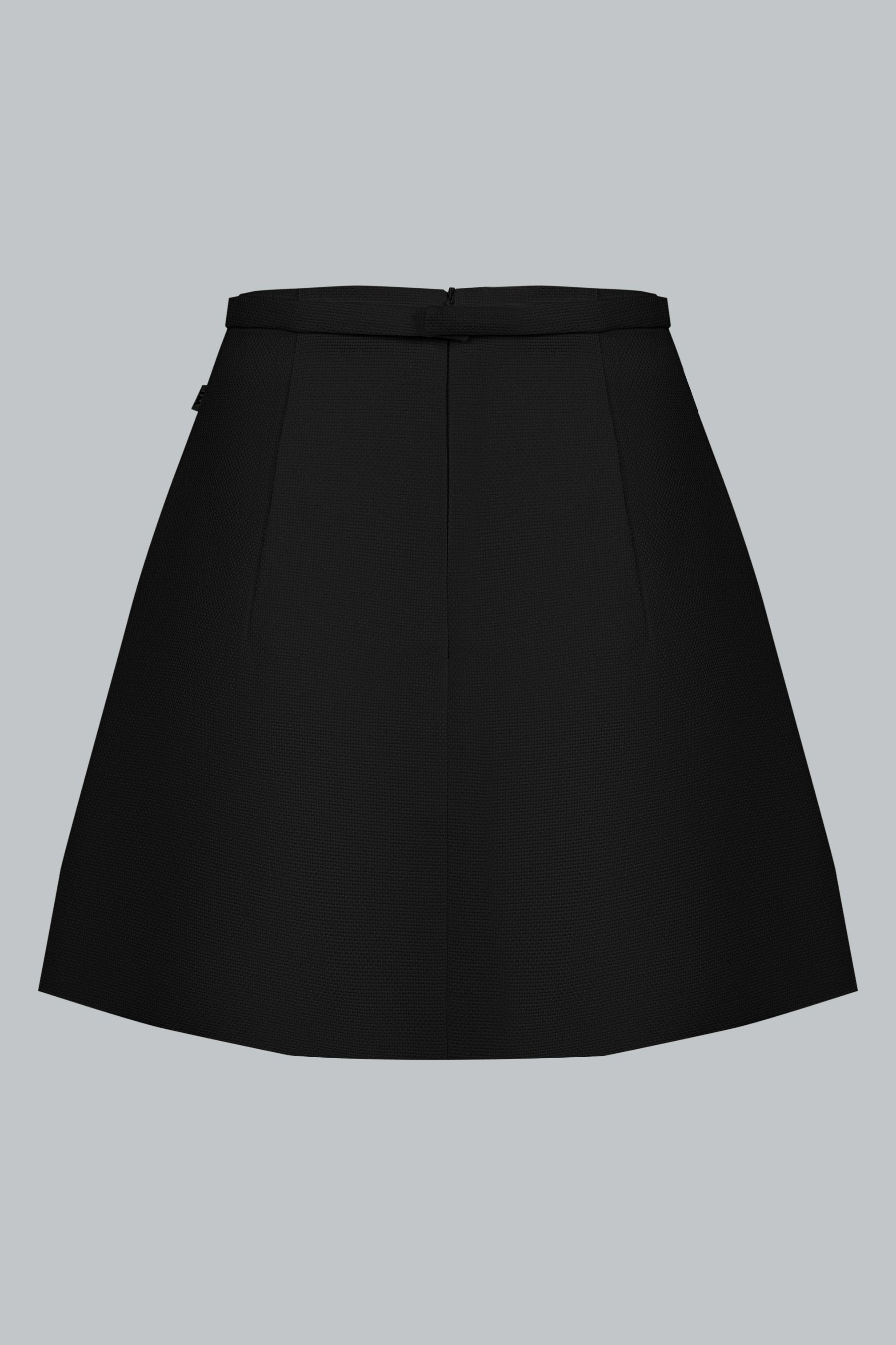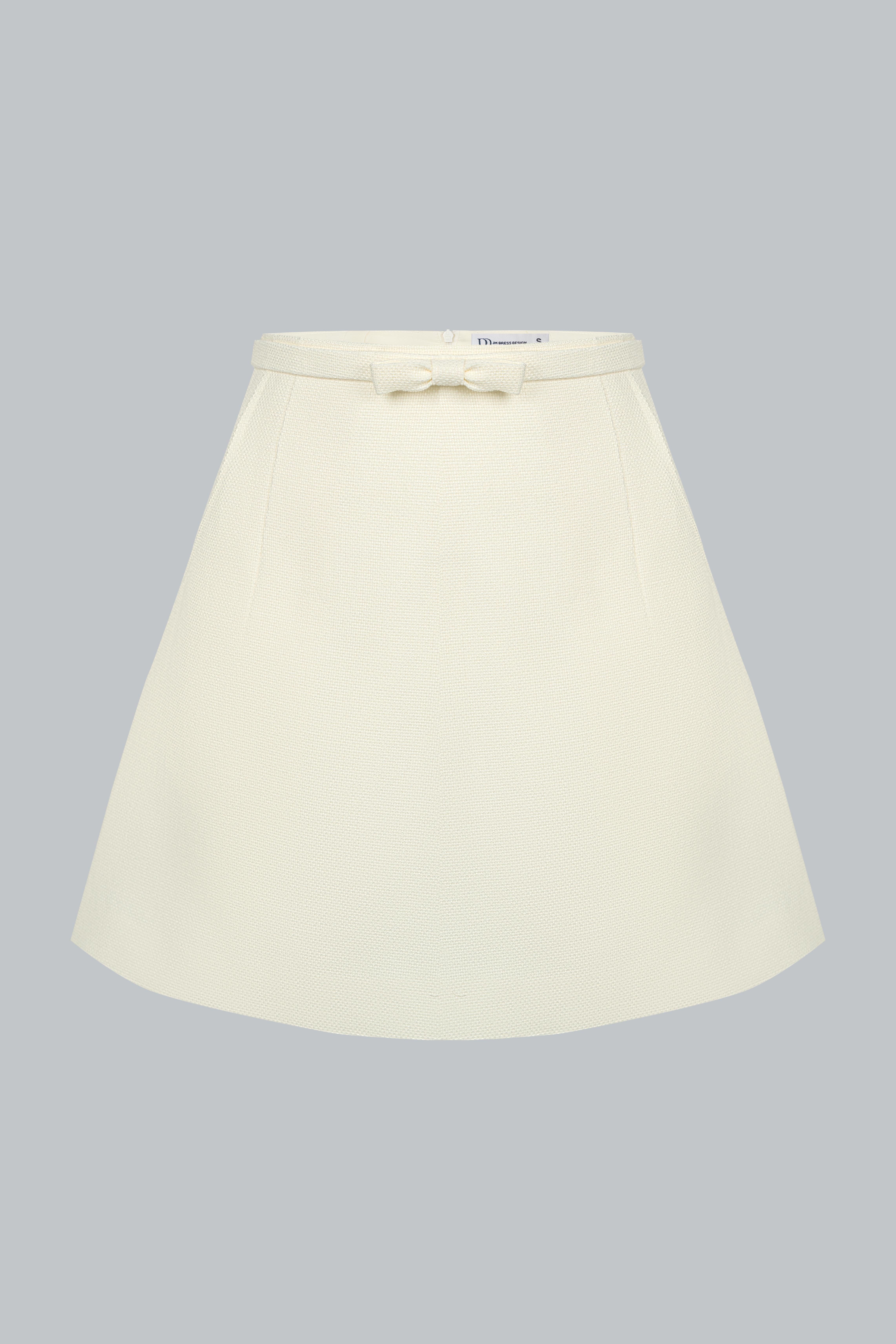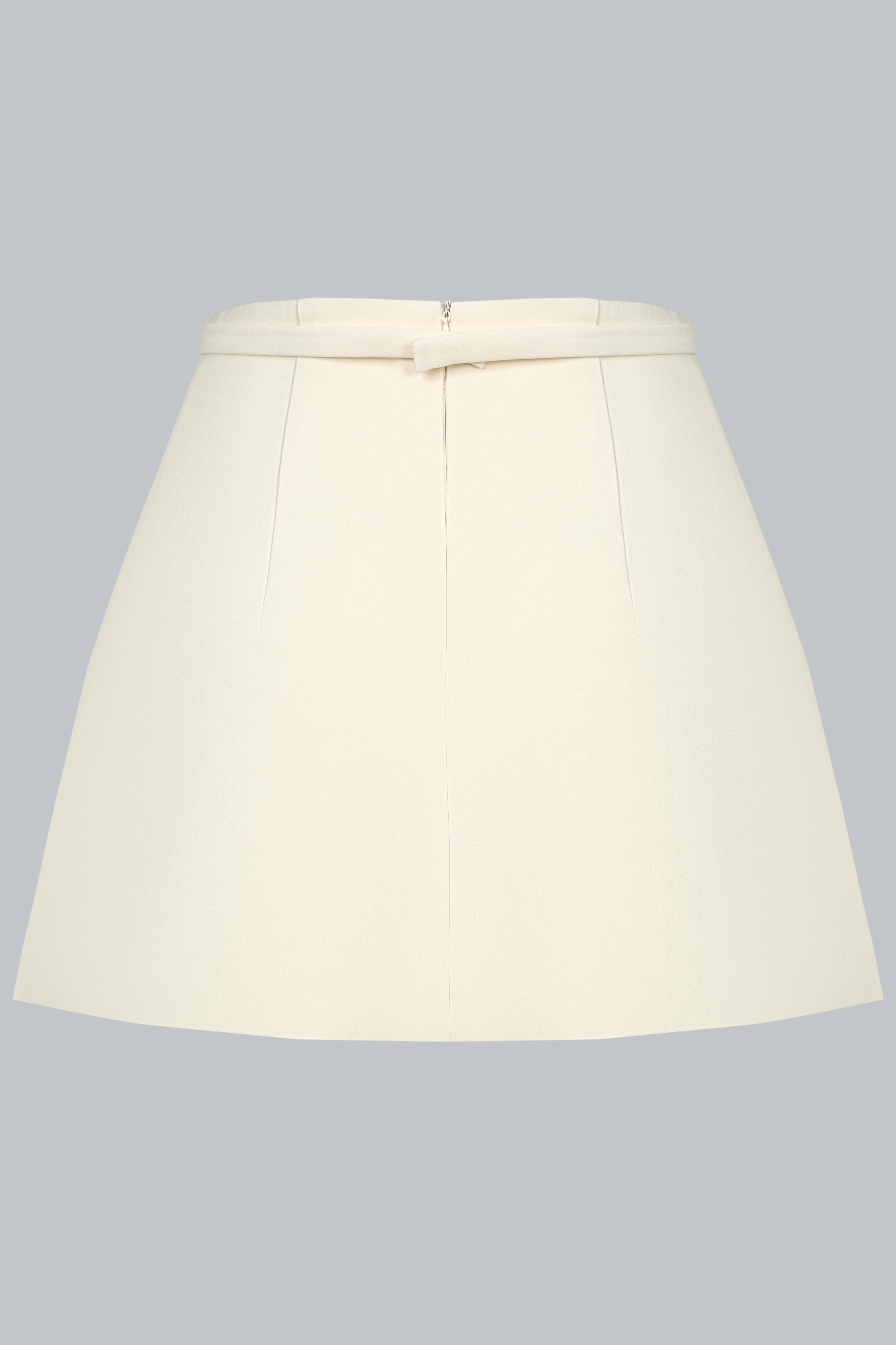 Dáng váy chữ A ngắn – độ dài vừa phải giúp tôn chân và tạo vẻ năng động, trẻ trung. Thiết kế tối giản, không chi tiết thừa – là lựa chọn lý tưởng để cân bằng với phần áo có điểm nhấn tay bo loe. Phom váy giữ đúng chuẩn gọn gàng, giúp tổng thể người mặc trở nên thanh thoát và chỉn chu, nhất là khi được diện như một set đồng bộ.