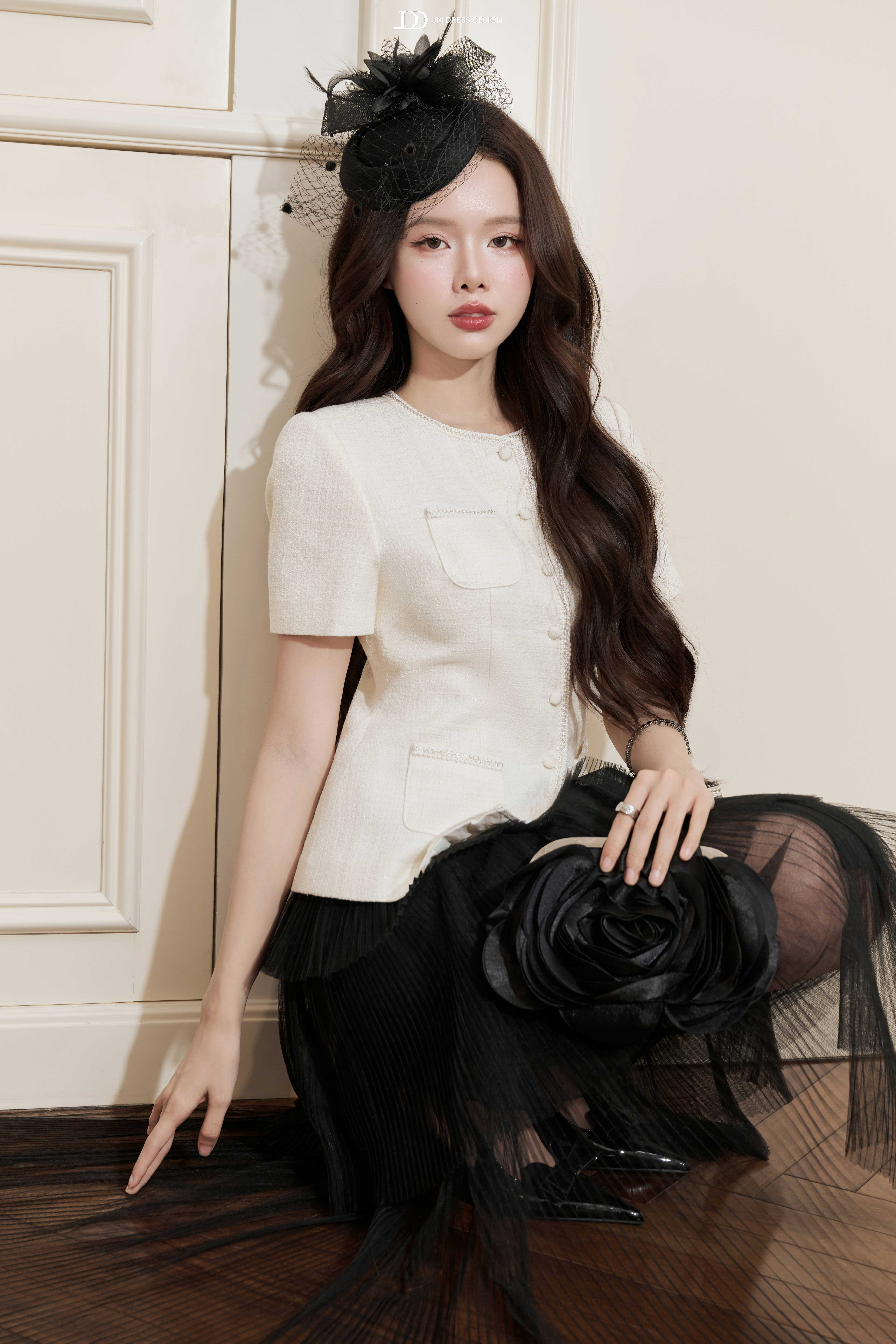Váy dáng dài, xếp tầng nhiều lớp lưới mềm, xử lý bất đối xứng khéo léo tạo hiệu ứng thị giác bồng bềnh và hiện đại. Đường cắt tinh tế khiến từng bước di chuyển của nàng trở nên uyển chuyển như điệu nhạc.