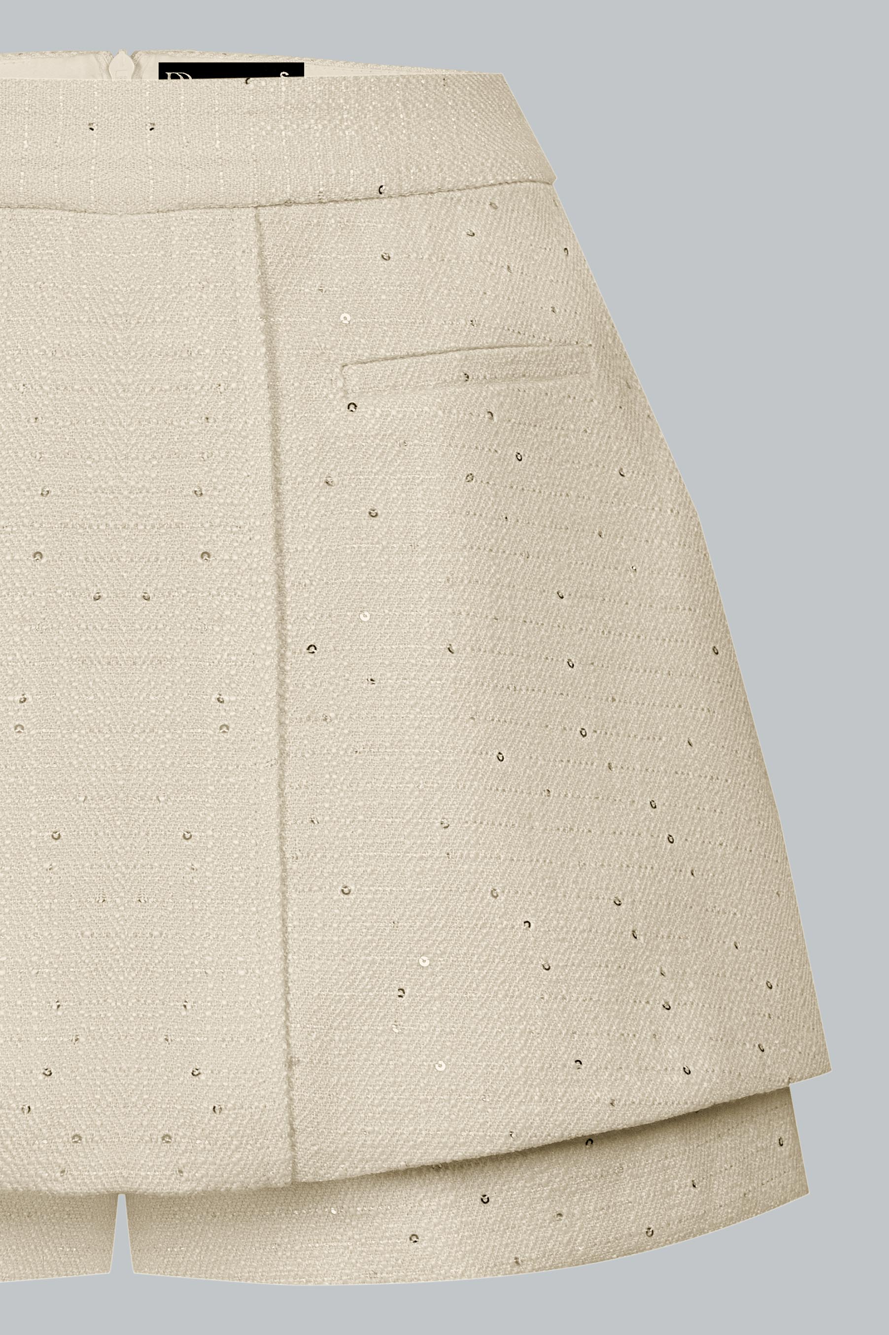 Một chiếc chân váy mini tweed luôn mang lại cảm giác trẻ trung mà vẫn sang trọng. Gam màu cổ điển gợi liên tưởng đến những bữa tiệc ấm áp, nơi nàng toả sáng theo cách tinh tế nhất – lấp lánh nhưng không phô trương.