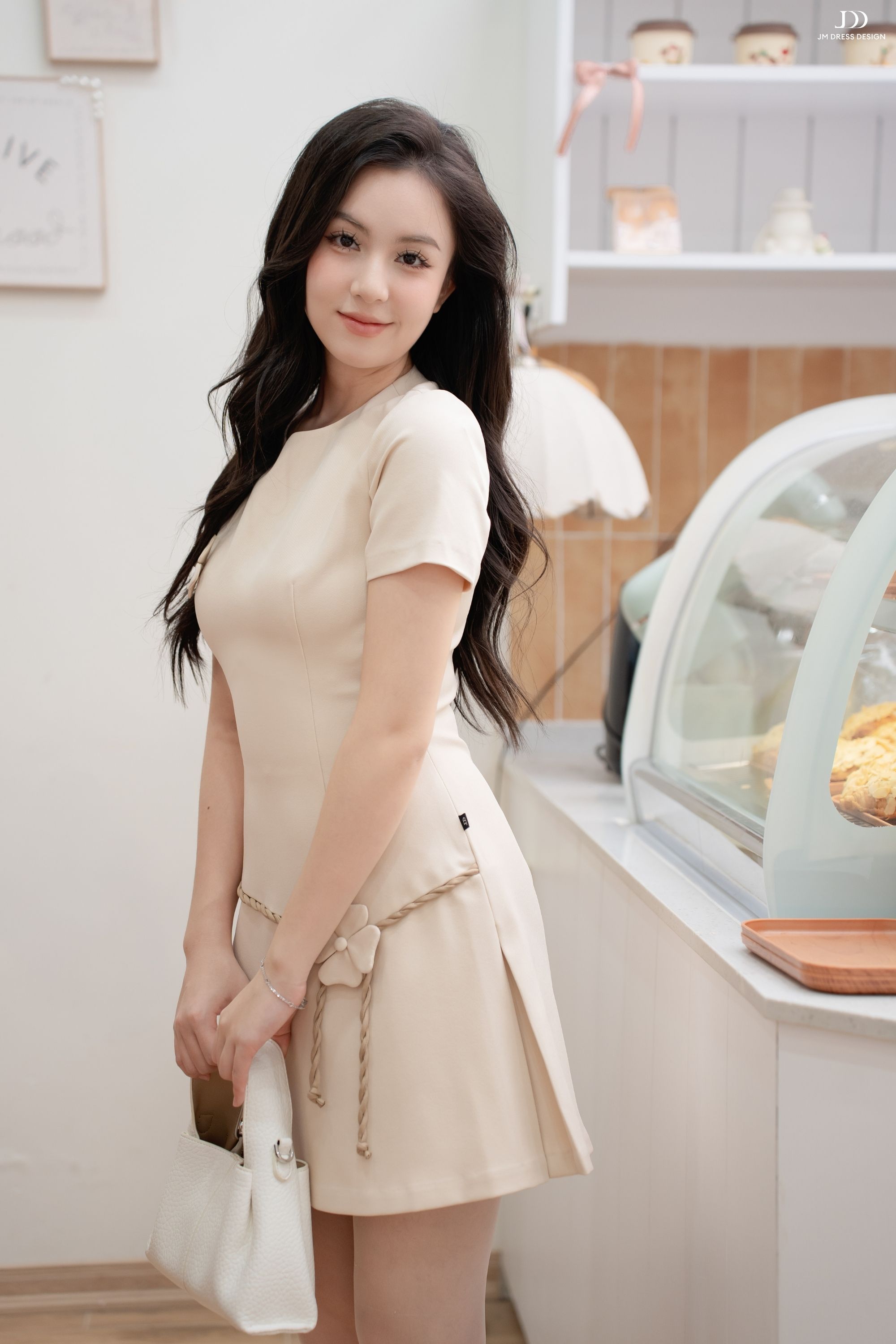 Nhẹ nhàng như một khúc hát mùa xuân, chiếc đầm mang đến sự tươi tắn và trong trẻo, gợi cảm giác thanh lịch nhưng vẫn tràn đầy sức sống.