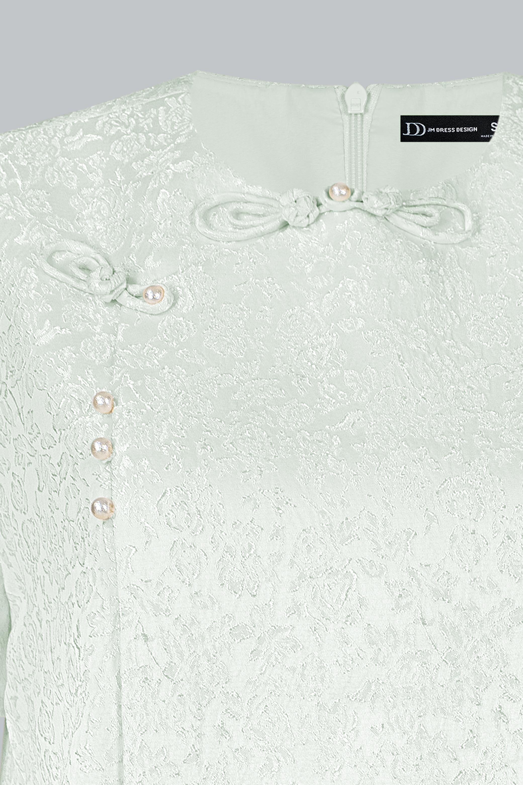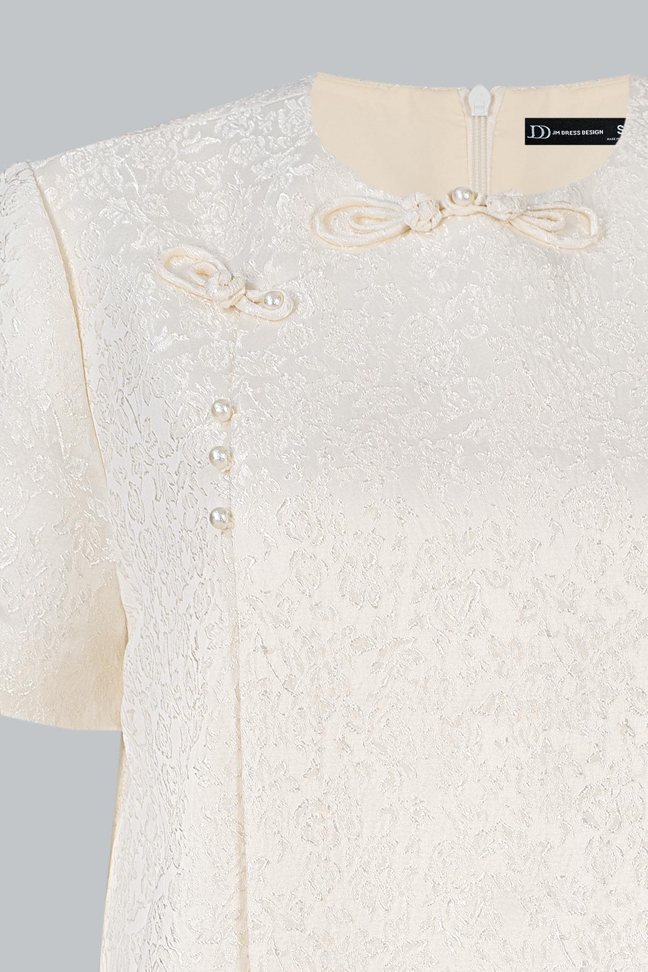 Sự kết hợp gấm + tơ giúp thiết kế vừa sang trọng, vừa trẻ trung - đúng tinh thần “ngọt - nhẹ - tiểu thư” của mẫu.
