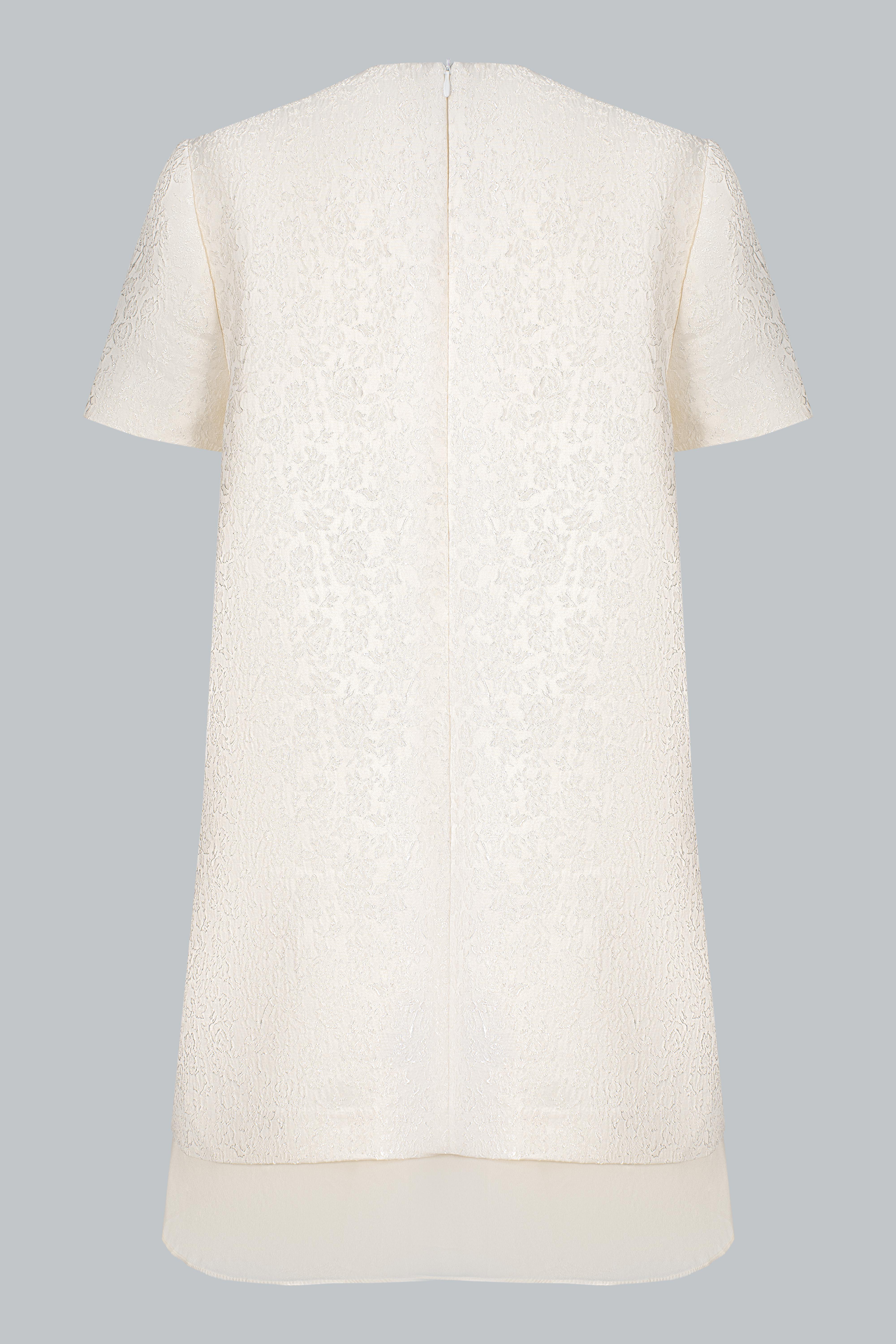 Dáng A-line kết hợp lớp váy chiffon mềm phía dưới giúp đôi chân trông thon và tạo chuyển động nhẹ nhàng mỗi khi nàng bước đi.