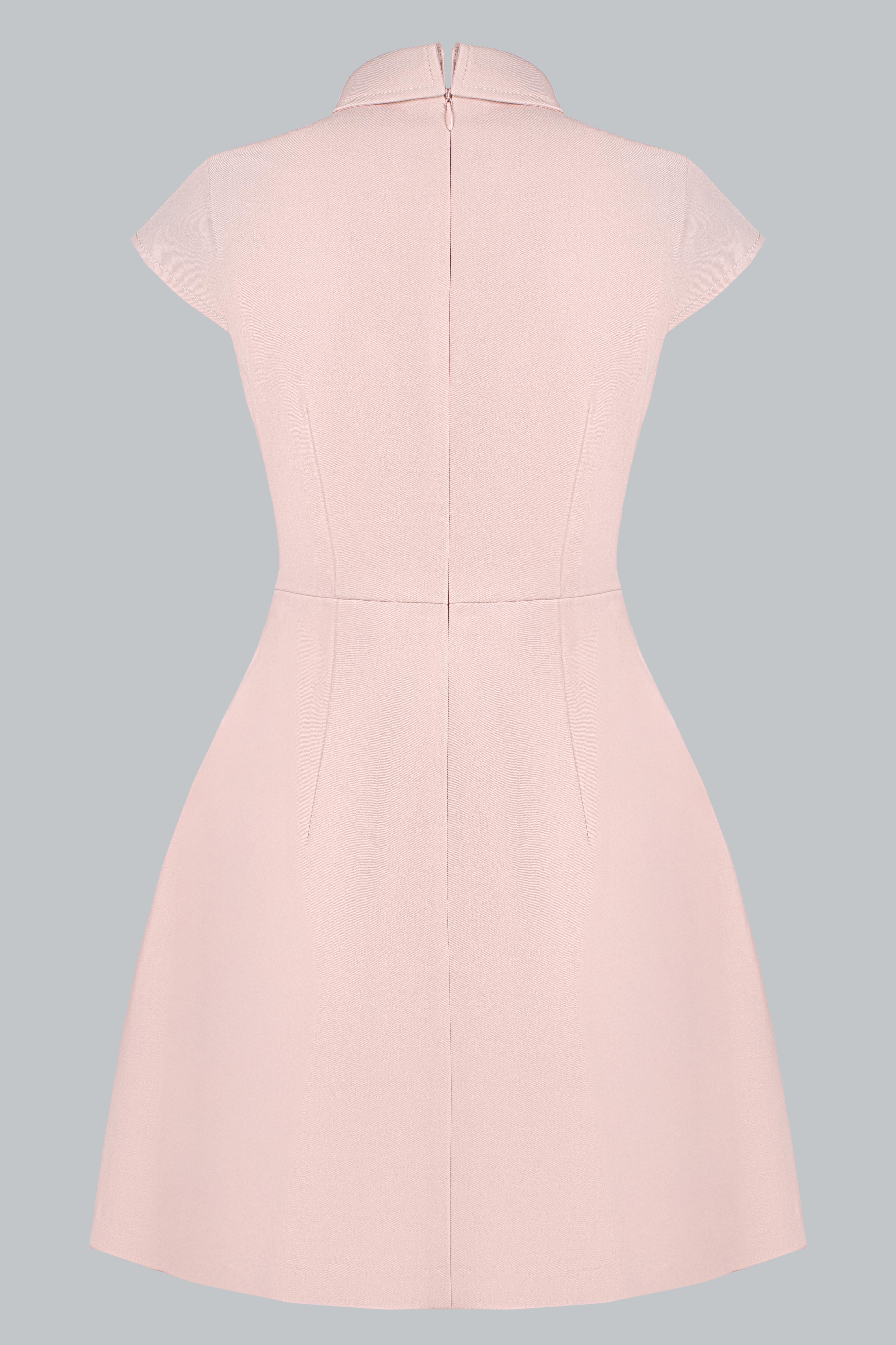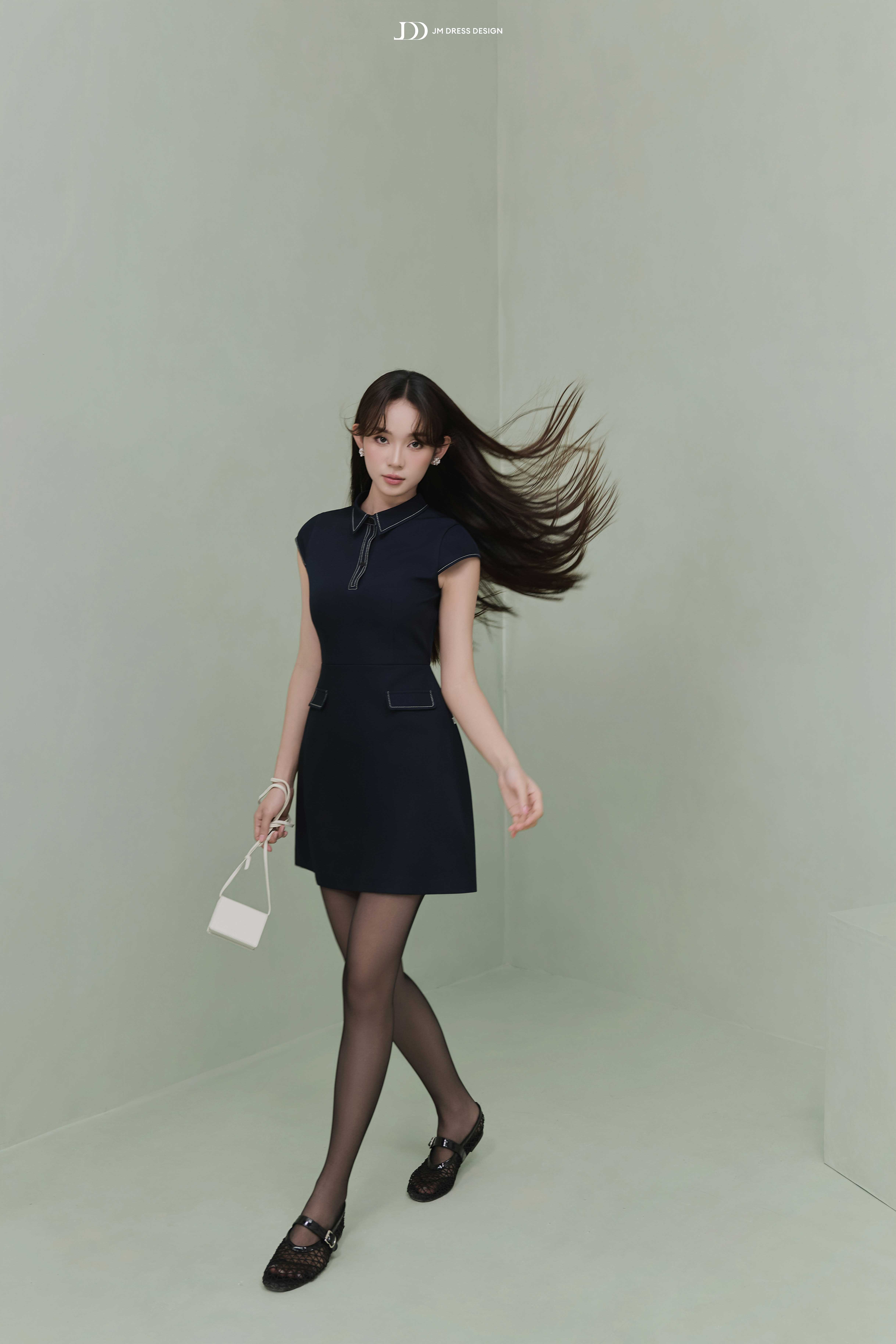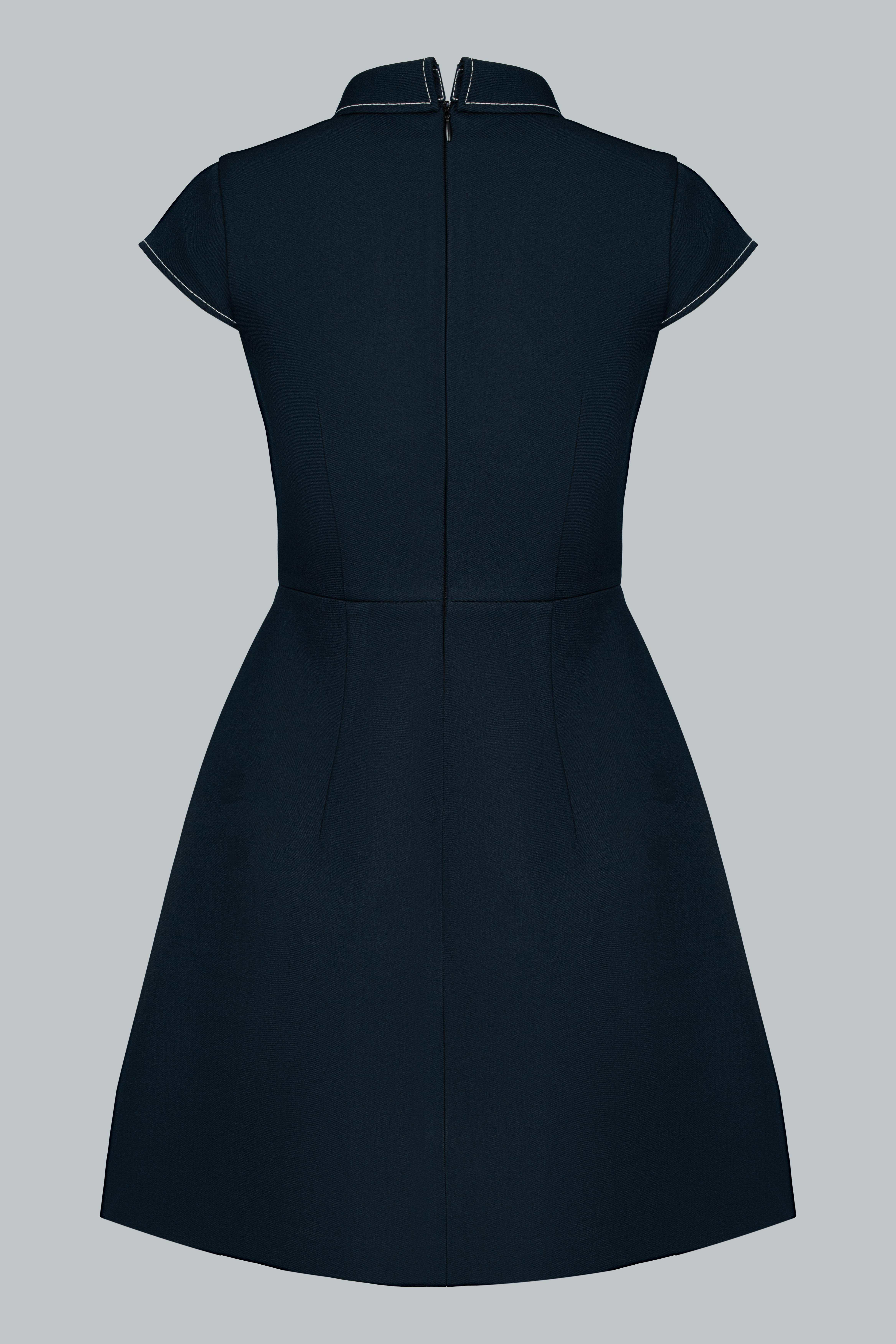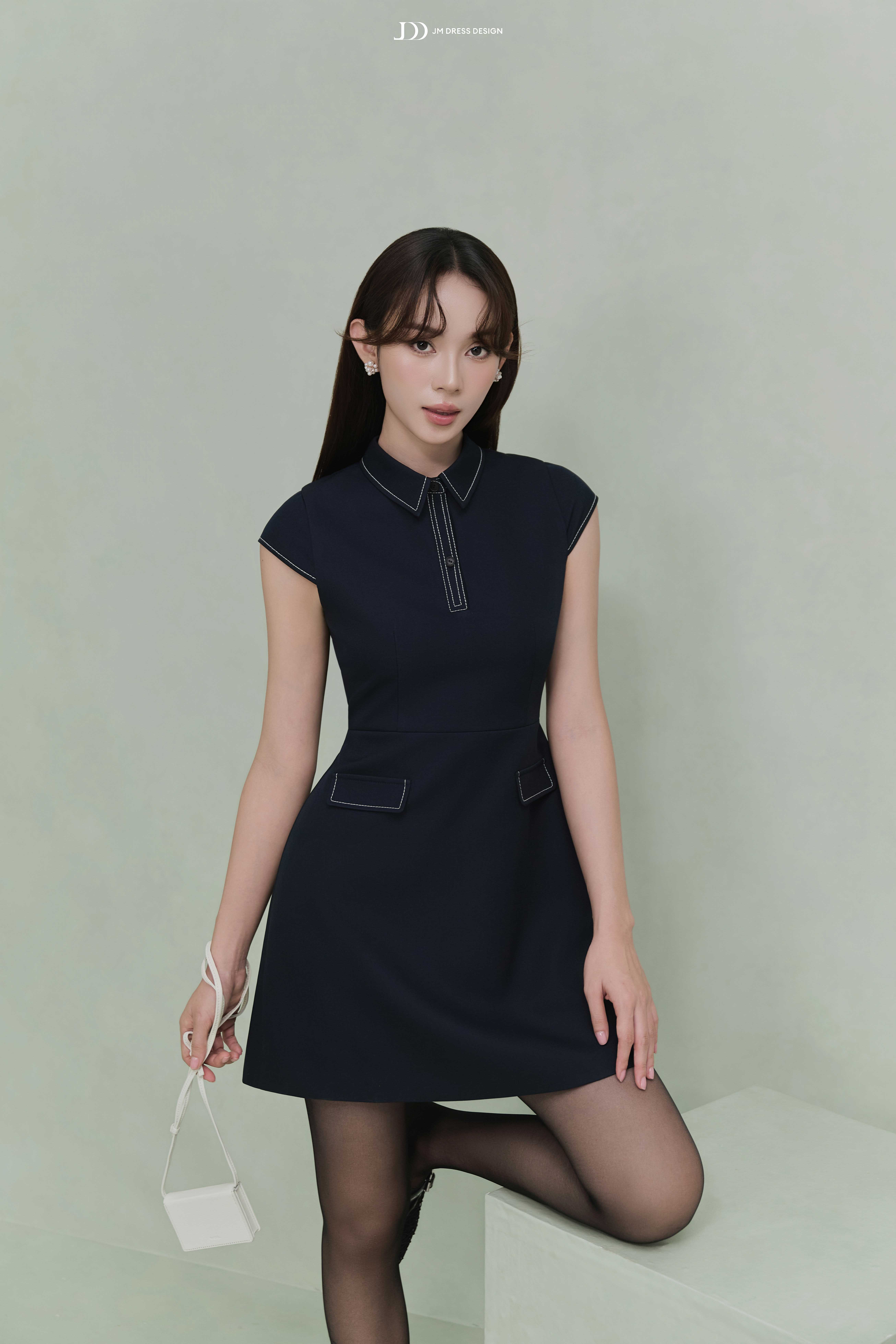 Đầm dáng A ngắn trên gối – tôn đôi chân và mang lại sự năng động. Cổ polo có đường viền chỉ trắng tạo điểm nhấn nổi bật và gợi cảm hứng từ phong cách preppy thanh lịch. Tay con (cap sleeves) vừa đủ gọn gàng, tôn vai mà vẫn kín đáo. Hai chi tiết túi nắp giả ở hông được đặt khéo léo – tạo độ cân đối và điểm nhìn tinh tế. Thiết kế cổ kéo ngắn ẩn hoặc có thể là đường trang trí – thêm chút nhấn nhá thể thao hiện đại. Tổng thể vừa basic, vừa retro nhẹ, phù hợp nhiều phong cách và độ tuổi.