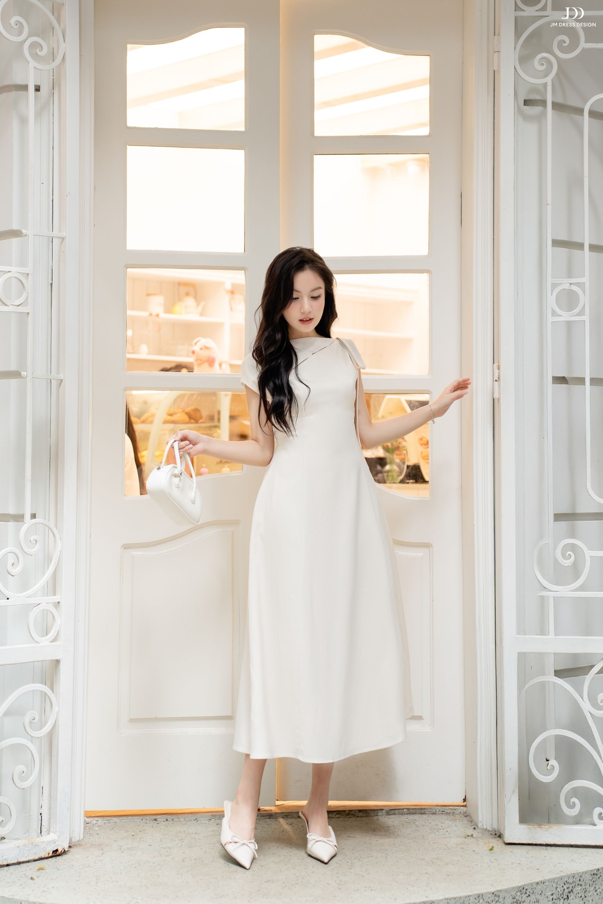 Hoàn hảo cho những sự kiện trang nhã, tiệc cưới, buổi gặp đối tác hay buổi chụp lookbook theo phong cách elegant. Dễ dàng kết hợp cùng giày mũi nhọn nude hoặc trắng, túi clutch nhỏ, hoa tai dáng dài đơn giản và kiểu tóc búi thấp hoặc uốn nhẹ – để tạo nên diện mạo thanh thoát và đầy tinh thần “soft minimalism”.