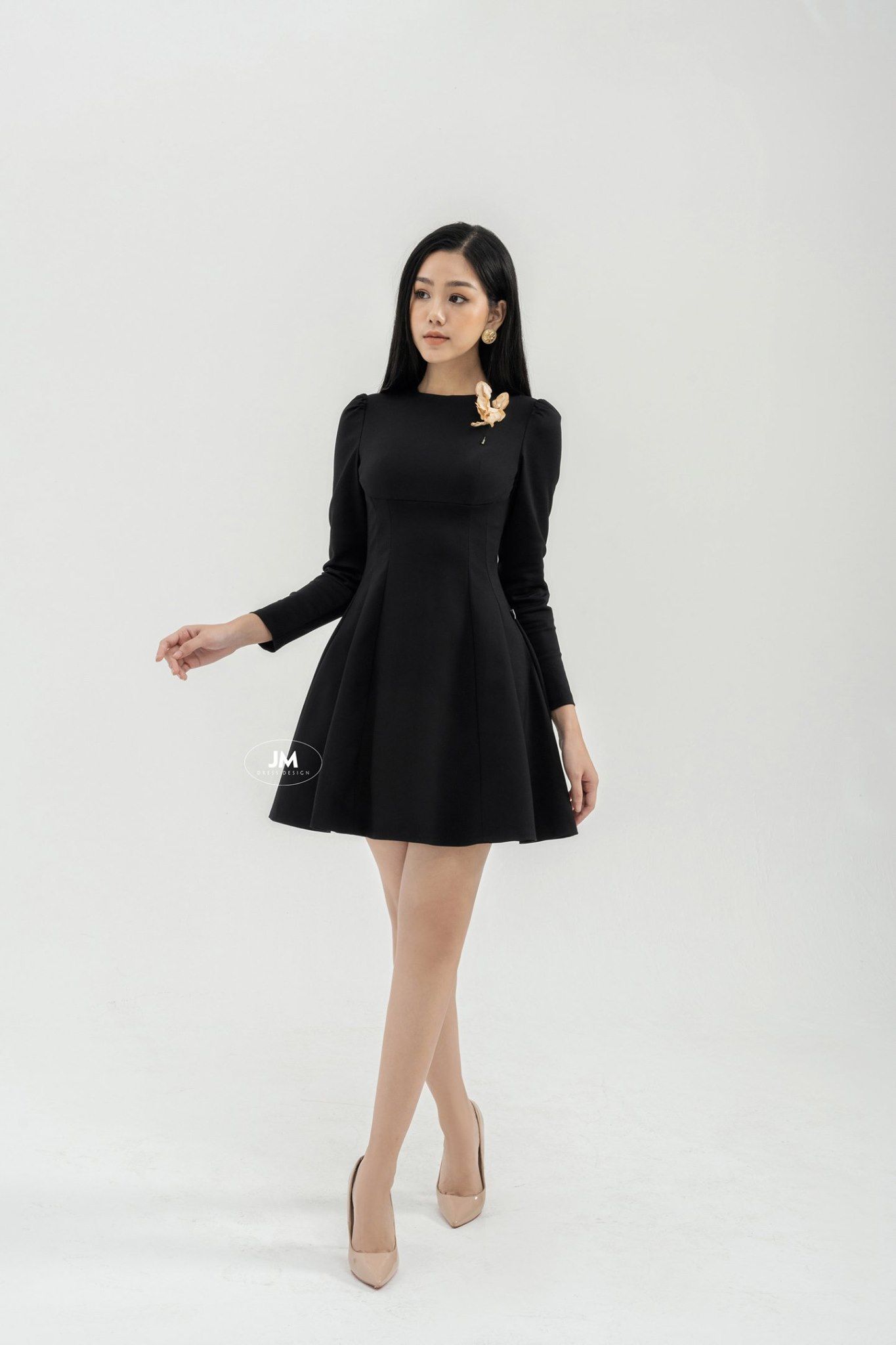Đầm ôm A bổ mảnh cài hoa ngực