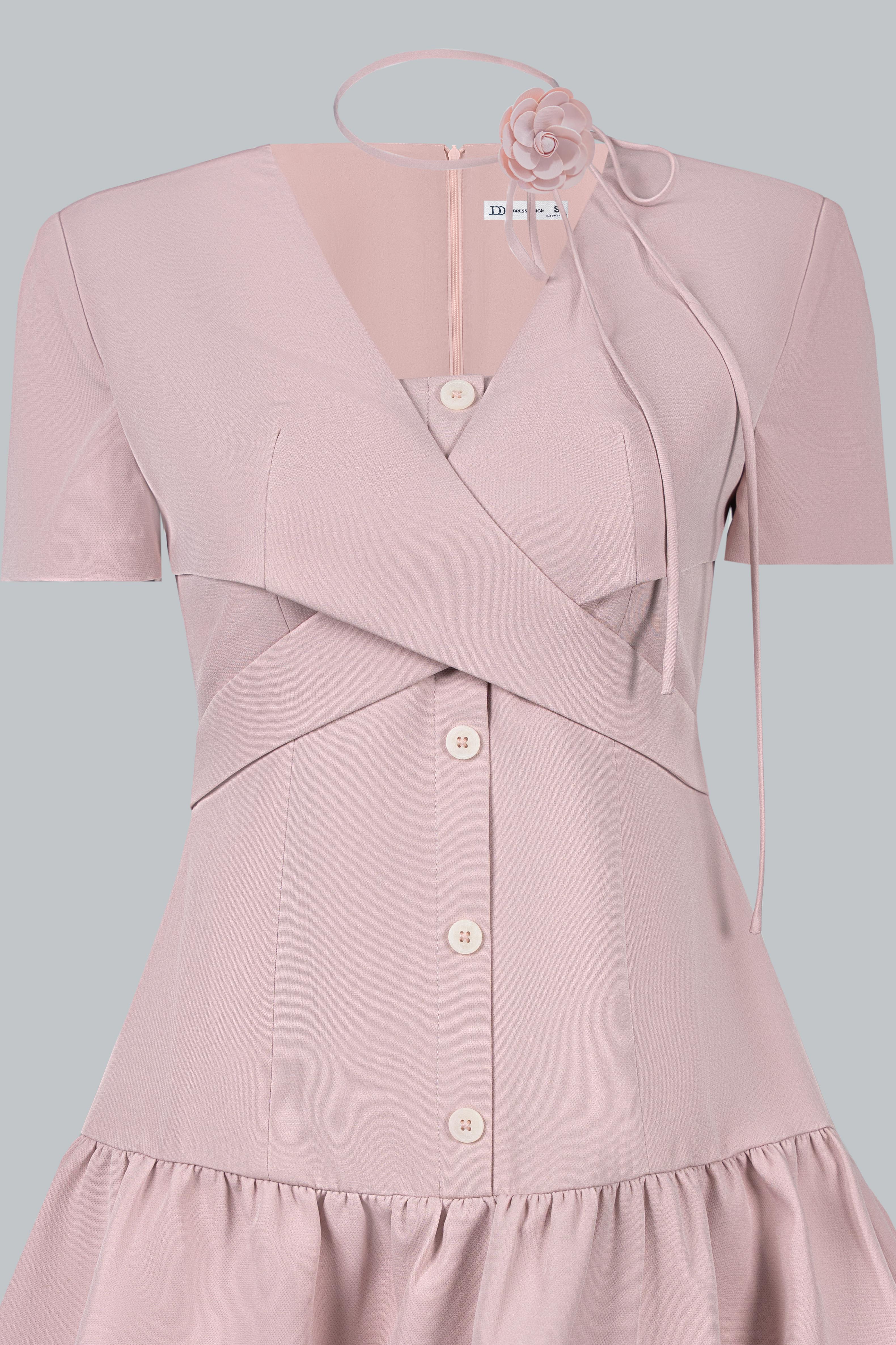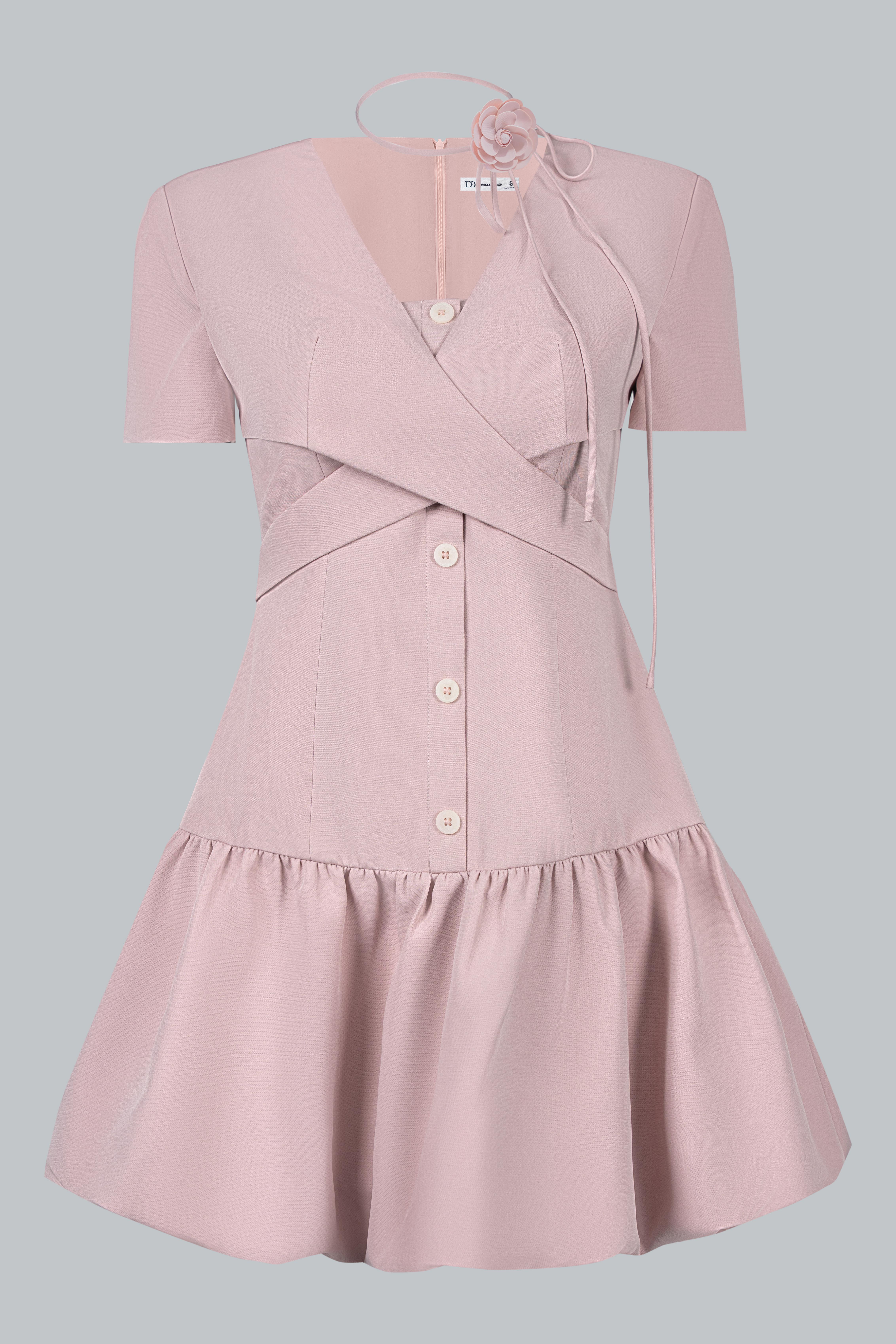 Thiết kế đi kèm choker rời đính hoa vải cùng tone với váy, có thể linh hoạt tháo rời để biến hóa phong cách: