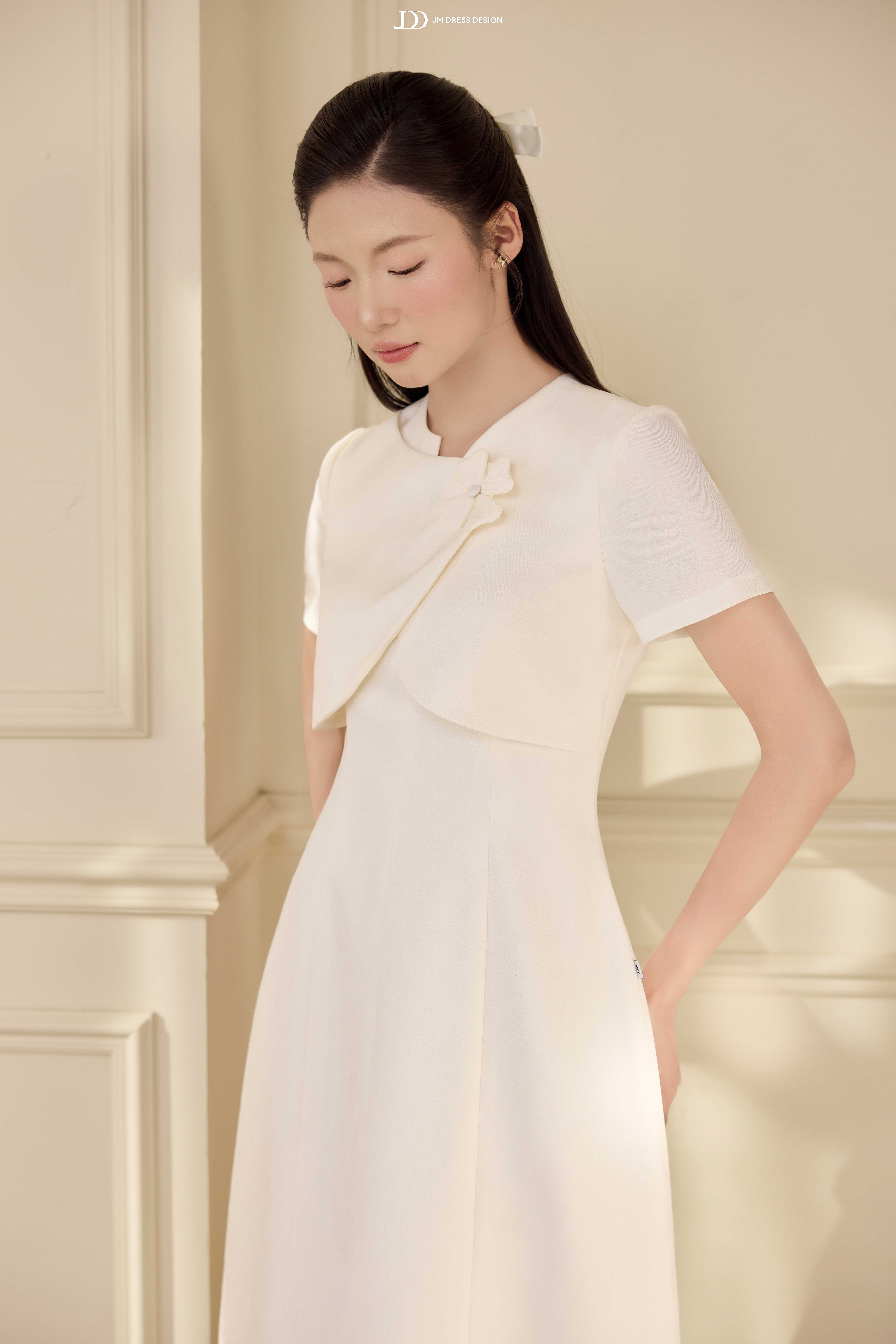 Nhẹ nhàng và tinh khôi như một mảnh ký ức được gìn giữ trọn vẹn, thiết kế này gợi lên hình ảnh người phụ nữ trưởng thành với phong thái điềm tĩnh và vẻ đẹp bền vững theo thời gian. Không phô trương, không ồn ào, từng đường nét đều chậm rãi kể câu chuyện về sự thanh lịch nội tại – nơi ký ức trở thành nền tảng cho phong cách sống hôm nay.