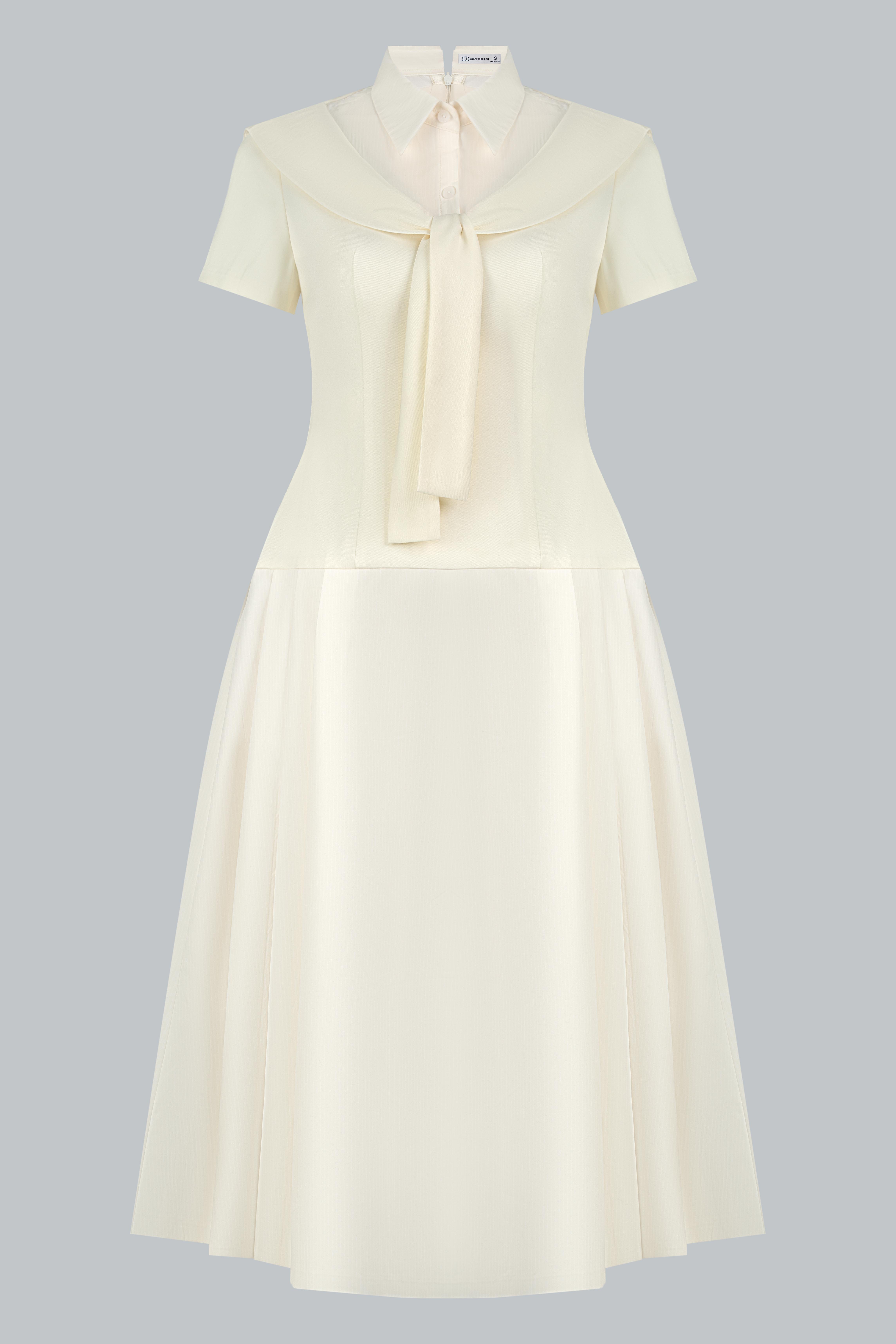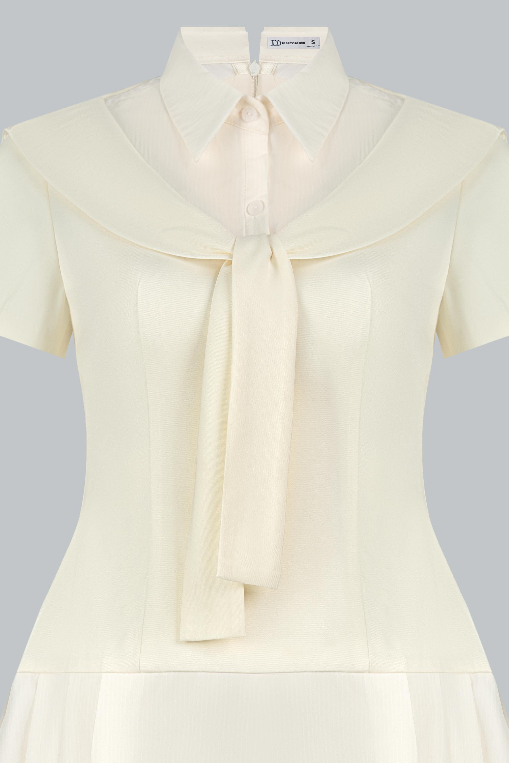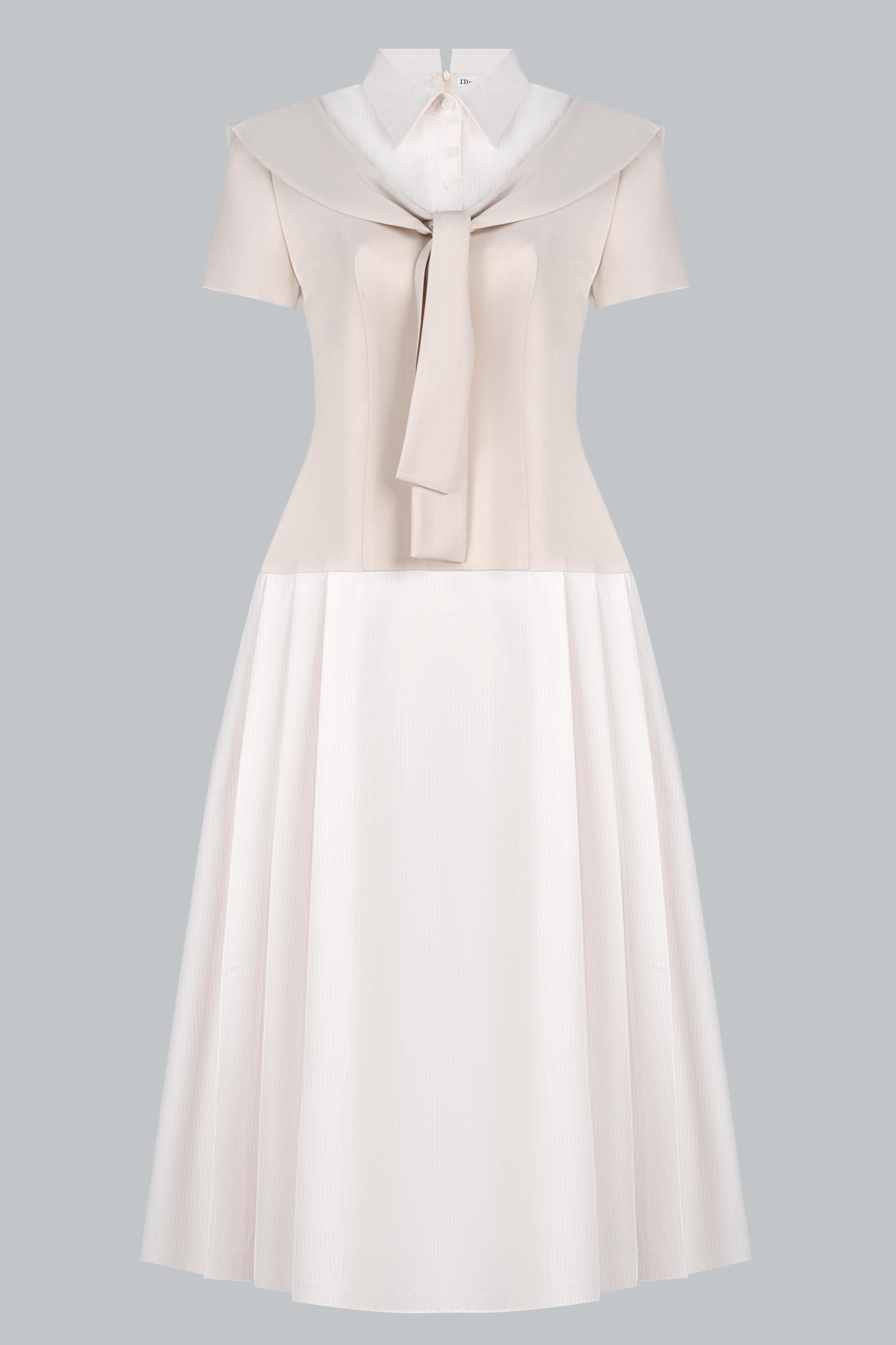 Đầm dáng A-line dài qua gối, giúp tổng thể thon gọn và cân đối. Phần thân trên tối giản với cổ sơ mi kết hợp nơ buông nhẹ, tạo điểm nhấn thanh lịch cùng chi tiét chiết eo tinh gọn giúp tôn dáng nhẹ nhàng và phù hợp với nhiều vóc người.