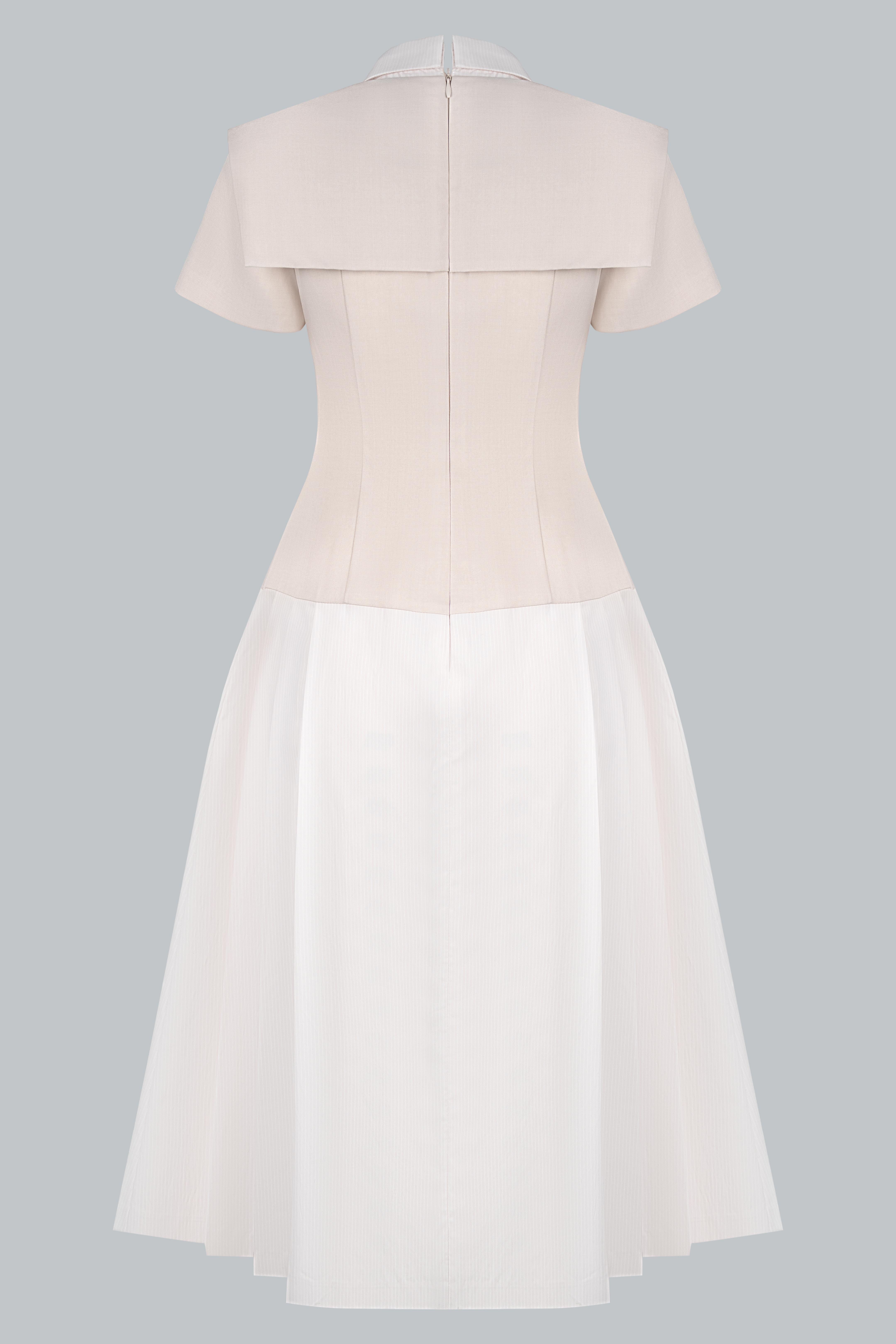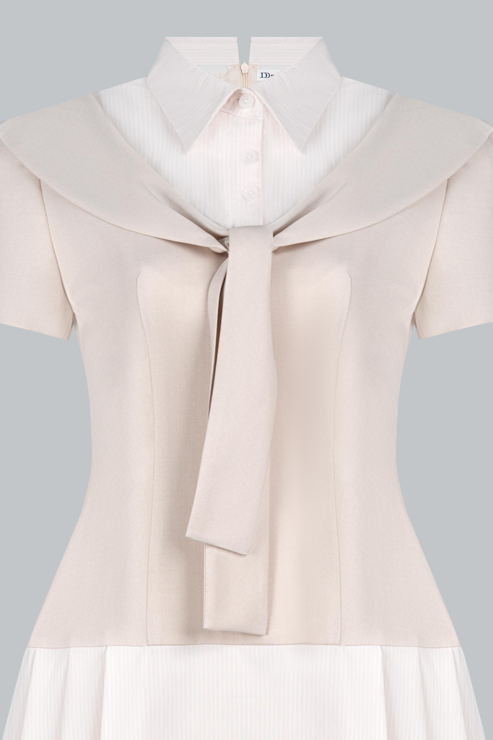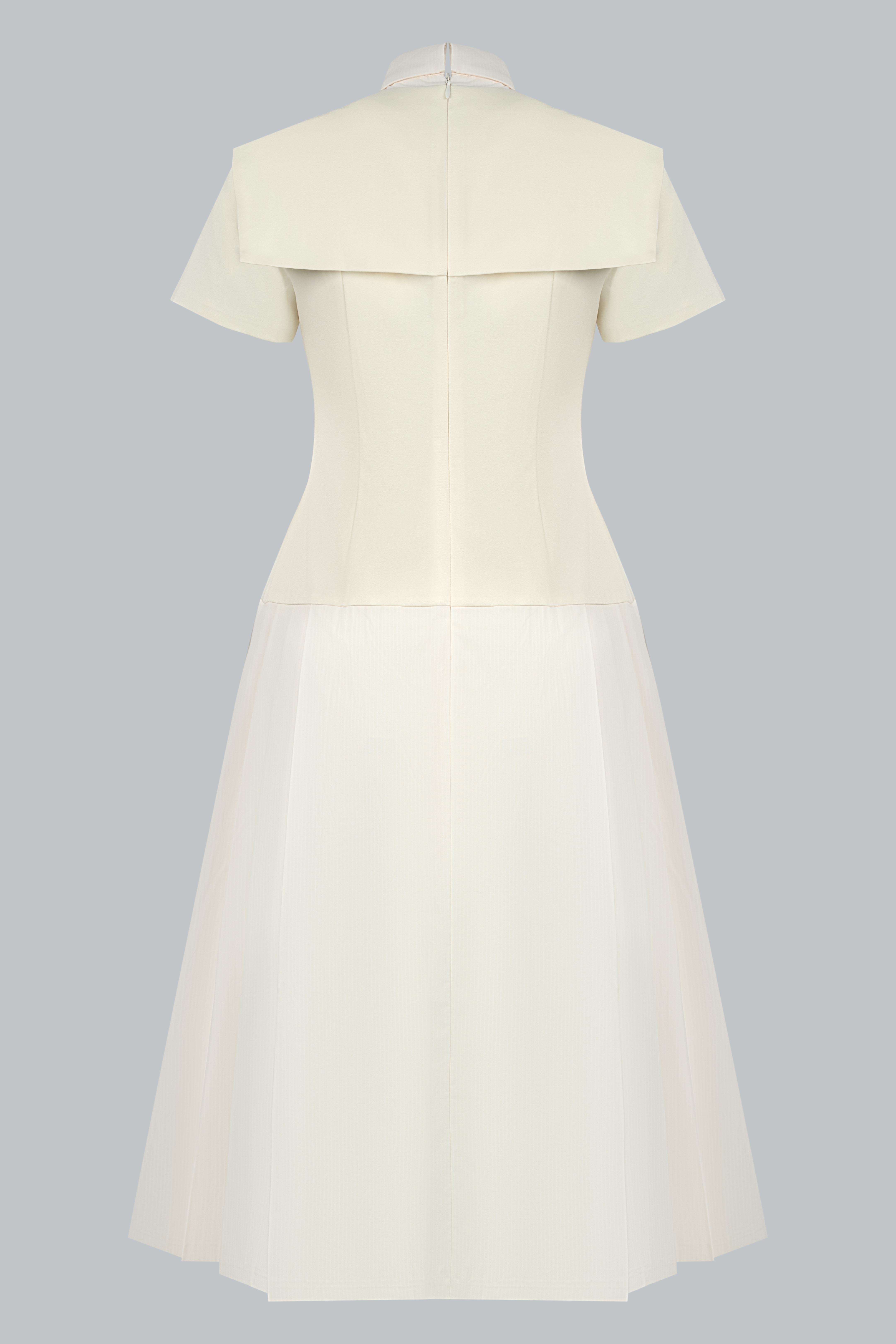 Đầm dáng A-line dài qua gối, giúp tổng thể thon gọn và cân đối. Phần thân trên tối giản với cổ sơ mi kết hợp nơ buông nhẹ, tạo điểm nhấn thanh lịch cùng chi tiét chiết eo tinh gọn giúp tôn dáng nhẹ nhàng và phù hợp với nhiều vóc người.