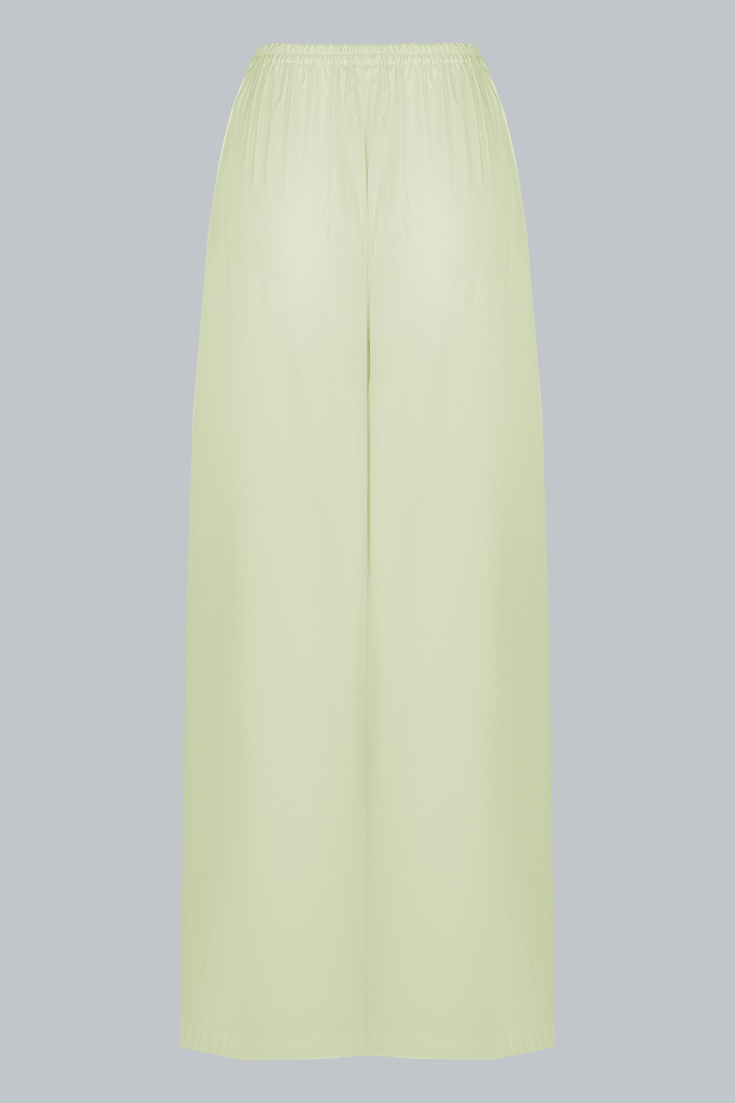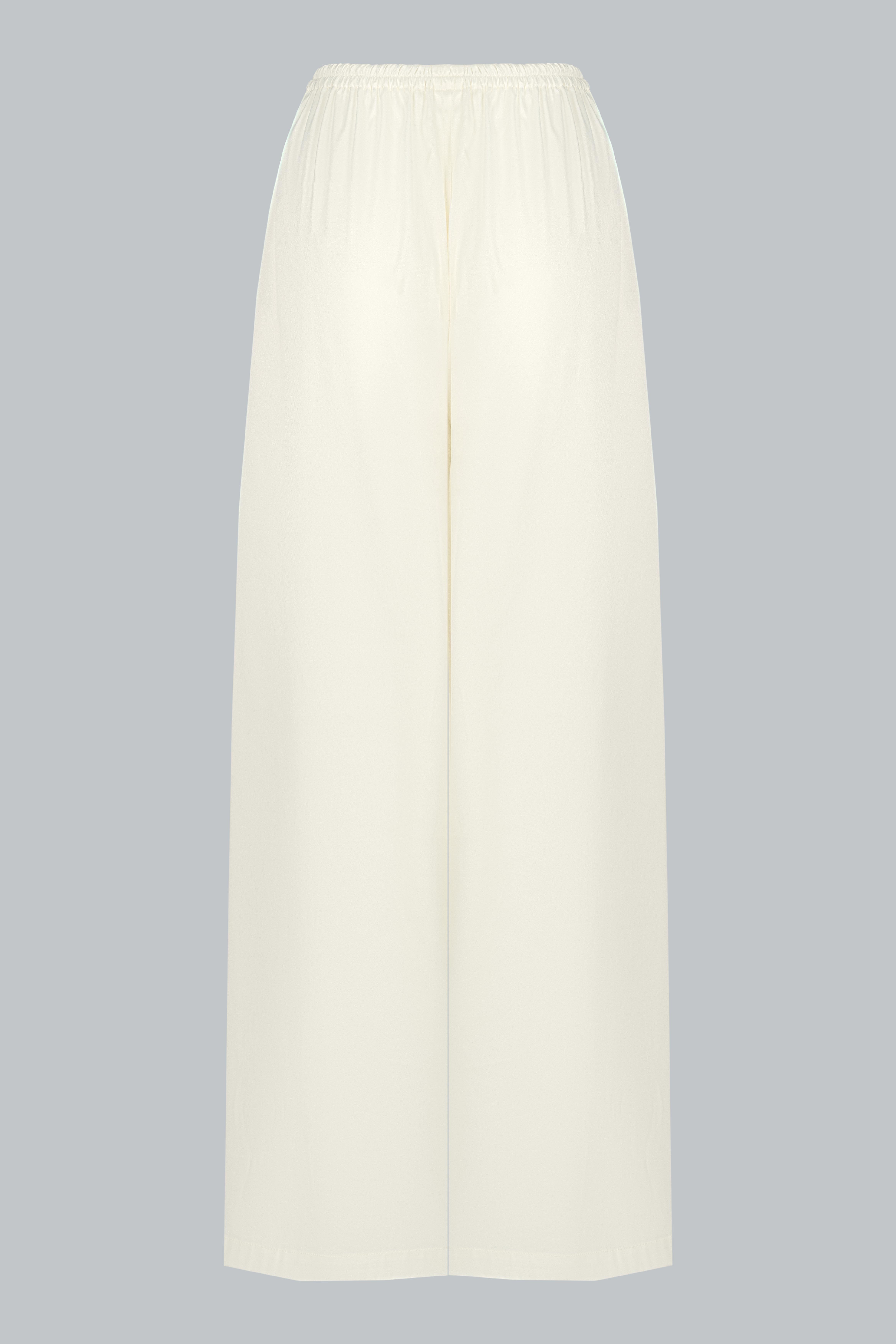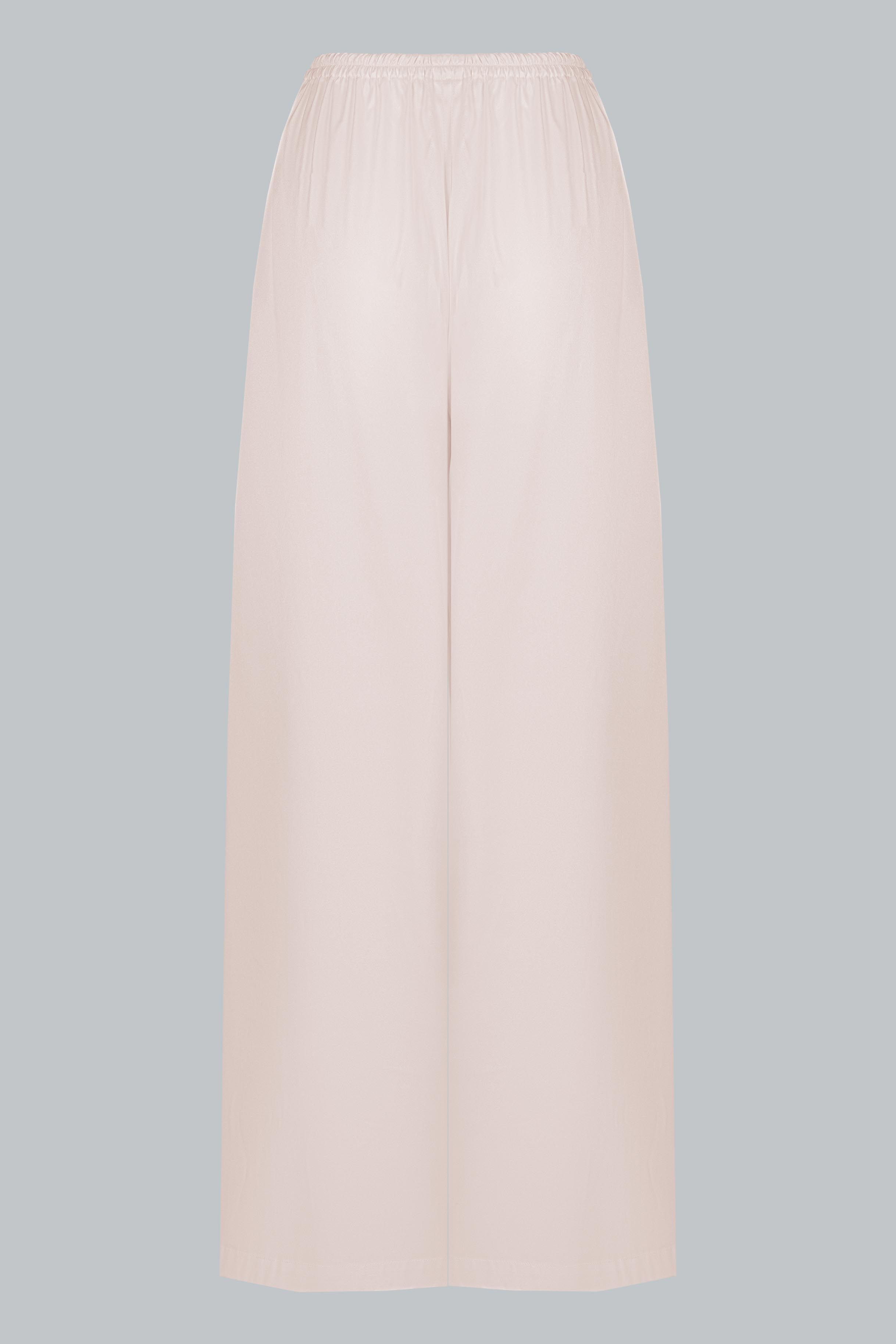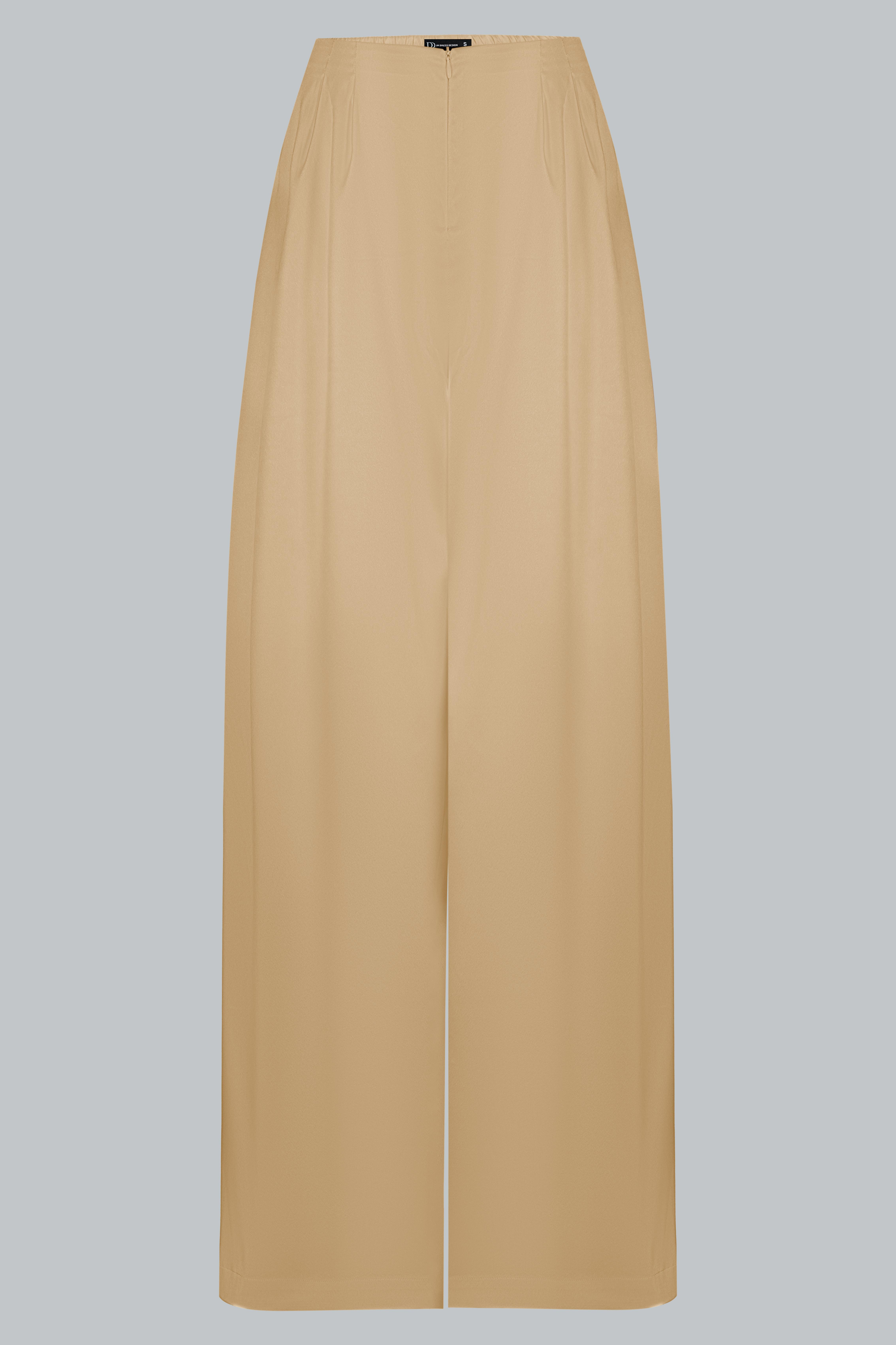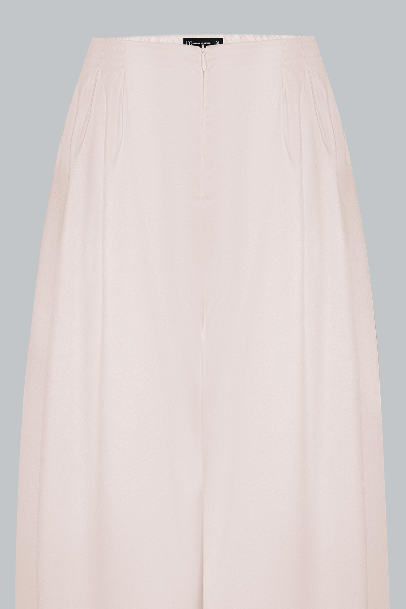 Chiếc quần được may từ lụa đứng form thành phần chính poly – chất liệu có độ đứng nhẹ, ít nhăn, bề mặt nhẵn mịn và giữ phom chuẩn.