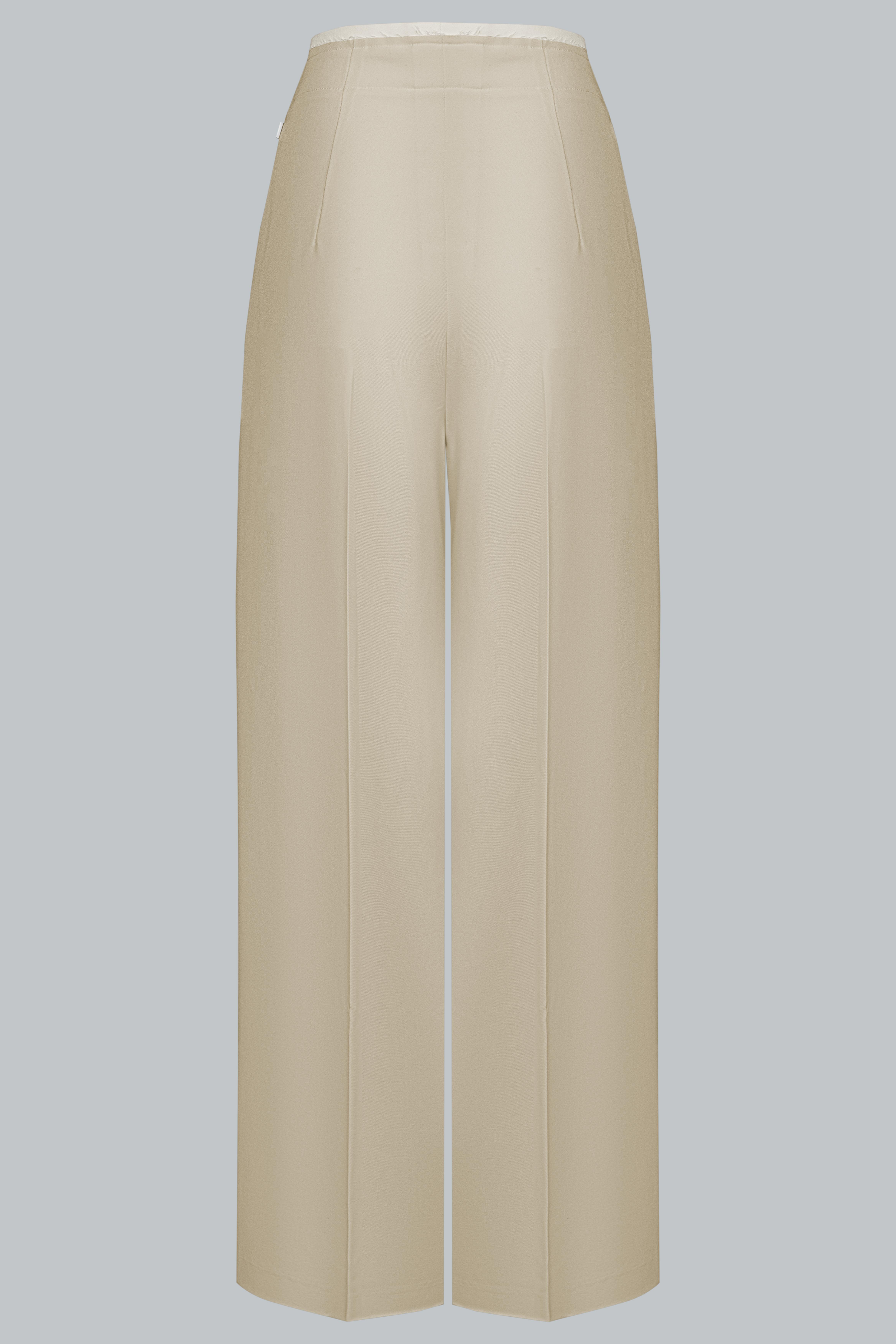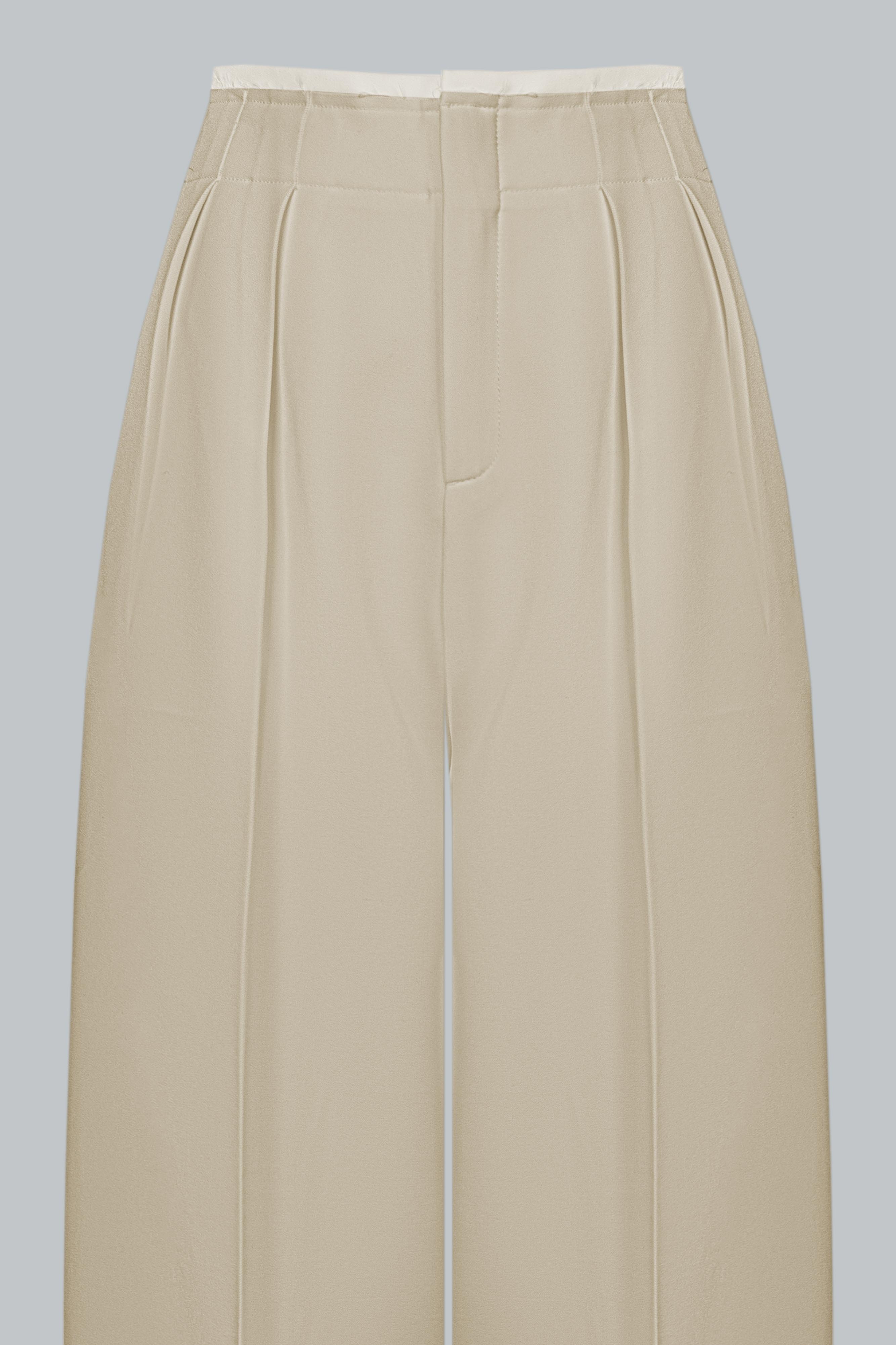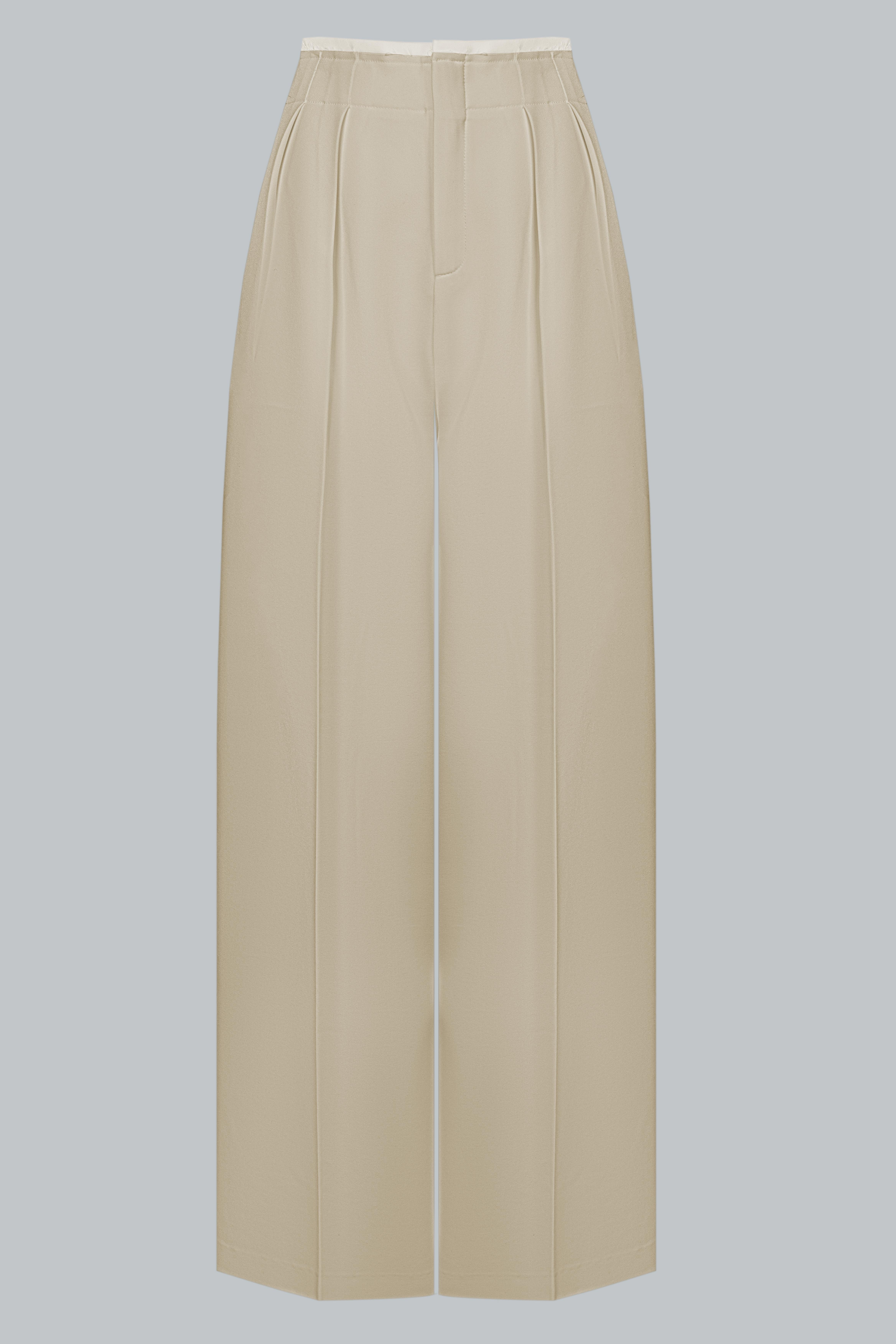 Quần dáng suông ống rộng, cạp cao – giúp kéo dài đôi chân và tạo hiệu ứng thon gọn cho tổng thể. Phom quần vừa vặn, không quá rộng cũng không quá ôm, mang đến cảm giác chỉn chu mà vẫn thoải mái. Đường ly dọc được may gọn ghẽ, giúp giữ dáng đứng và tạo cảm giác thanh mảnh hơn khi mặc. Thiết kế này là lựa chọn hoàn hảo cho những ngày nàng cần sự tự tin nhưng không muốn quá “gồng mình”.