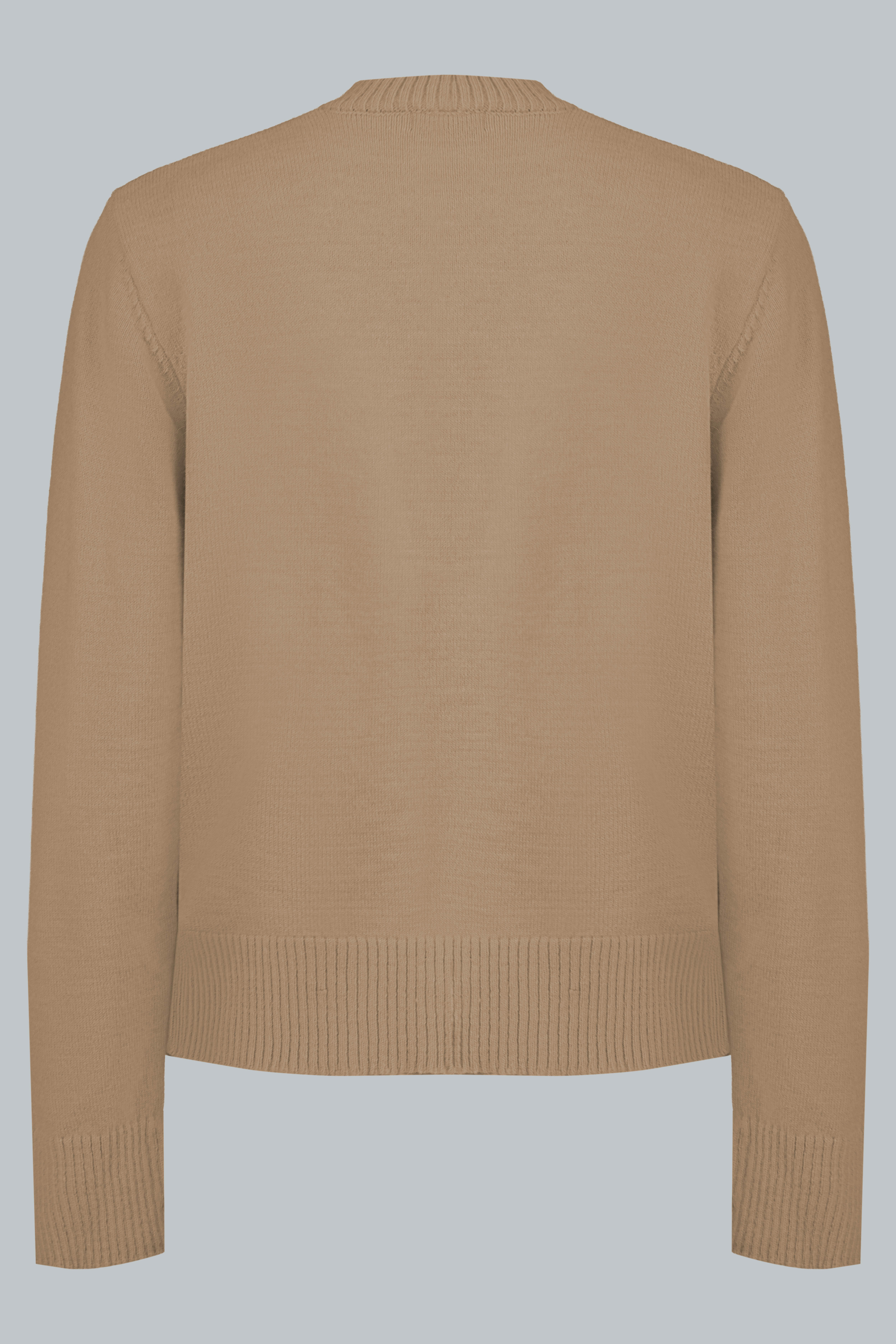 Bề mặt len có vân nhỏ, đều, giúp tạo chiều sâu thị giác và giữ cho thiết kế không bị “phẳng” khi lên dáng.